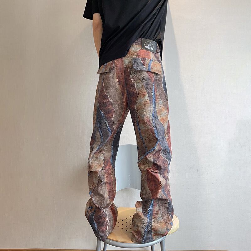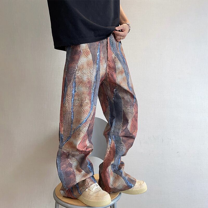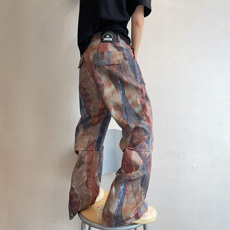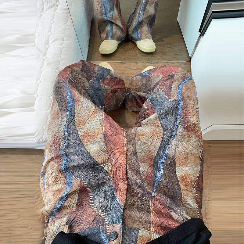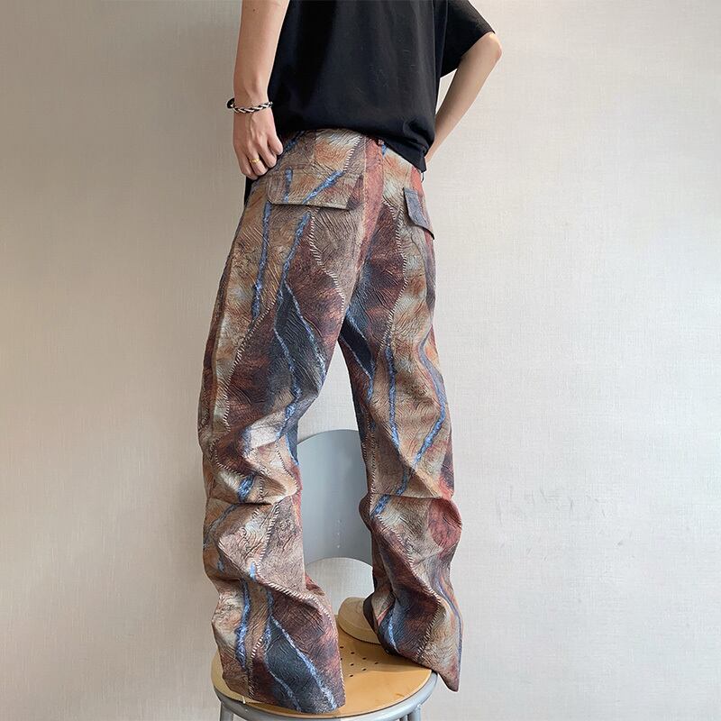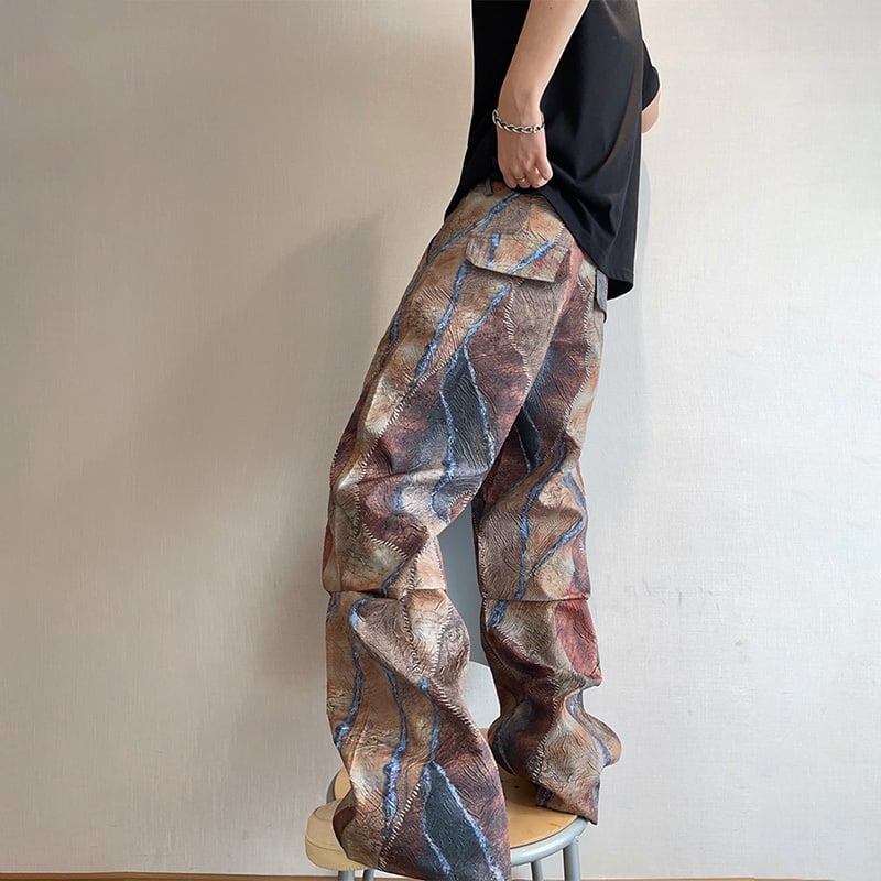 dannyandzeeパッチワーク風デジタルプリントストレートパンツ