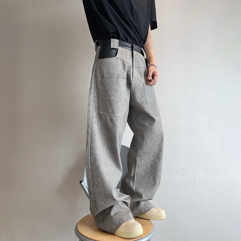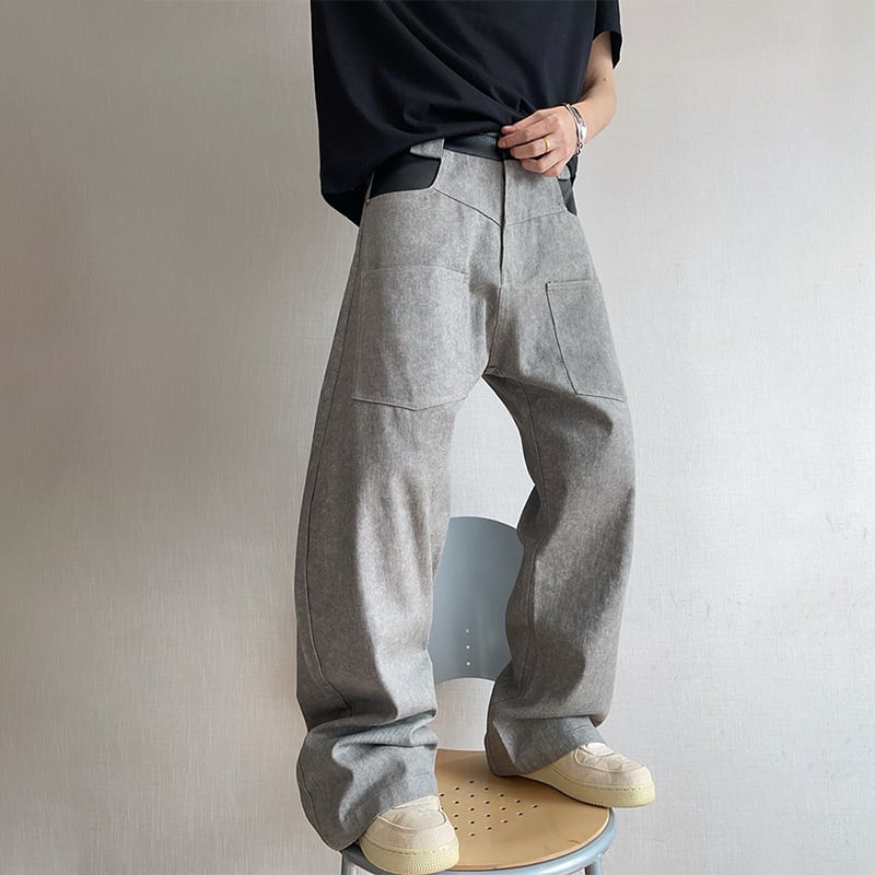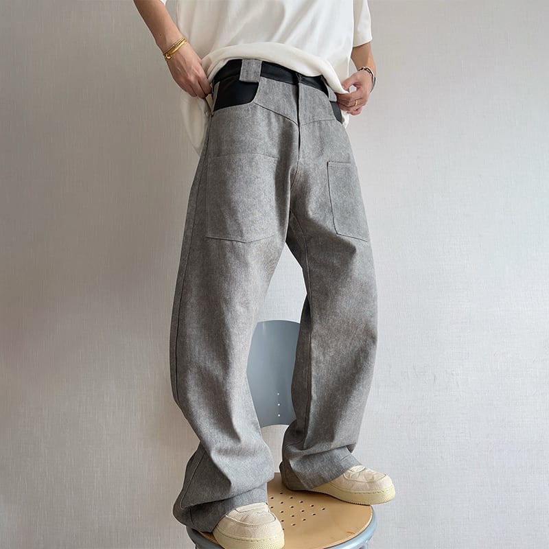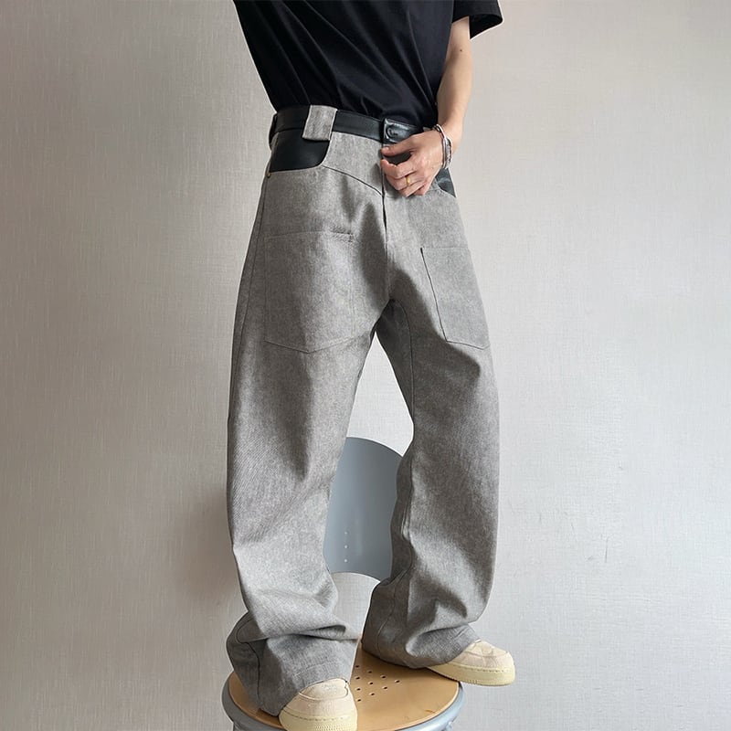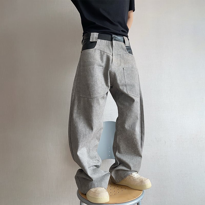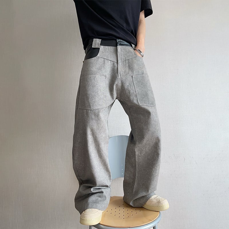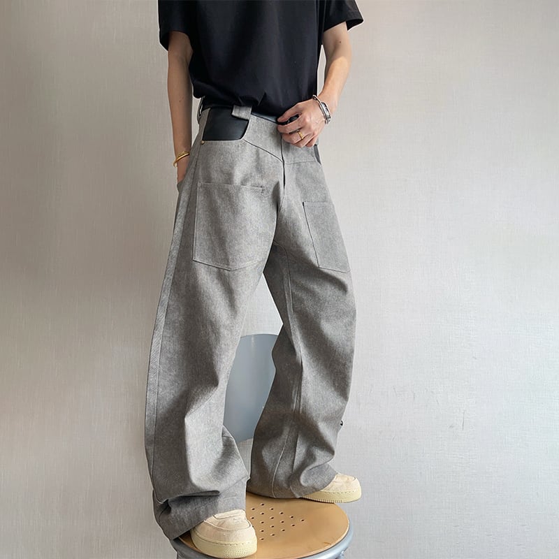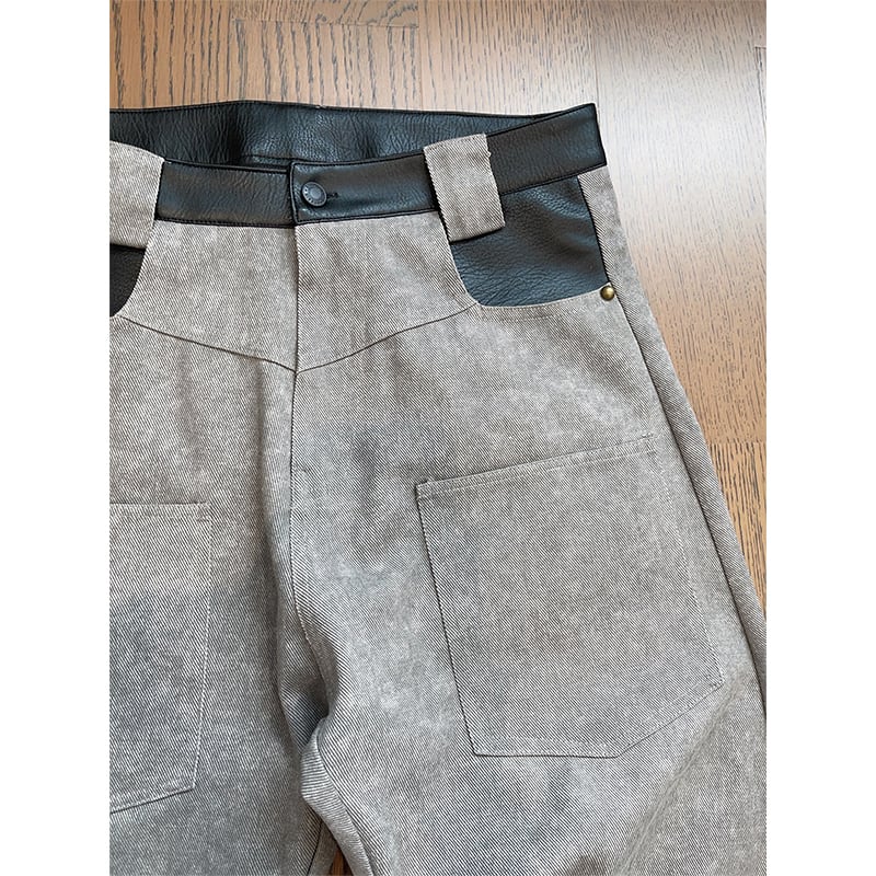 dannyandzeeコンクリートグレーレザー切替カーゴパンツ