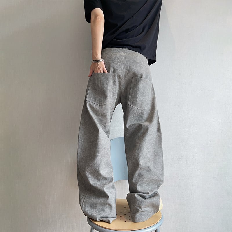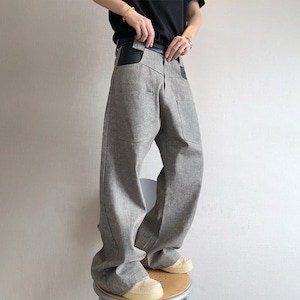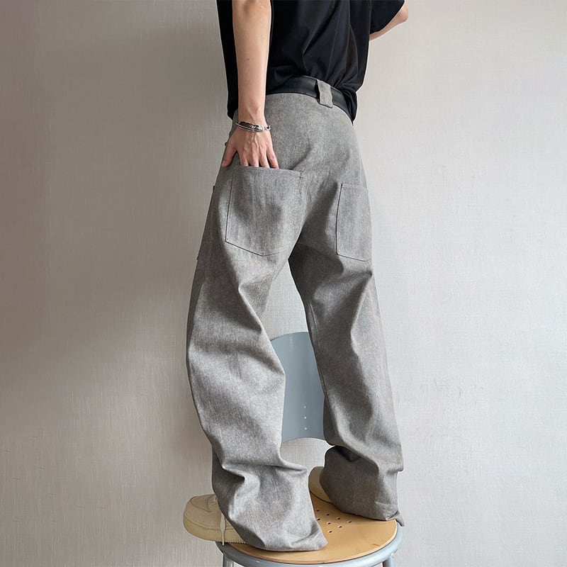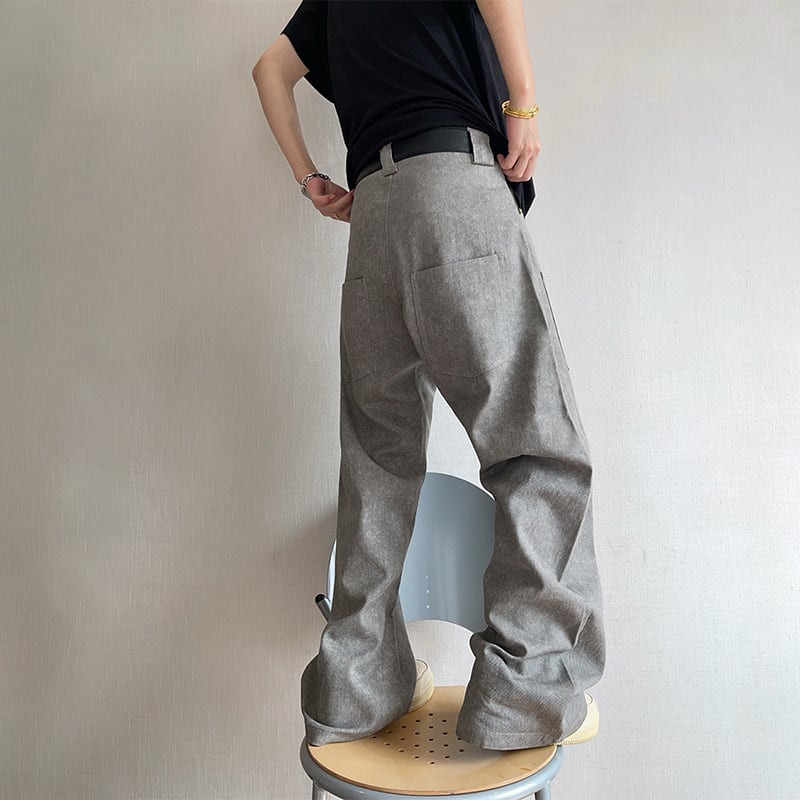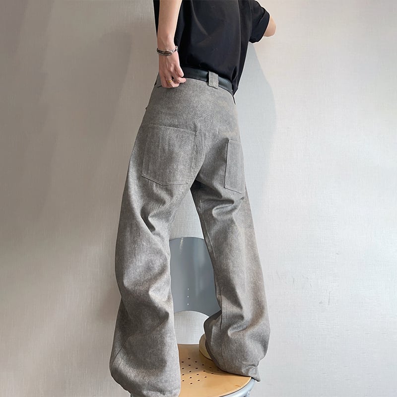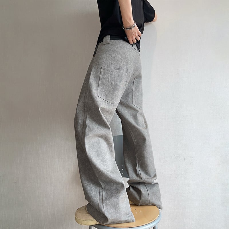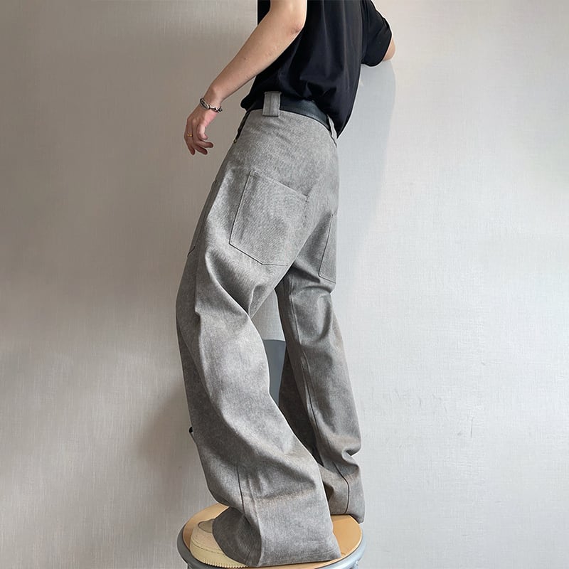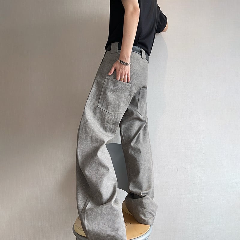 dannyandzeeコンクリートグレーレザー切替カーゴパンツ