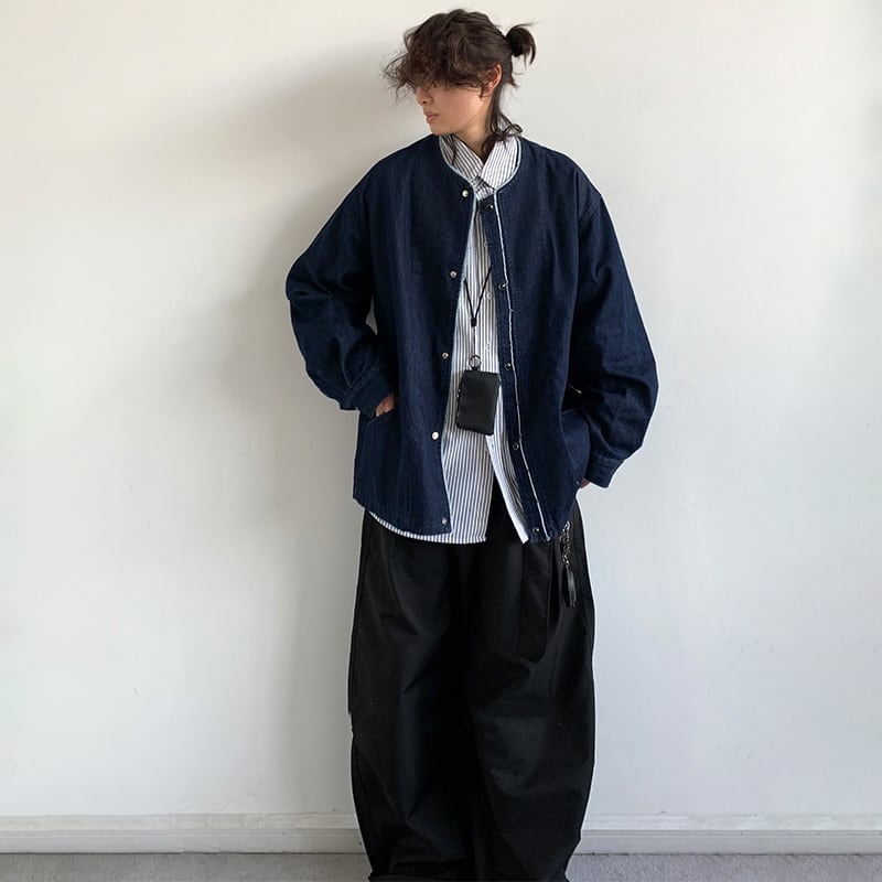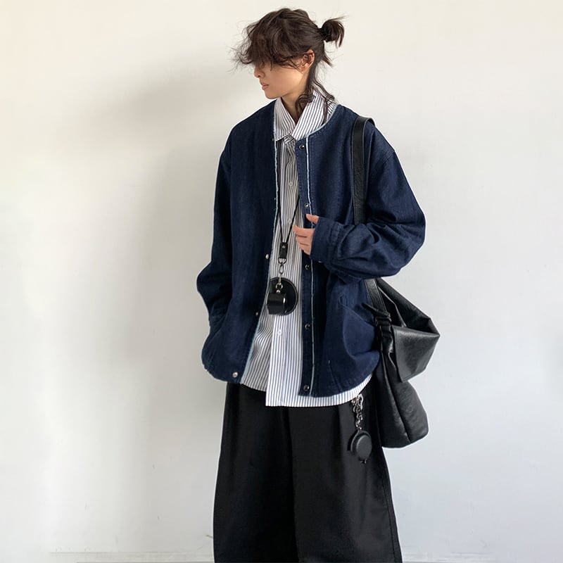 jiwuusユニセックスカジュアルノーカラーデニムシャツ