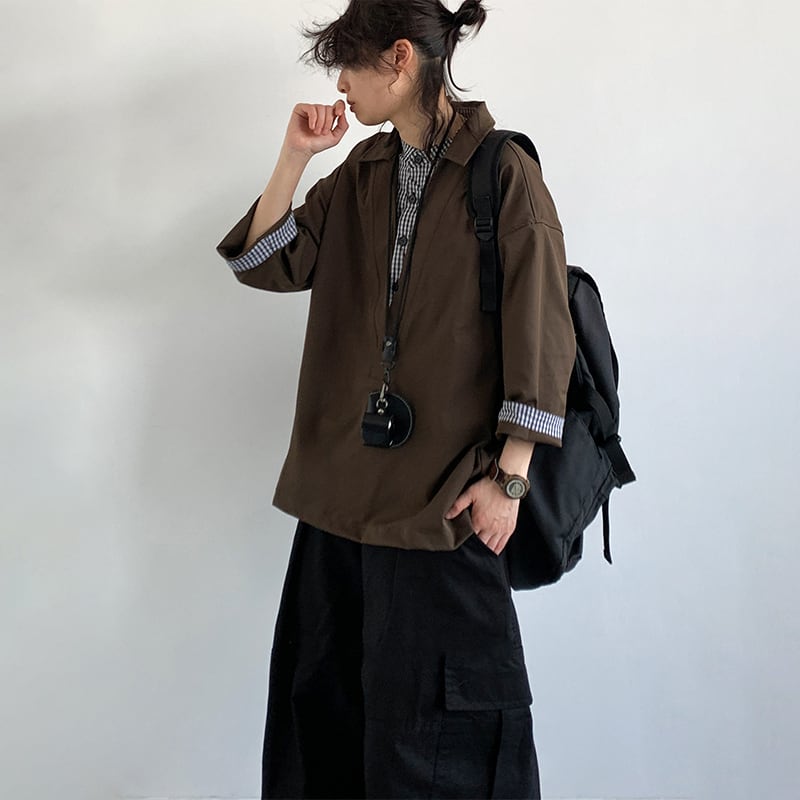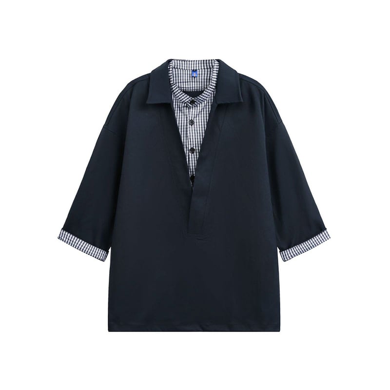 jiwuus七分袖フェイクツーウェップポロシャツ