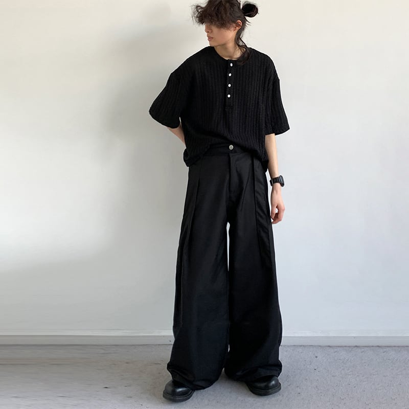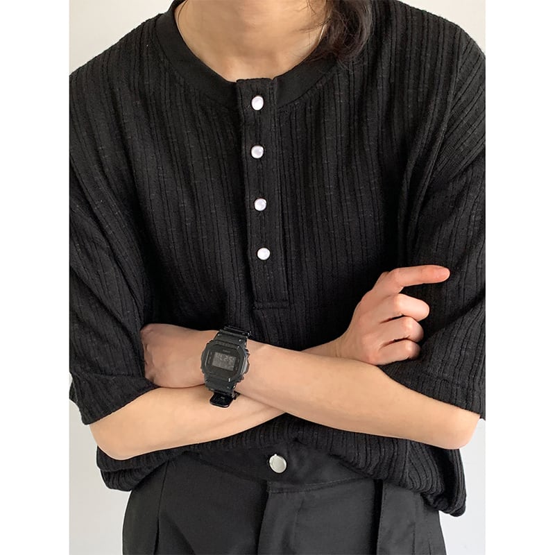 jiwuusリブ編みシンプルスタイルポロシャツ