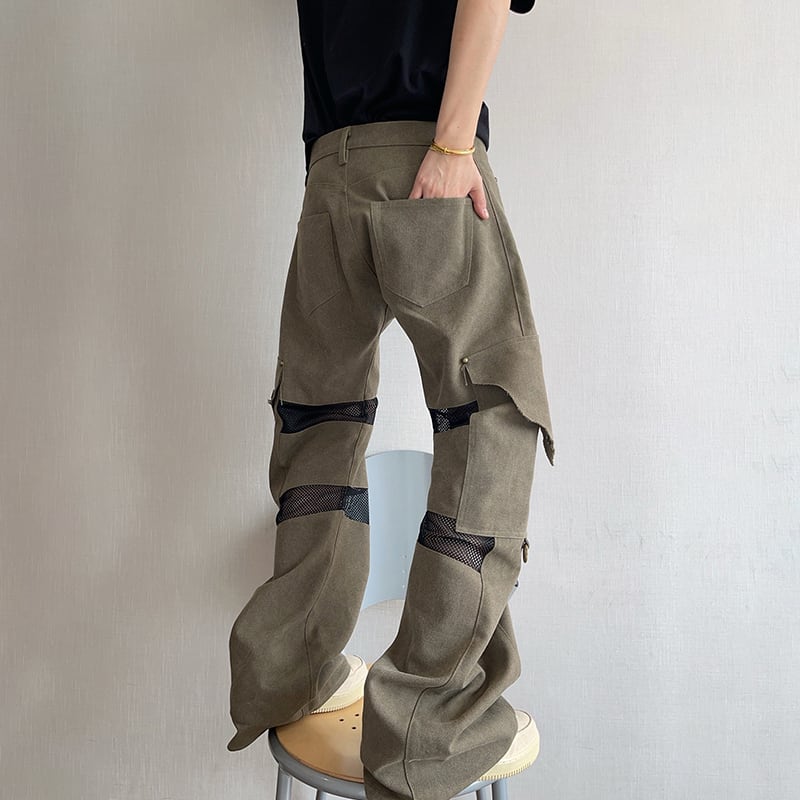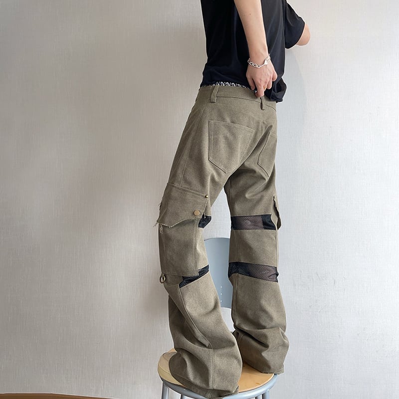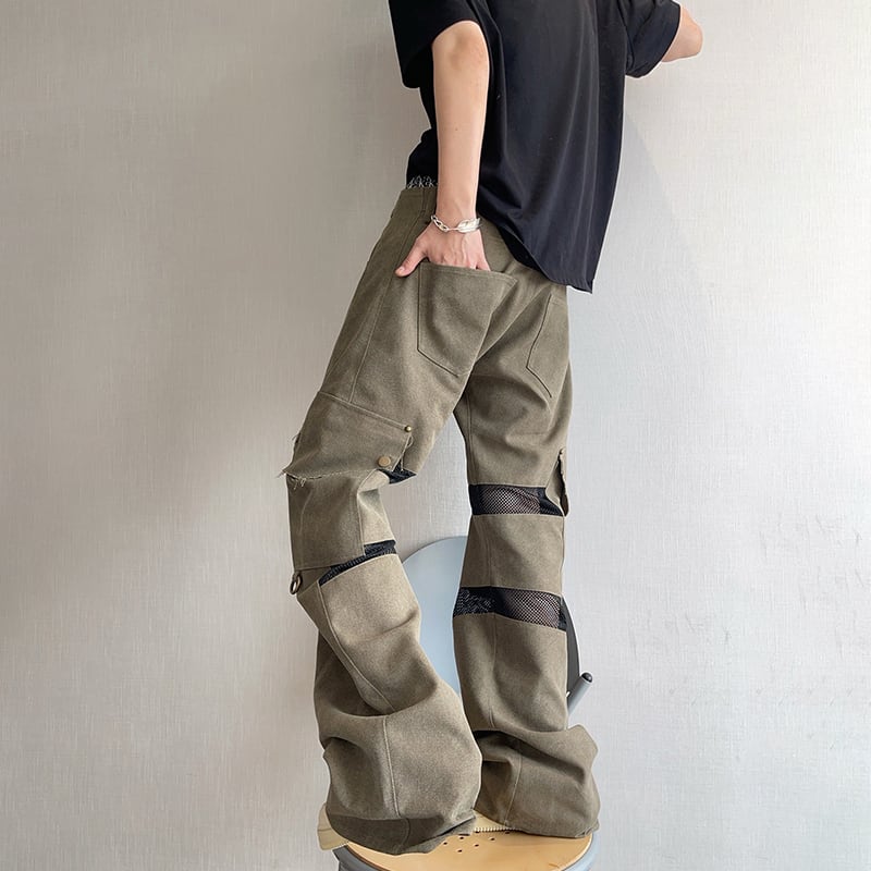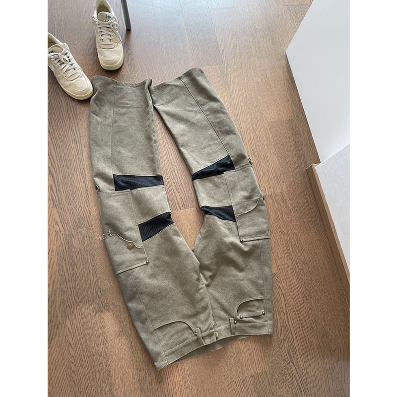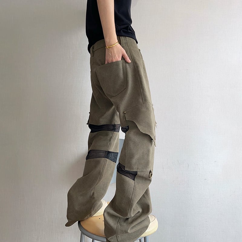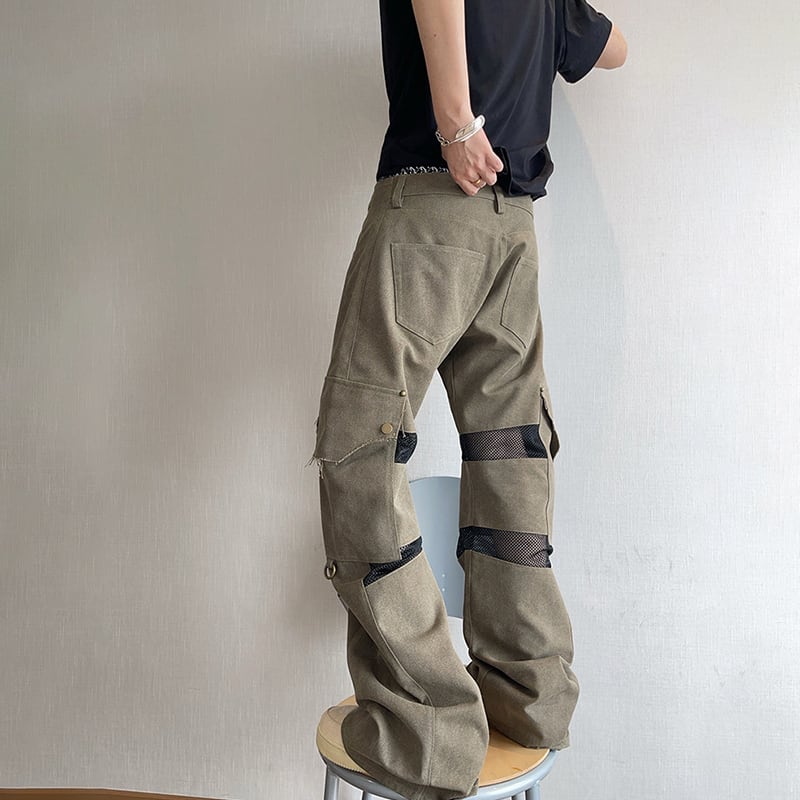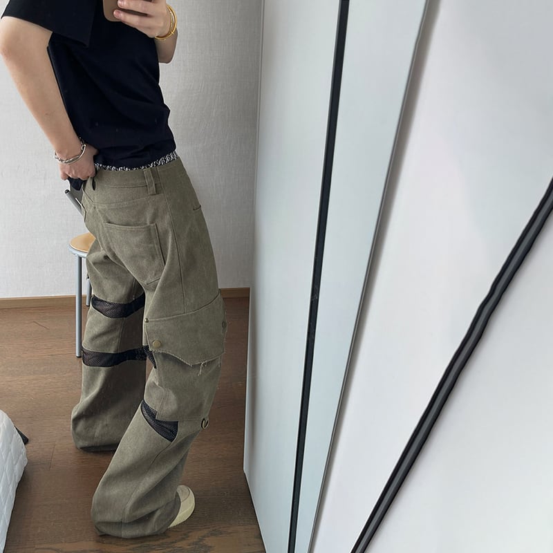 dannyandzeeメッシュ切替デザインストレートカーゴパンツ