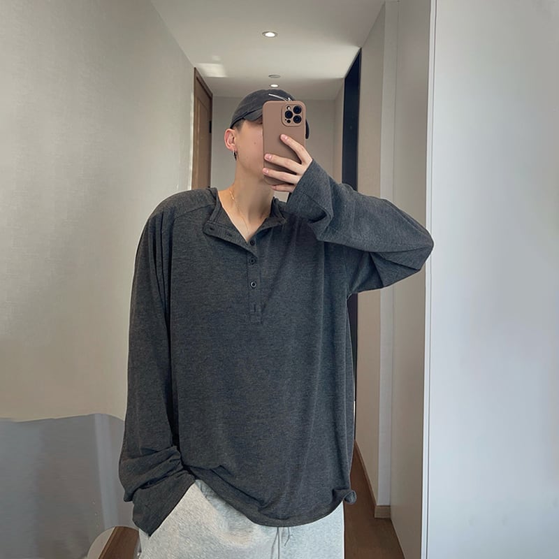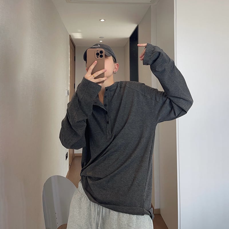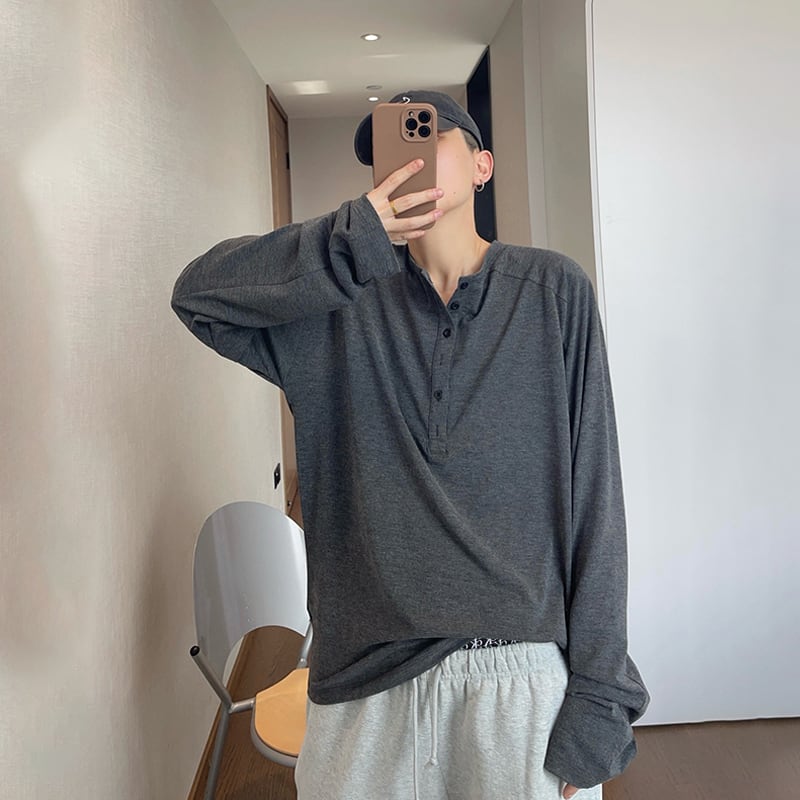 dannyandzee薄手ヘンリーネック長袖Tシャツ