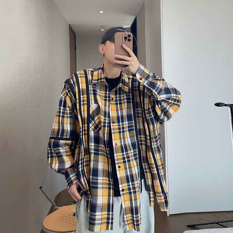 dannyandzeeデタッチャブルスリーブデザインチェックシャツ