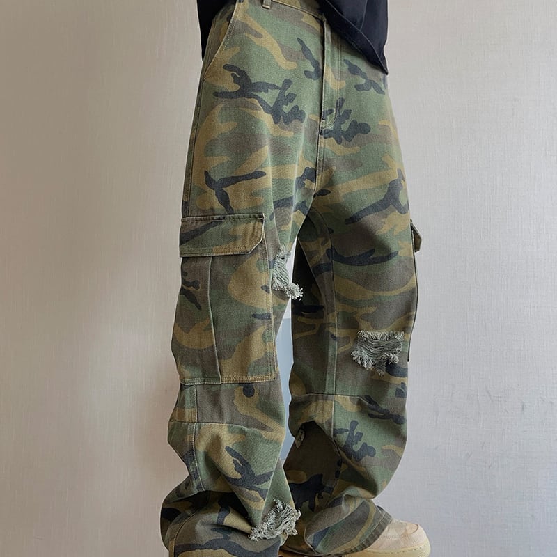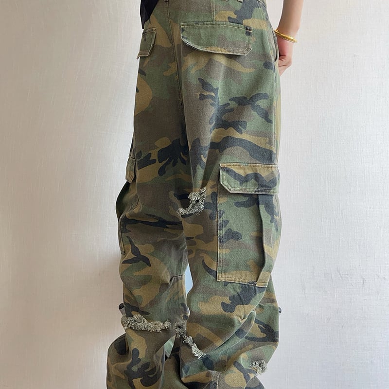 dannyandzeeダメージ加工ストリート迷彩カーゴパンツ