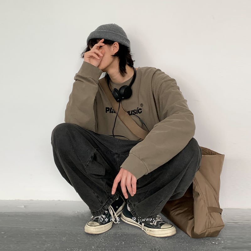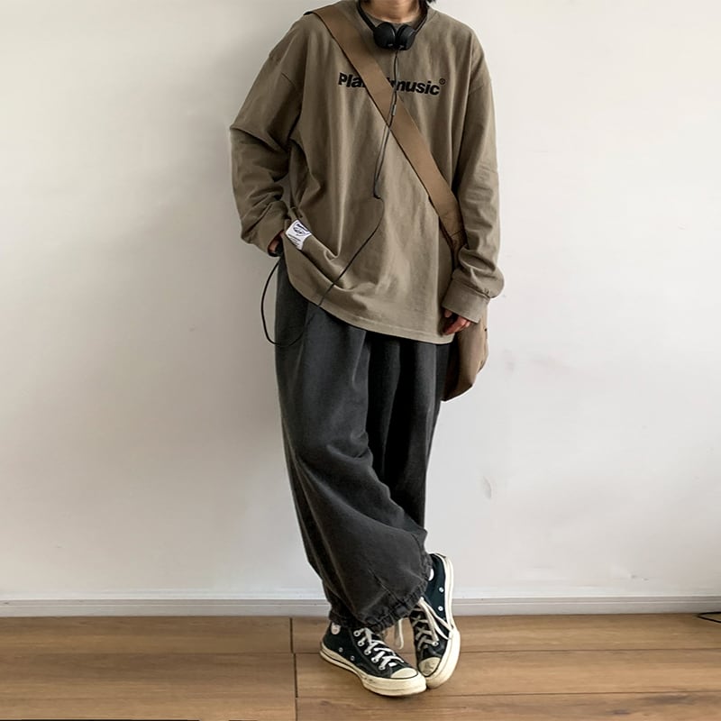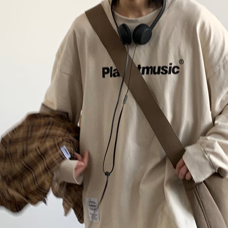 jiwuusカジュアル英字プリントTシャツ