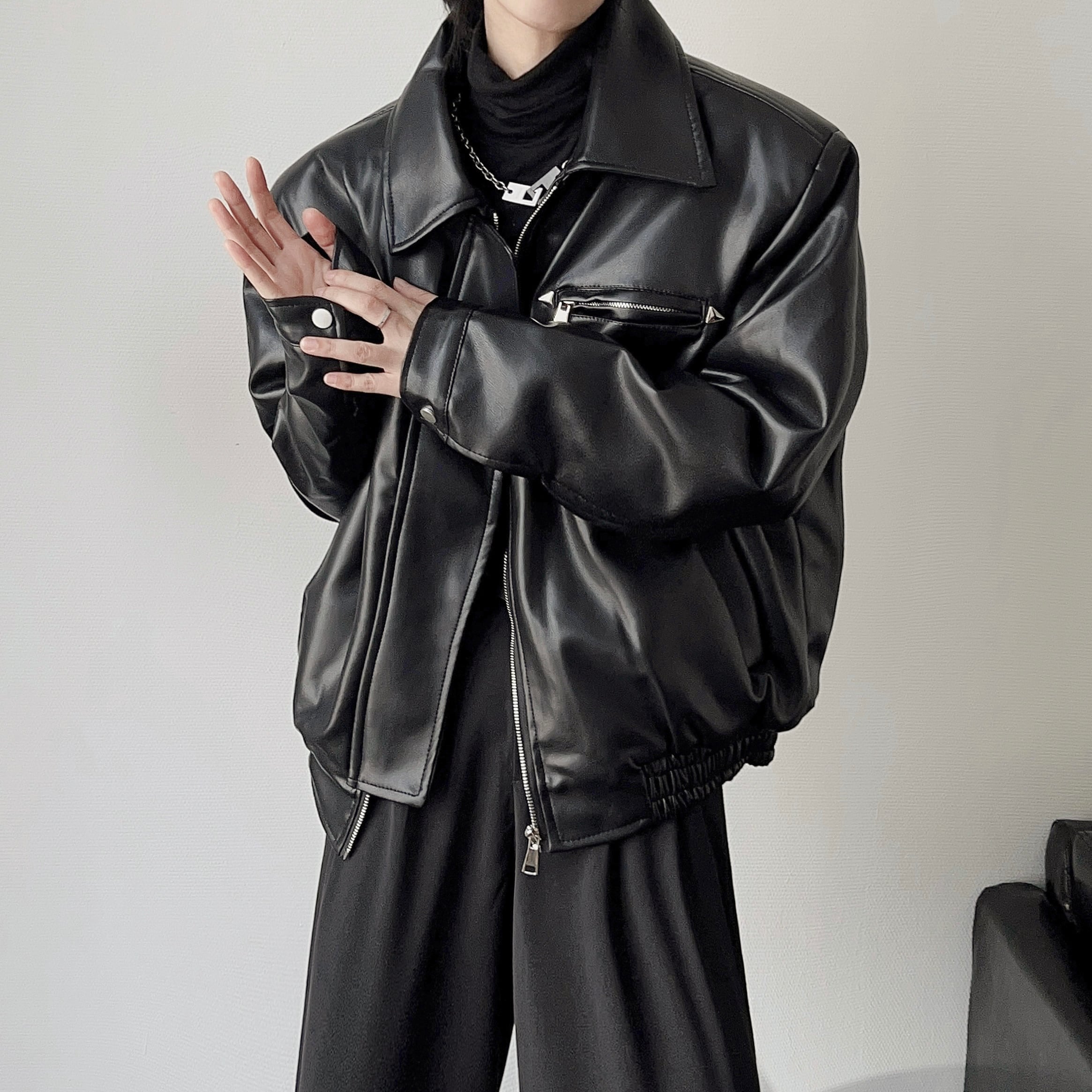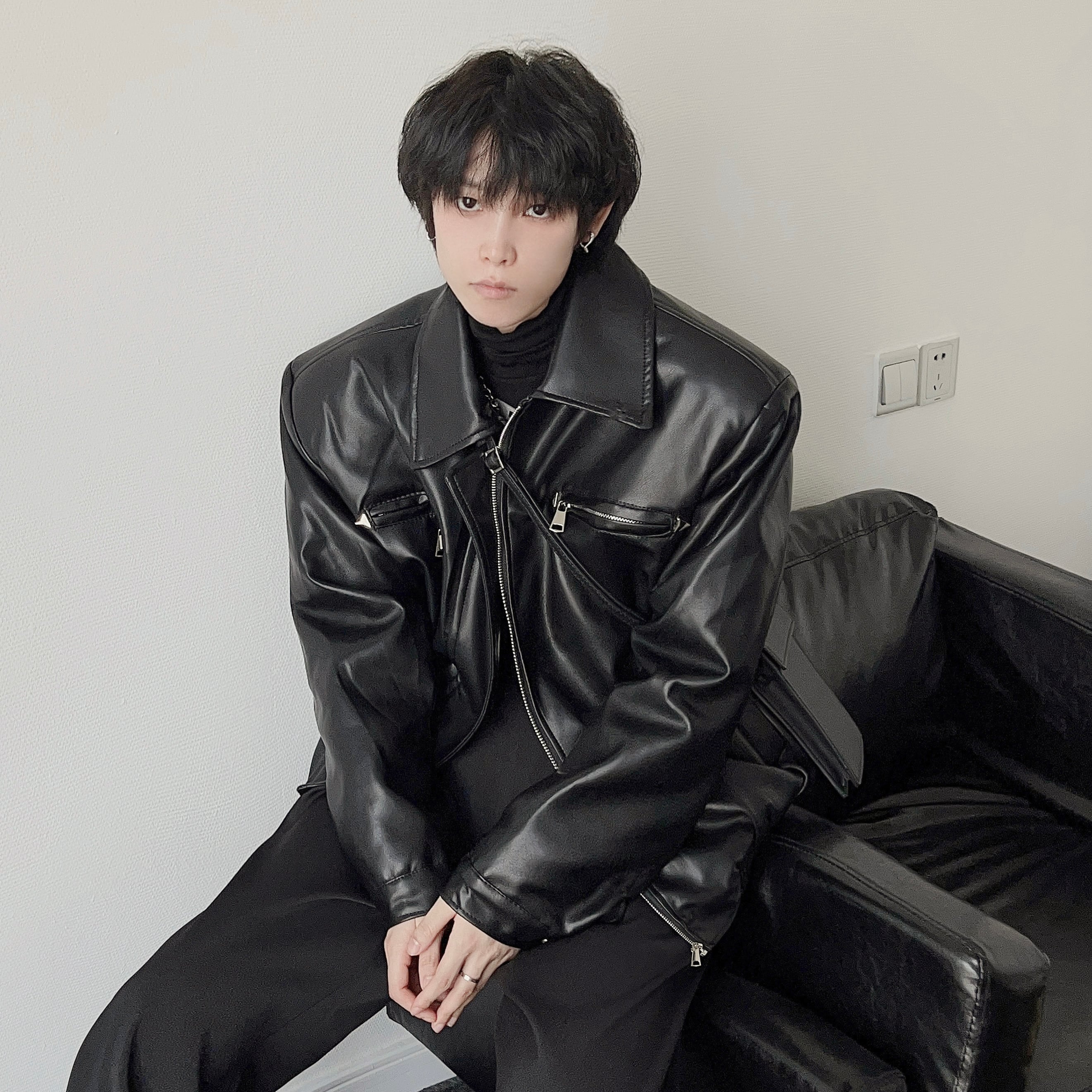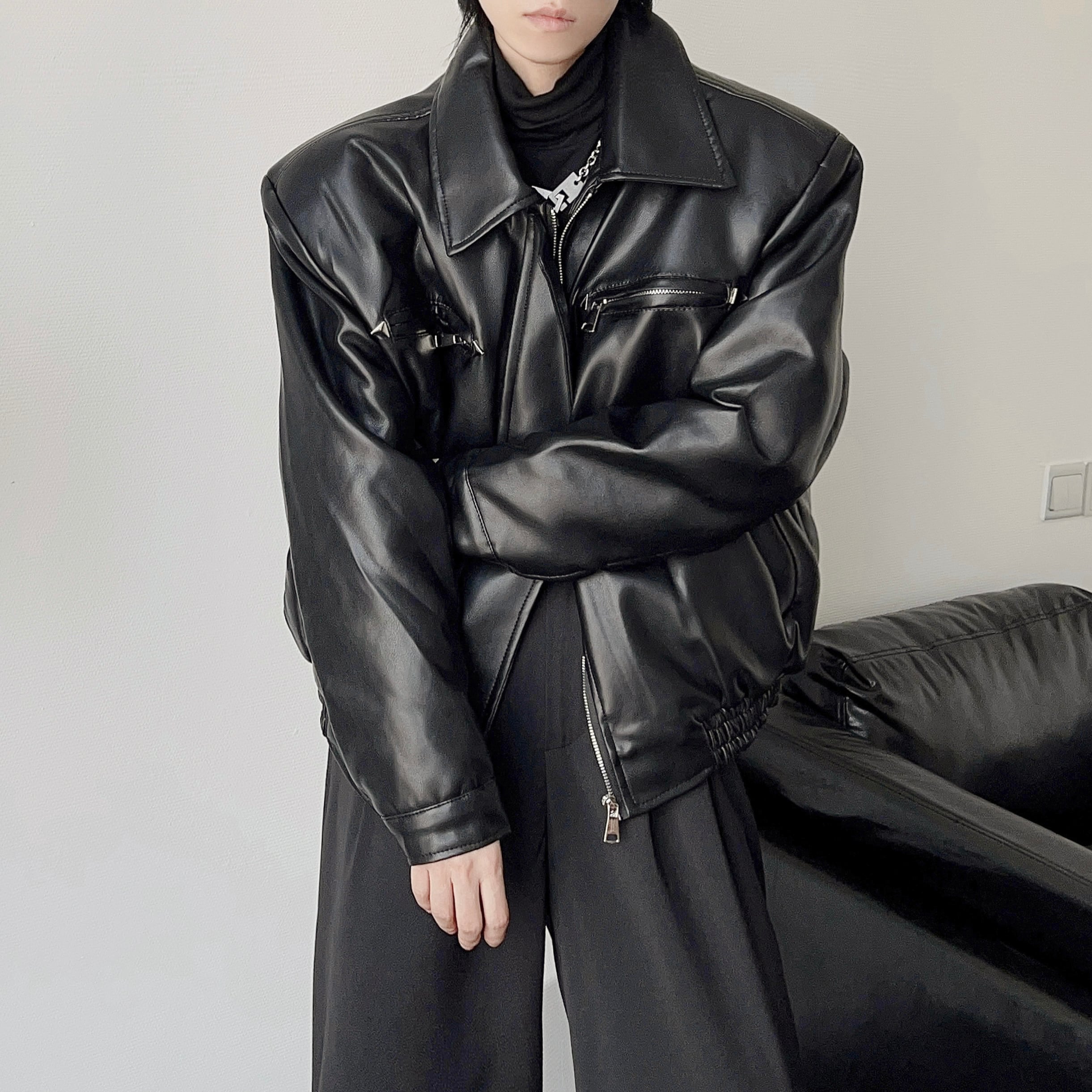 YOUSHIQIレザークールショットジャケット