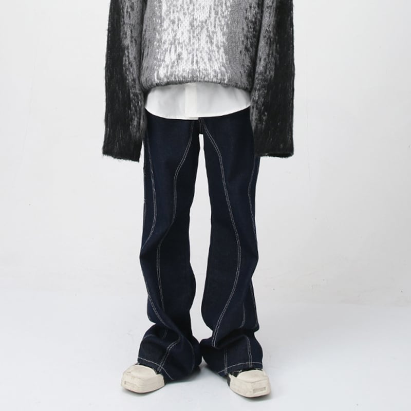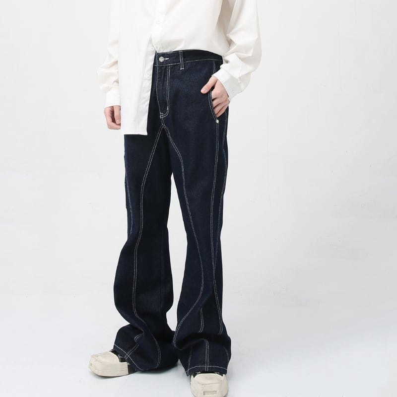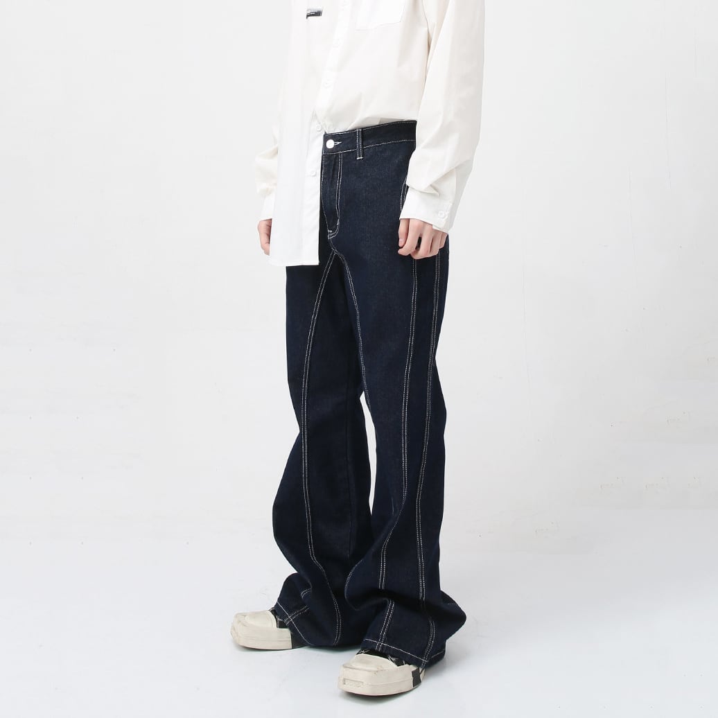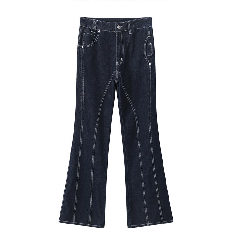 HBZ濃い藍色レトロフレアデニムパンツ