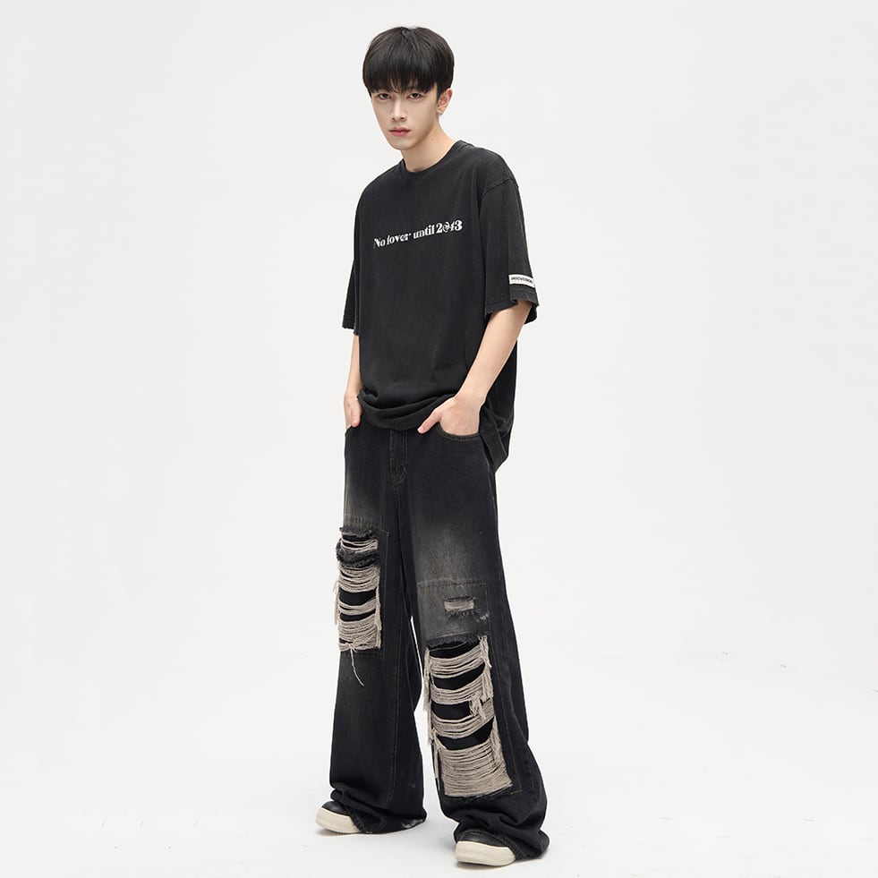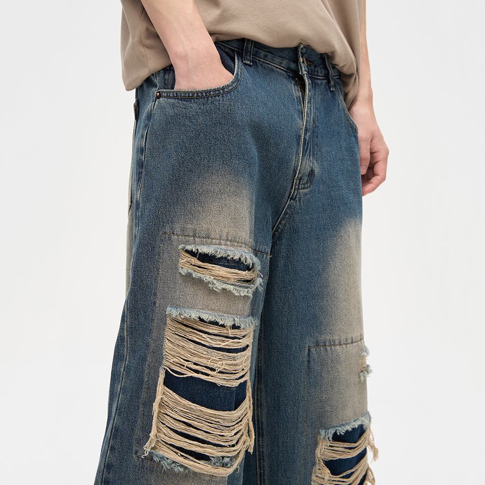 レトロ感漂うダメージデニムパンツ