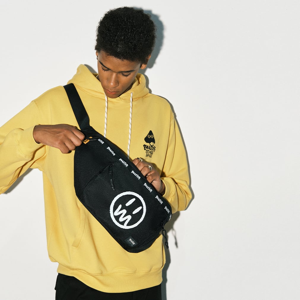 BEASTER白黒配色のロゴ付きショルダーバッグ