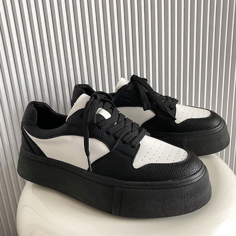 クラシック白黒配色の厚底スニーカー