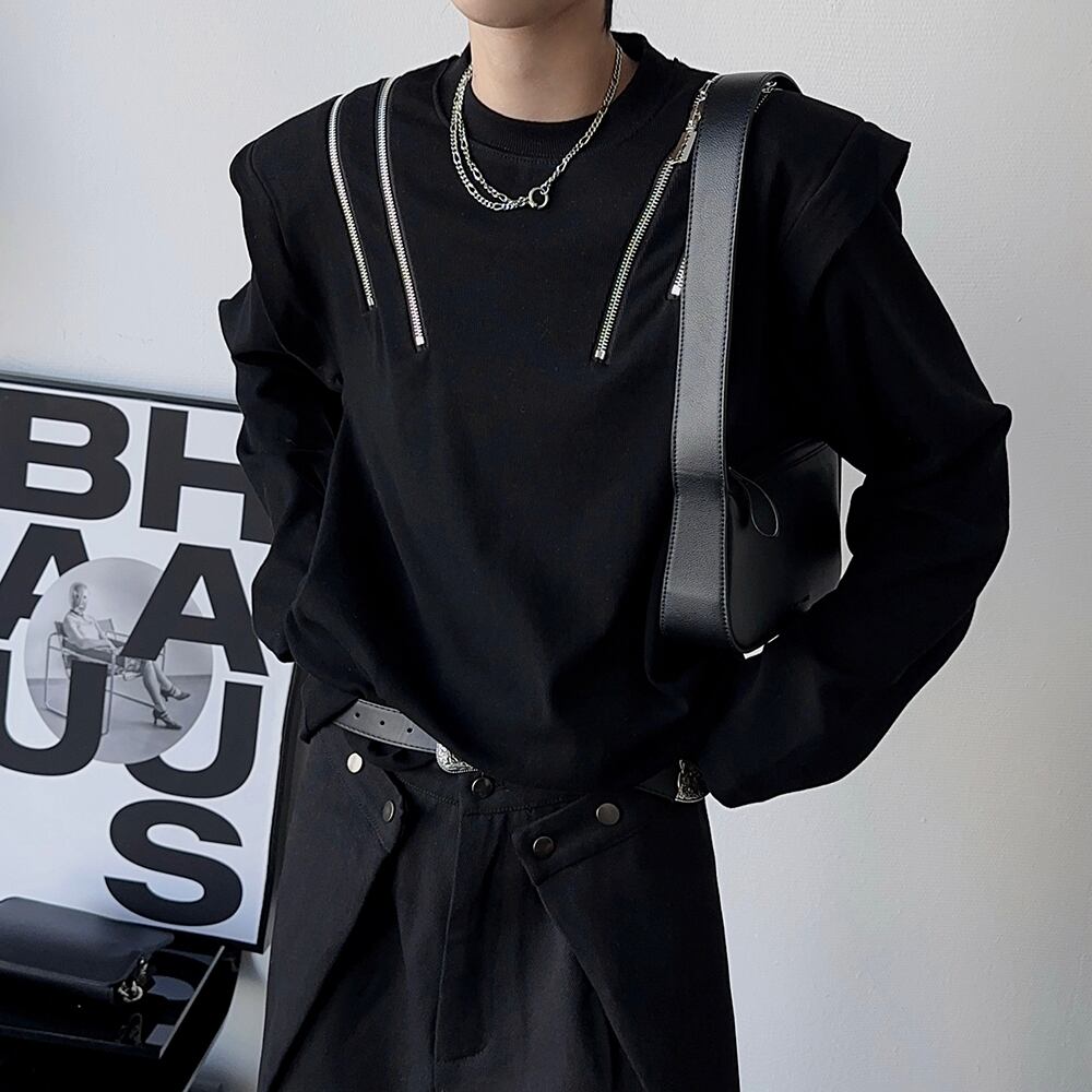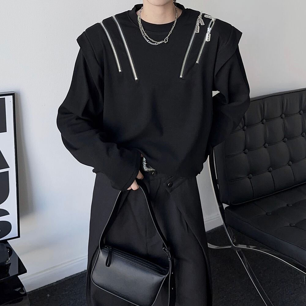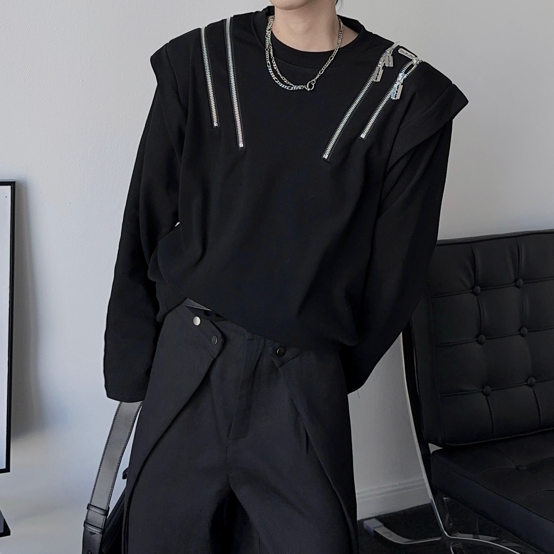 YOUSHIQI肩ジップデザイン入り無地スウェット