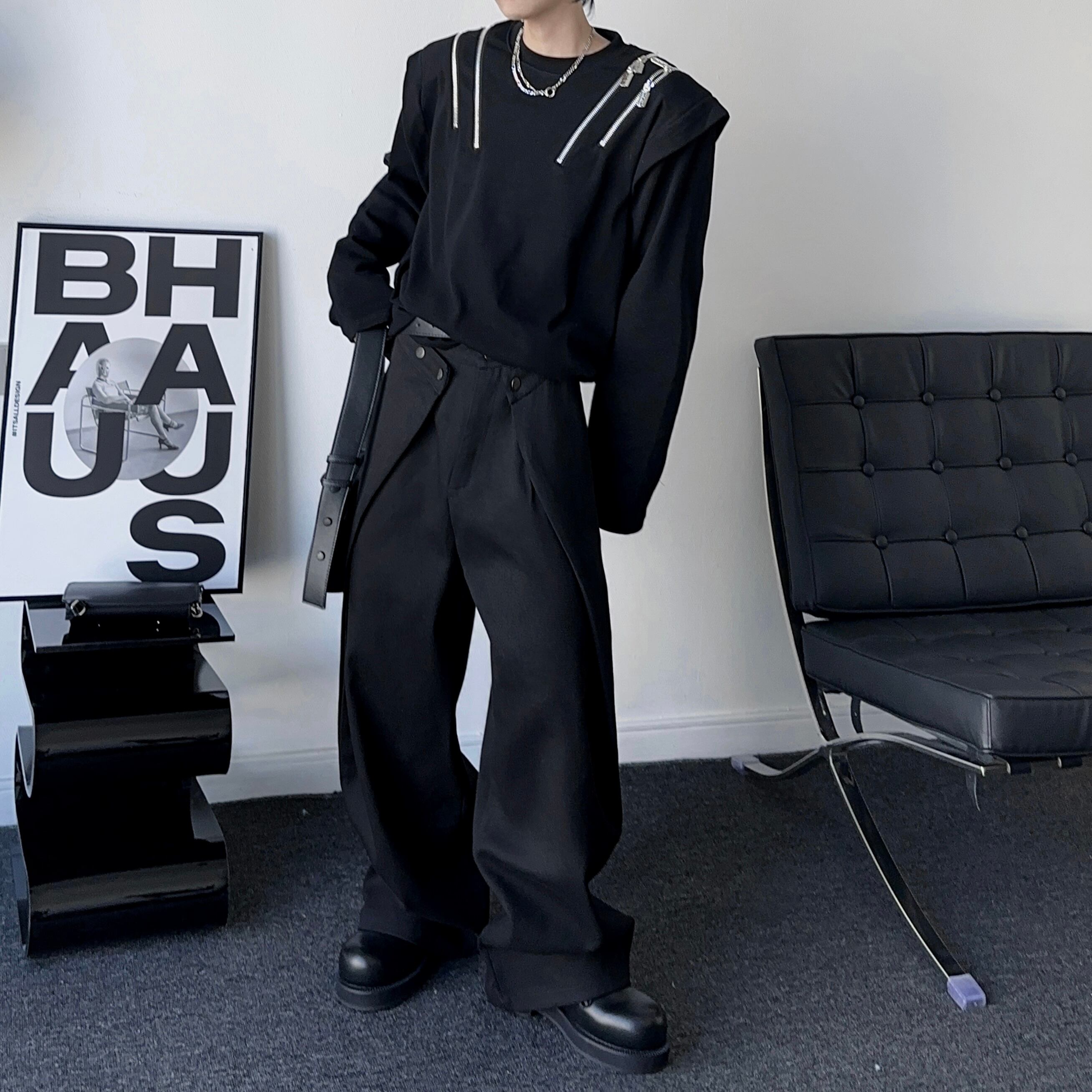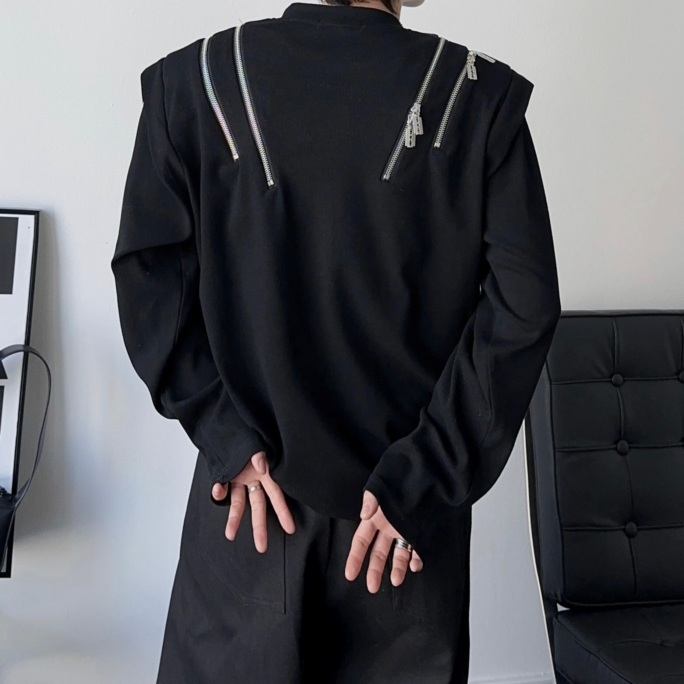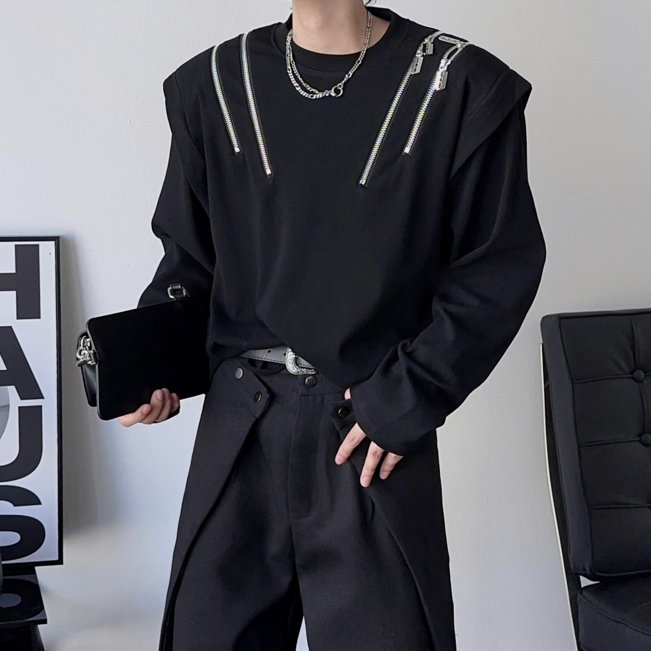 YOUSHIQI肩ジップデザイン入り無地スウェット