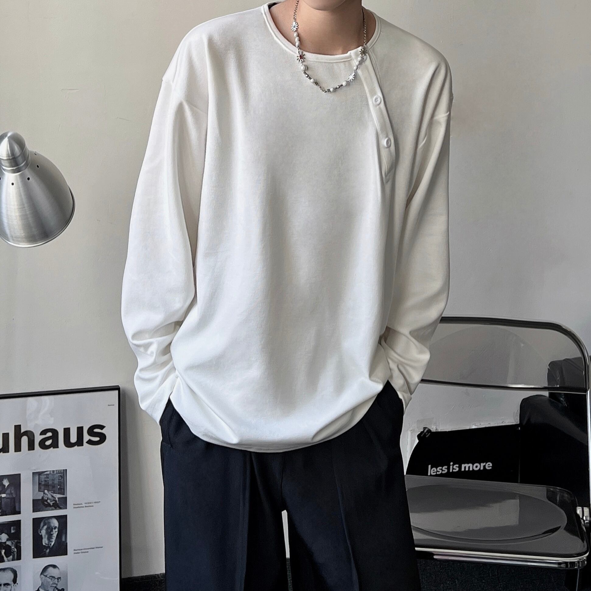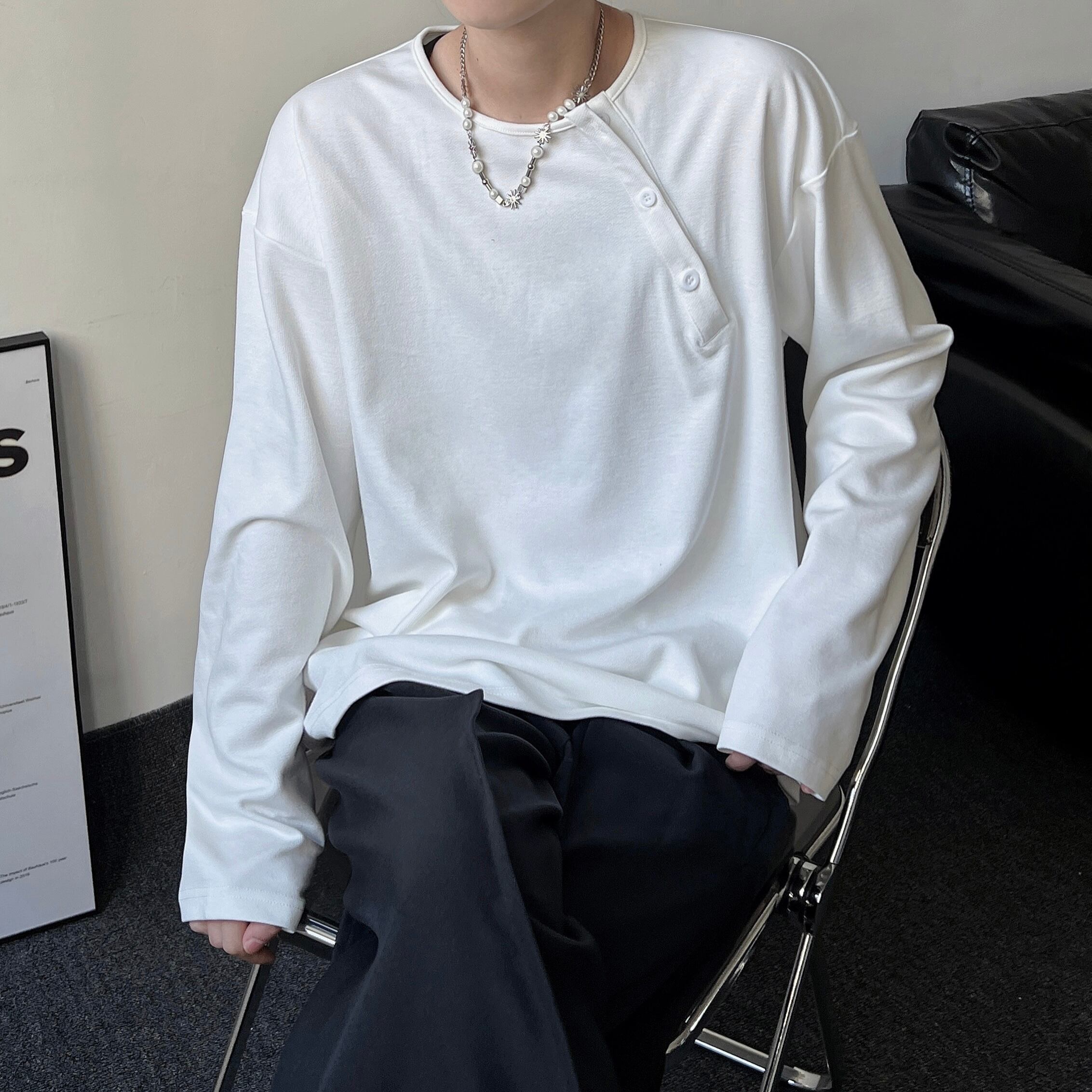 YOUSHIQIホワイト斜めハーフボタンTシャツ