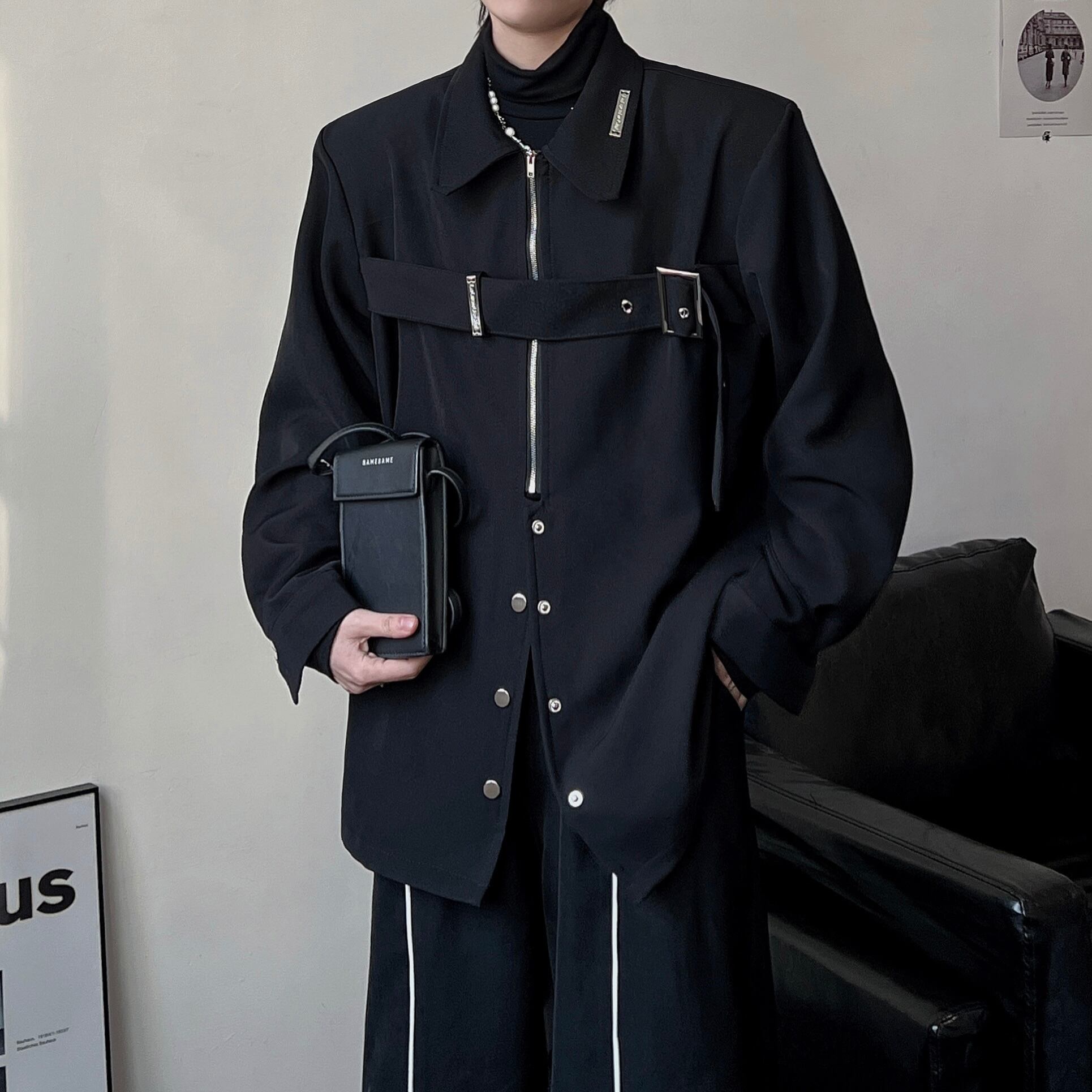 YOUSHIQIデザイン性高いハーフジップシャツ