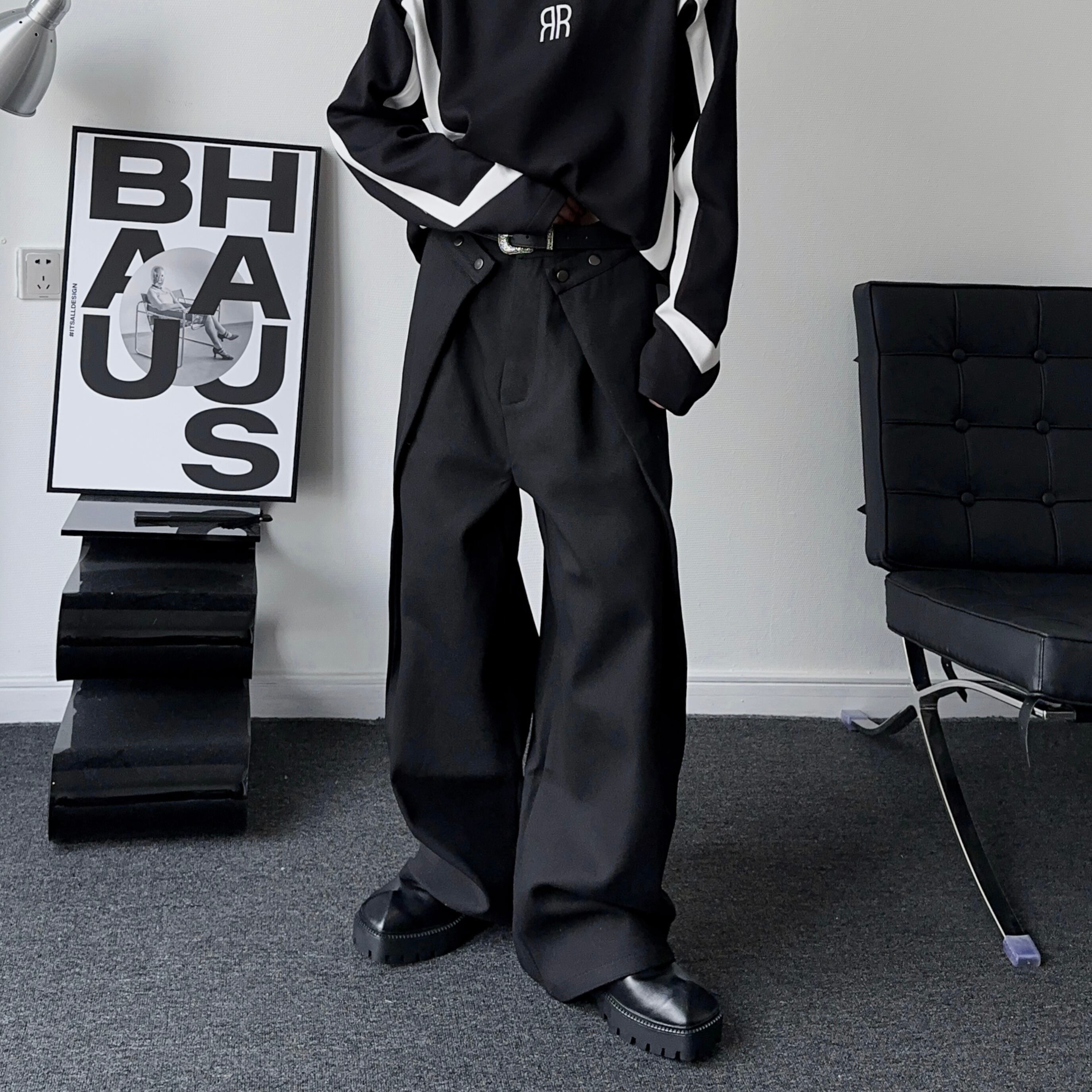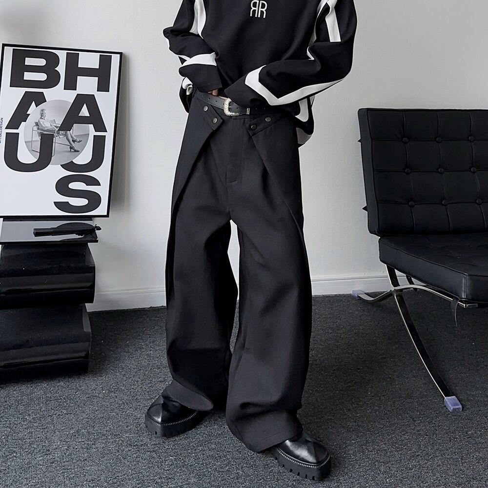 YOUSHIQIボタンデザイン入りブラックデニムパンツ