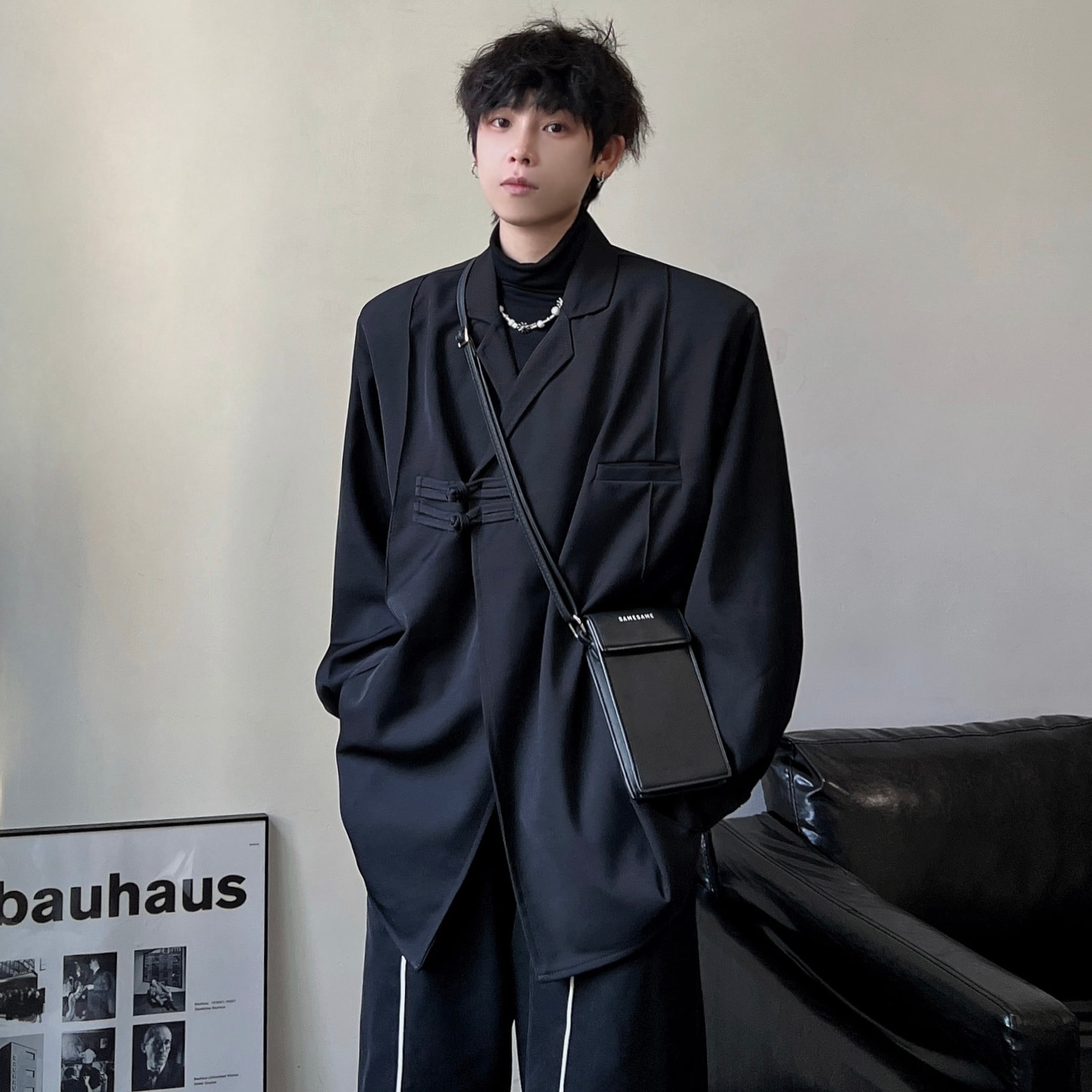YOUSHIQIレトロチャイナ風斜め襟シャツ