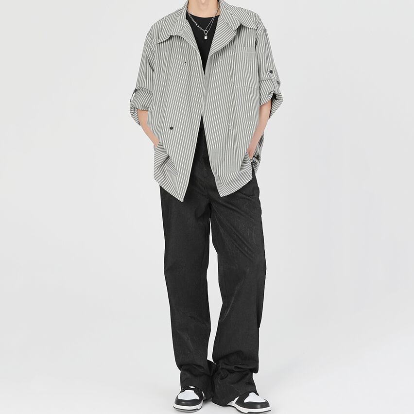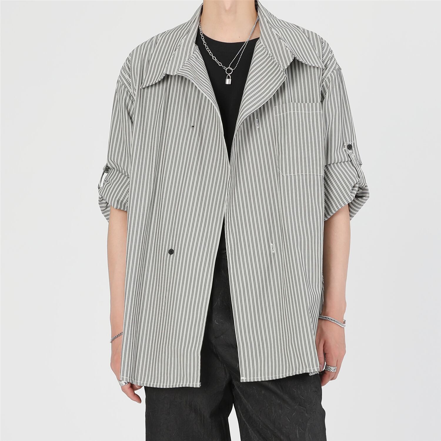 BOB大人っぽい2wayストライプ柄長袖シャツ