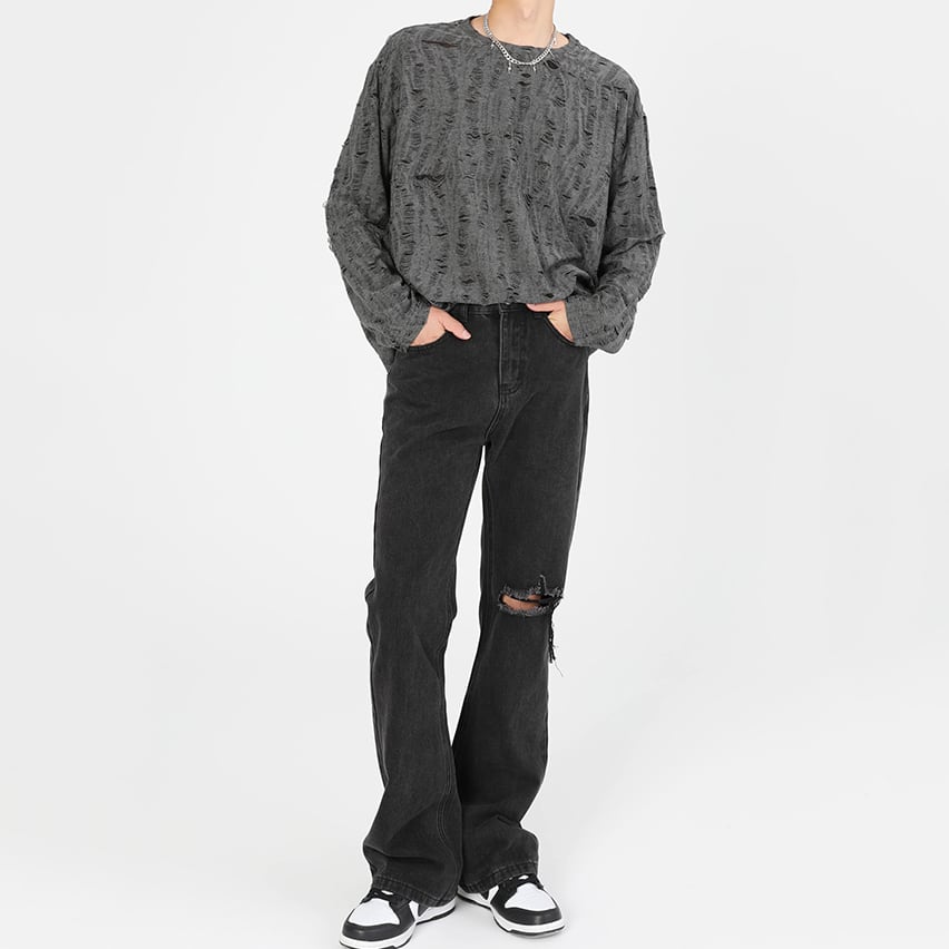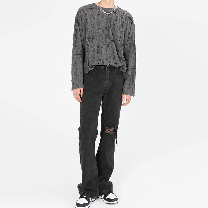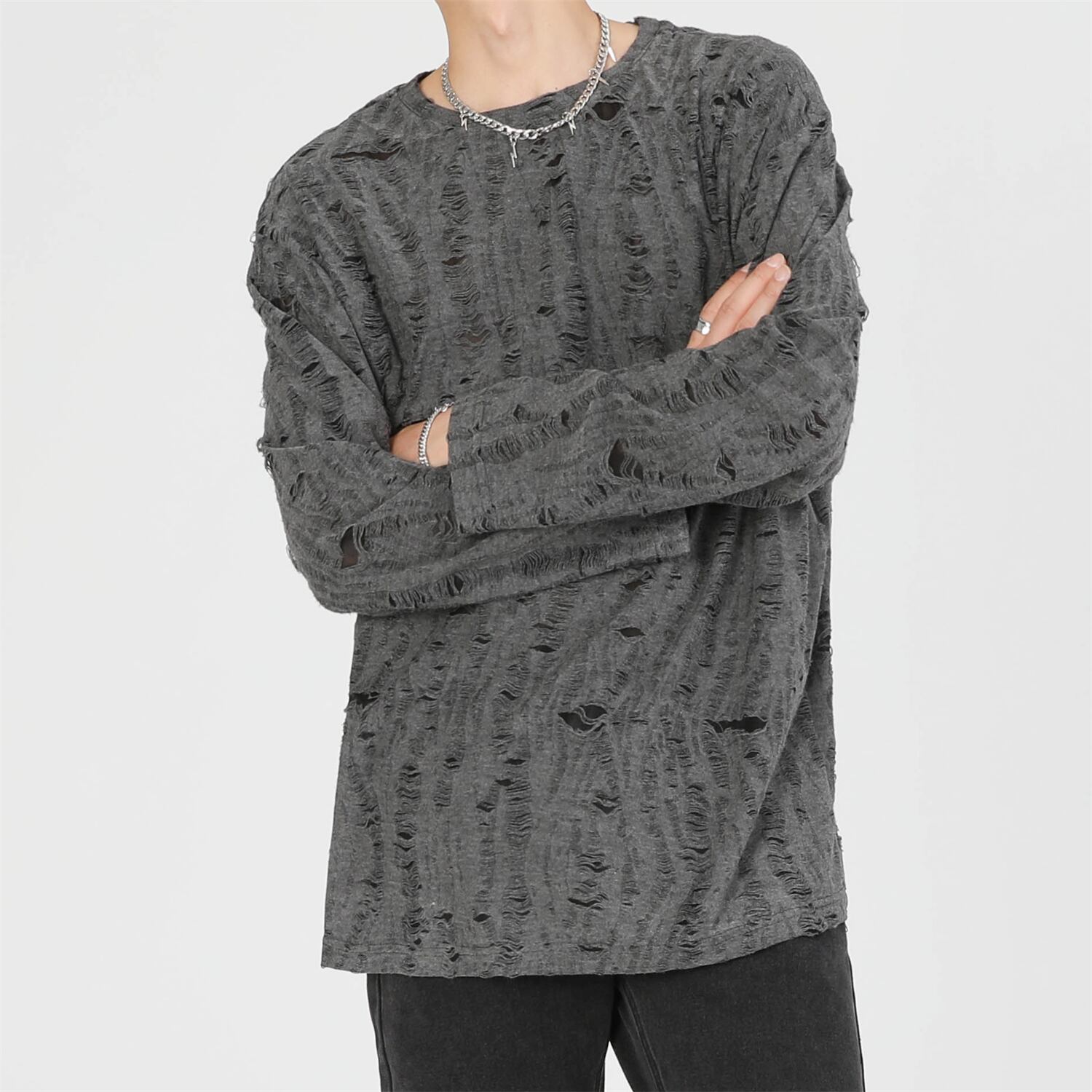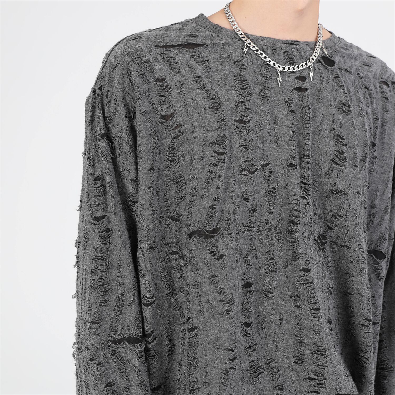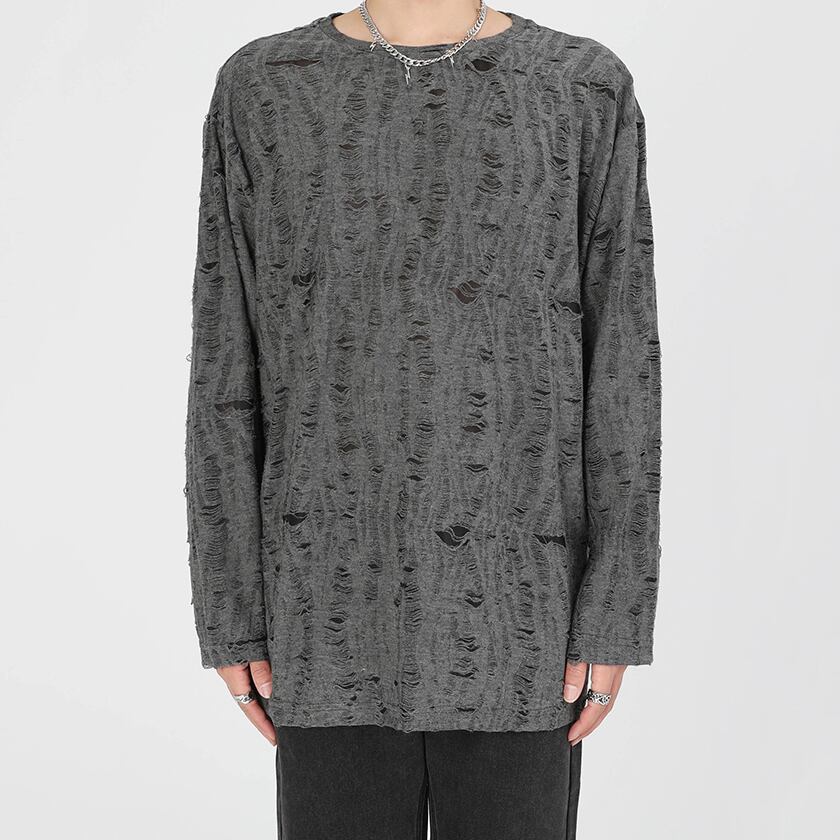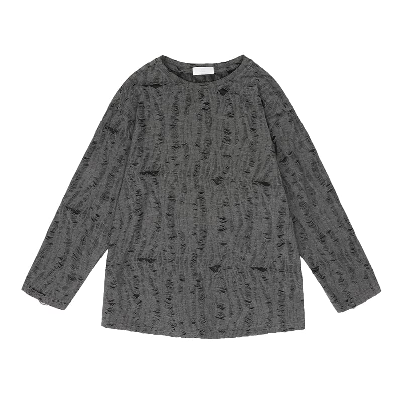 BOB濃灰色ダメージ加工長袖Tシャツ