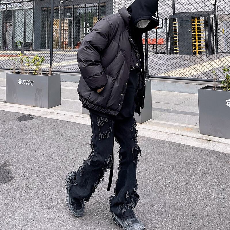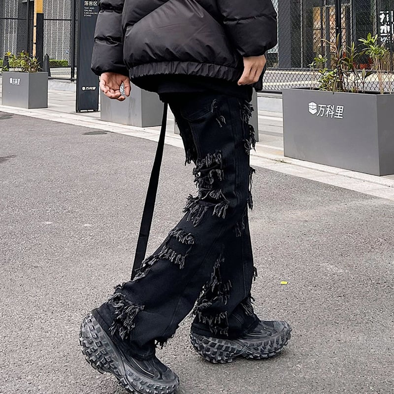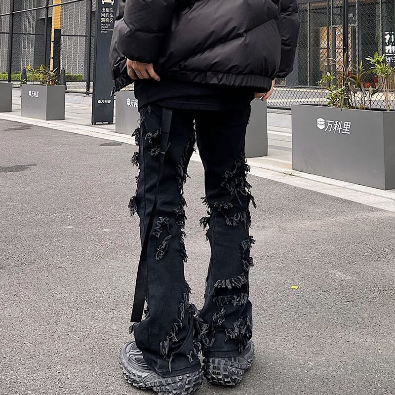 BLACKLISTS黒のローエッジデニムフレアパンツ