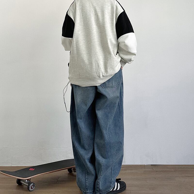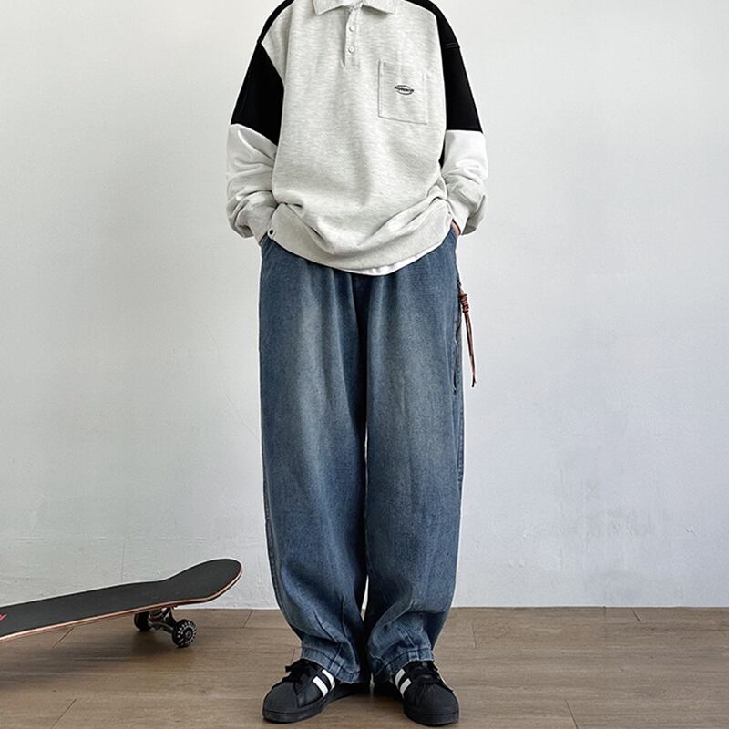 JOYZONEジップポケット付きワイドデニムパンツ