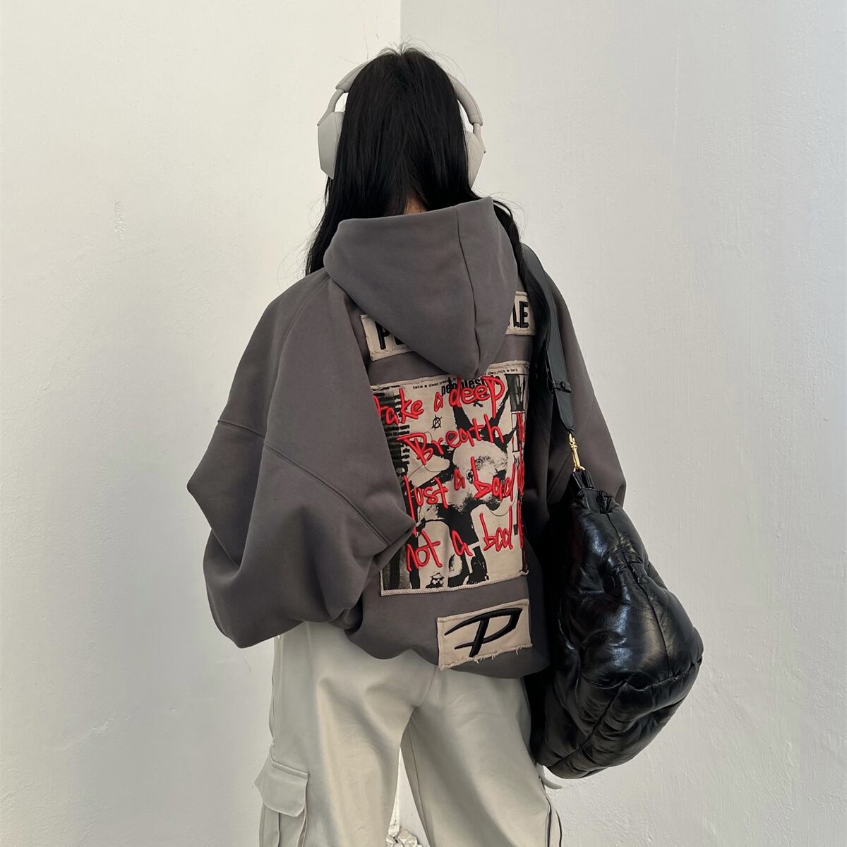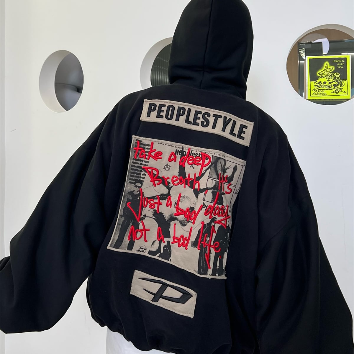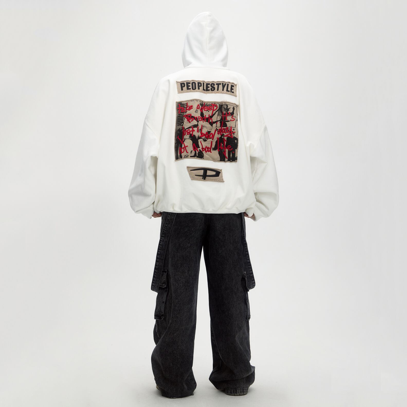 PEOPLESTYLEフロントポケット付きプリントパーカー