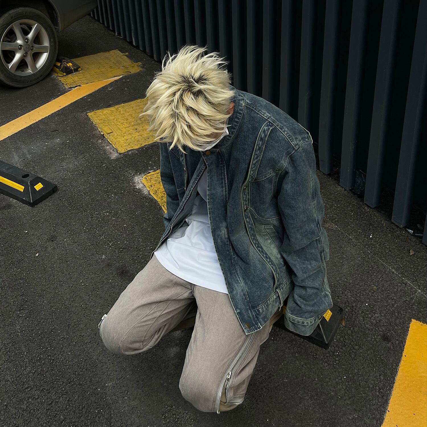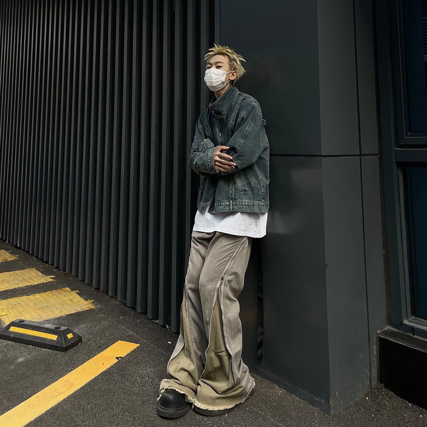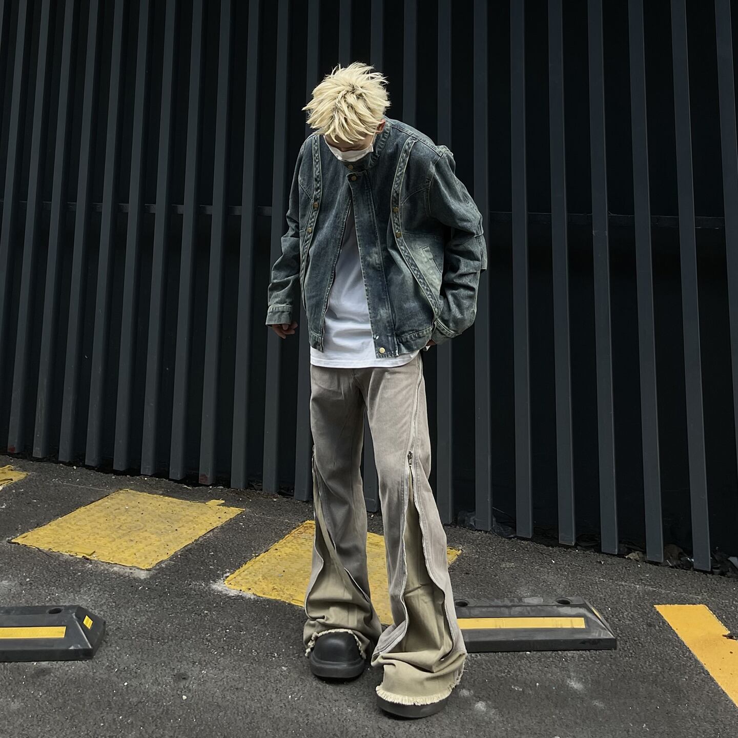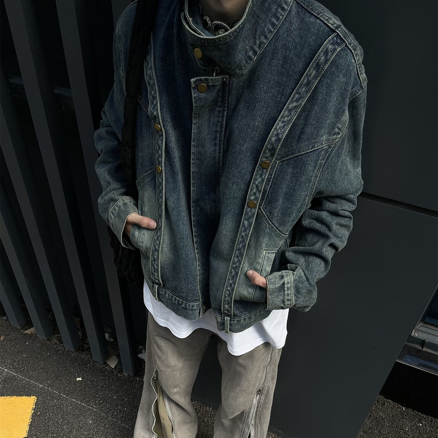 MaxDstrストリート系ジップアップデニムジャケット