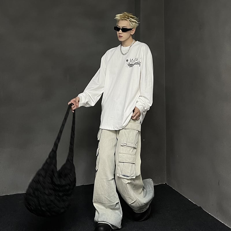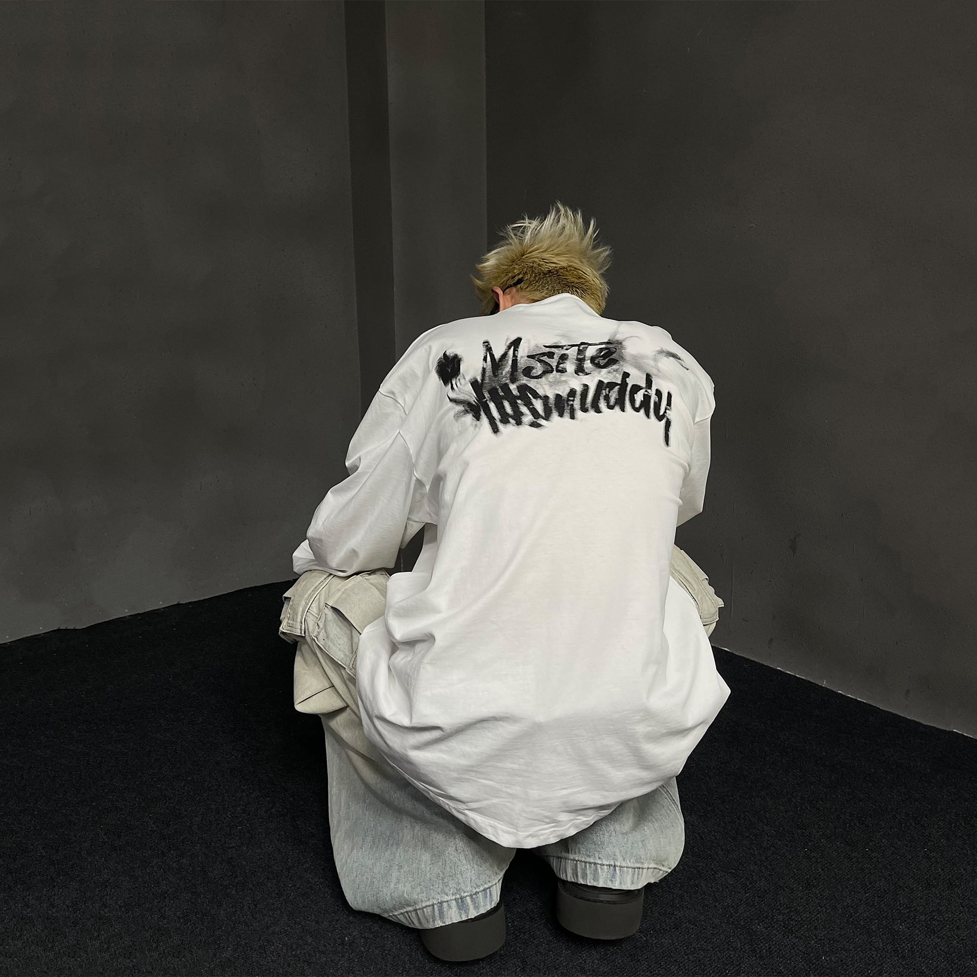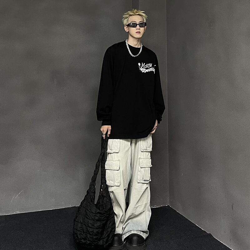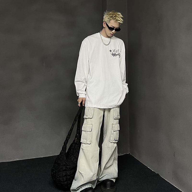 MaxDstrかすれ英字プリント長袖Tシャツ