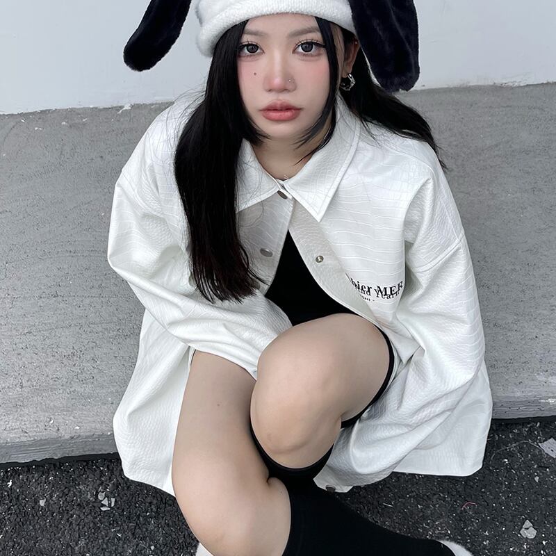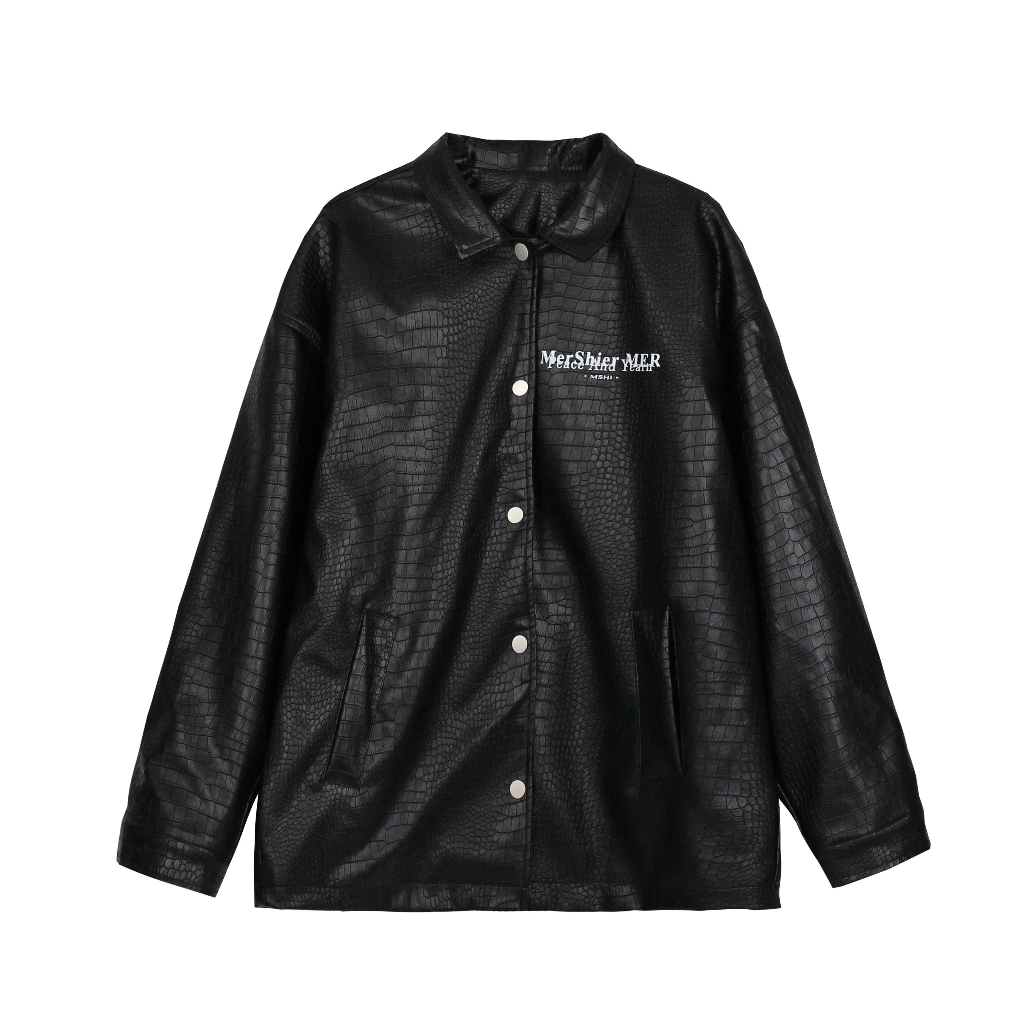 ZZHenLワニ柄フェイクレザーオーバージャケット