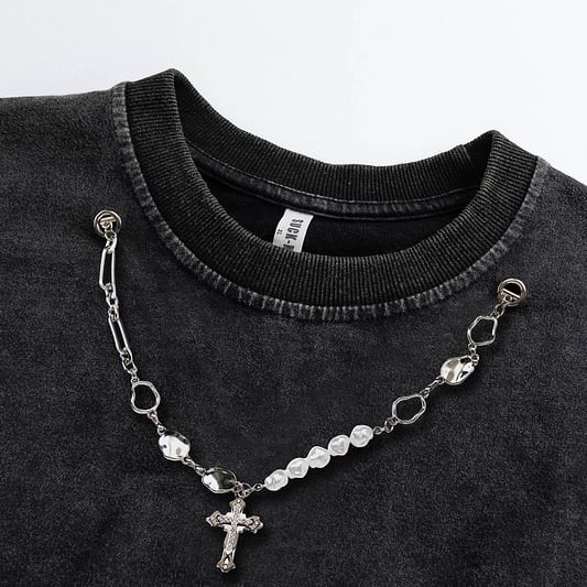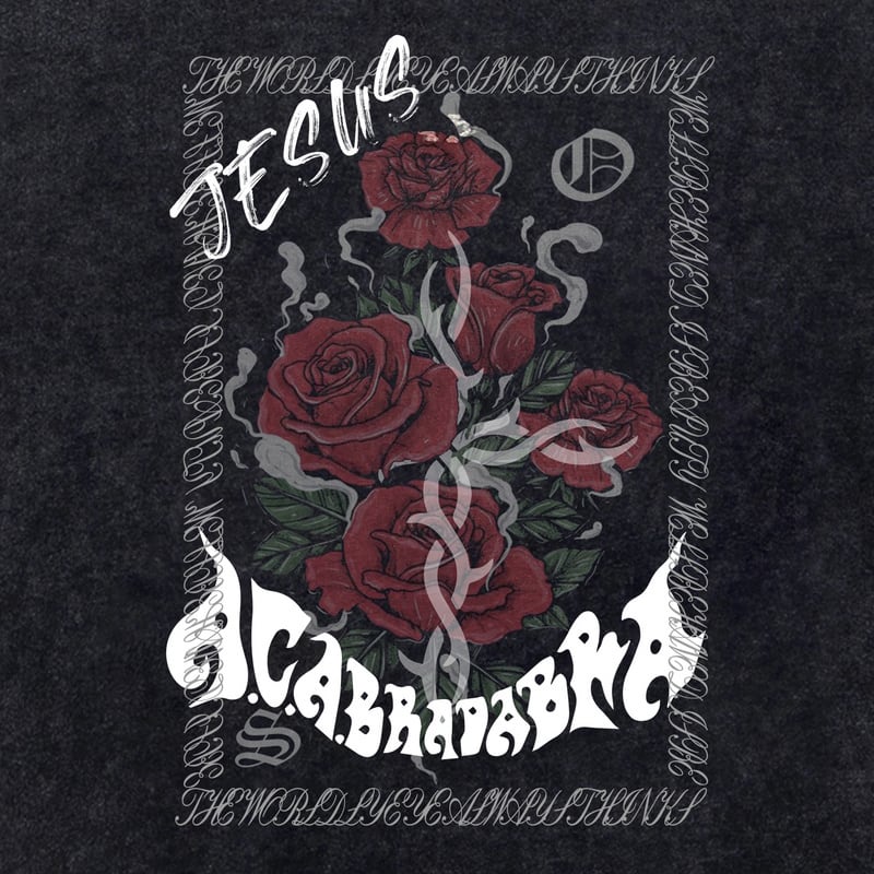NIHAOHAOダメージ加工バラプリントTシャツ