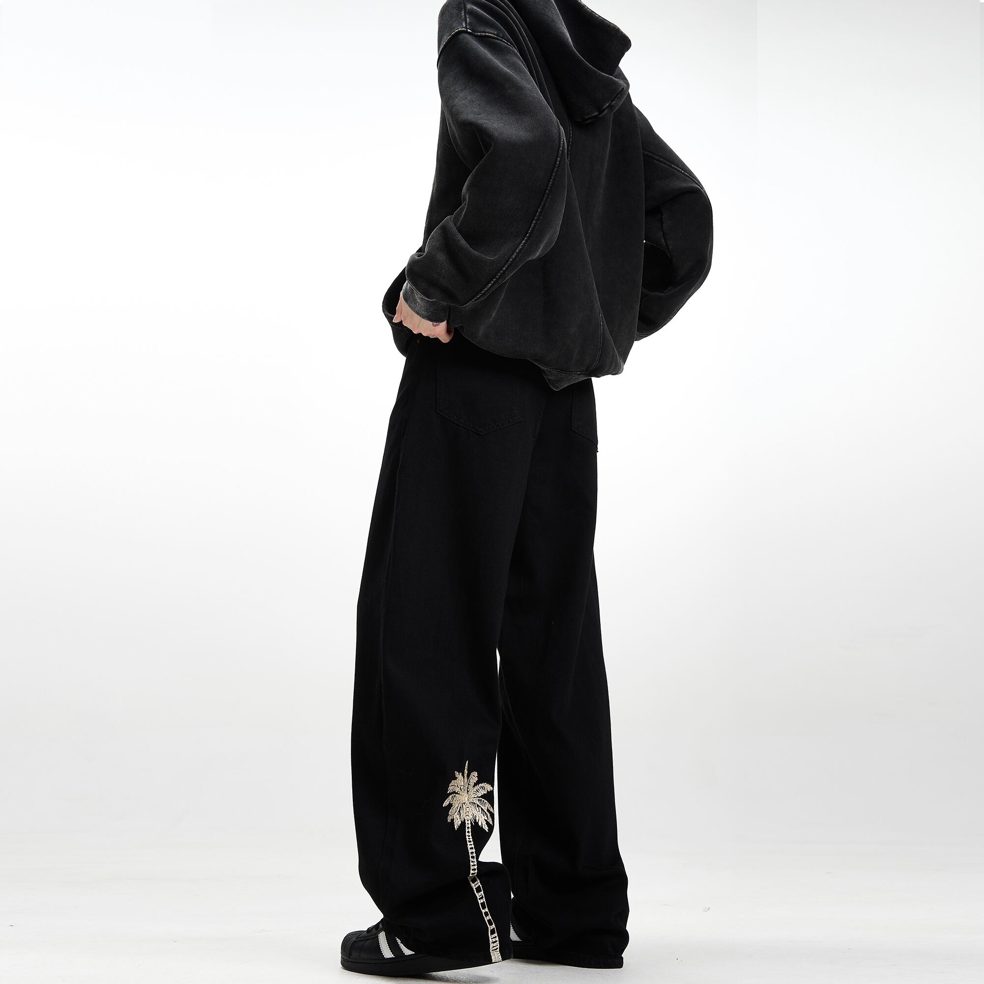 MADWITCHヤシの木の刺しゅう入りデニムパンツ