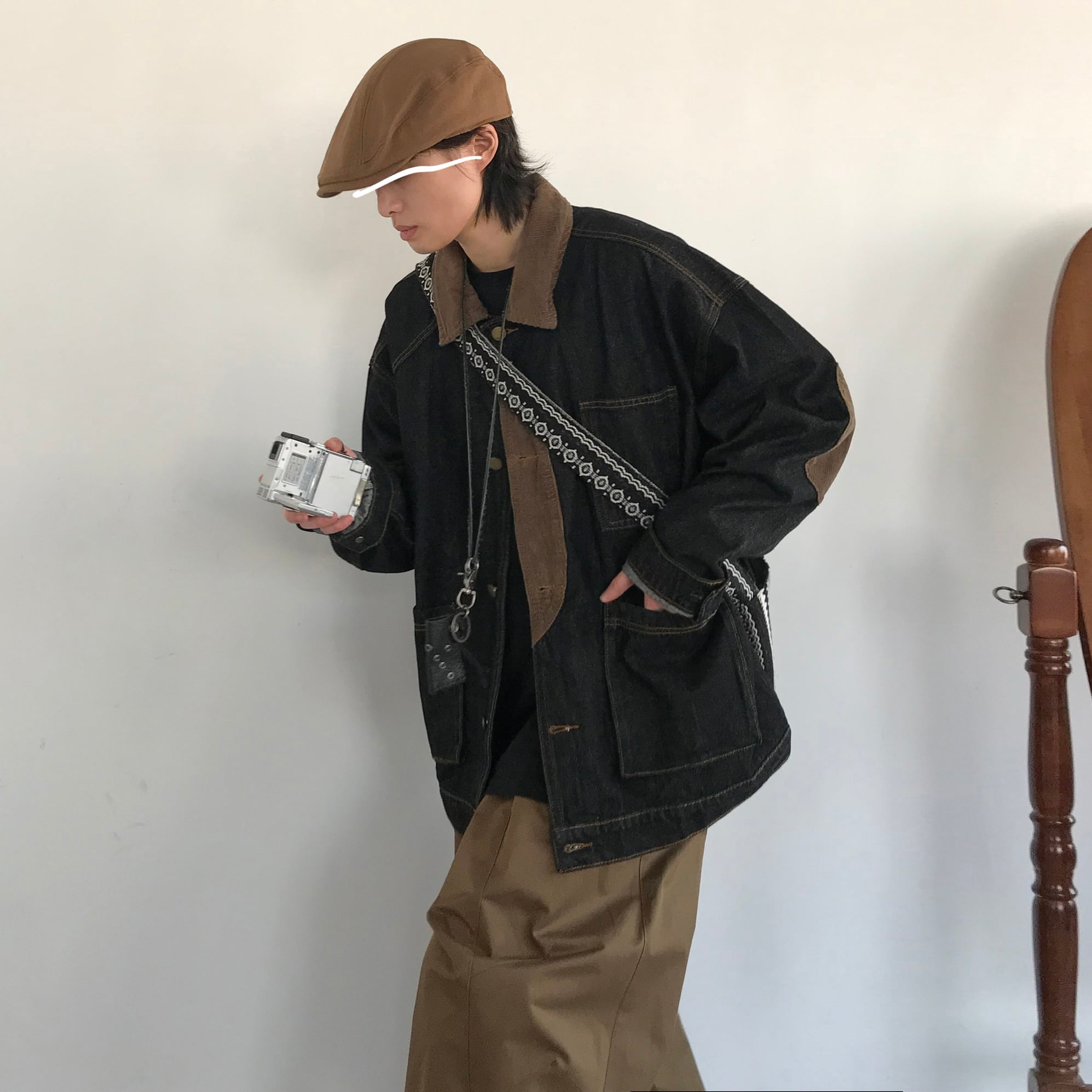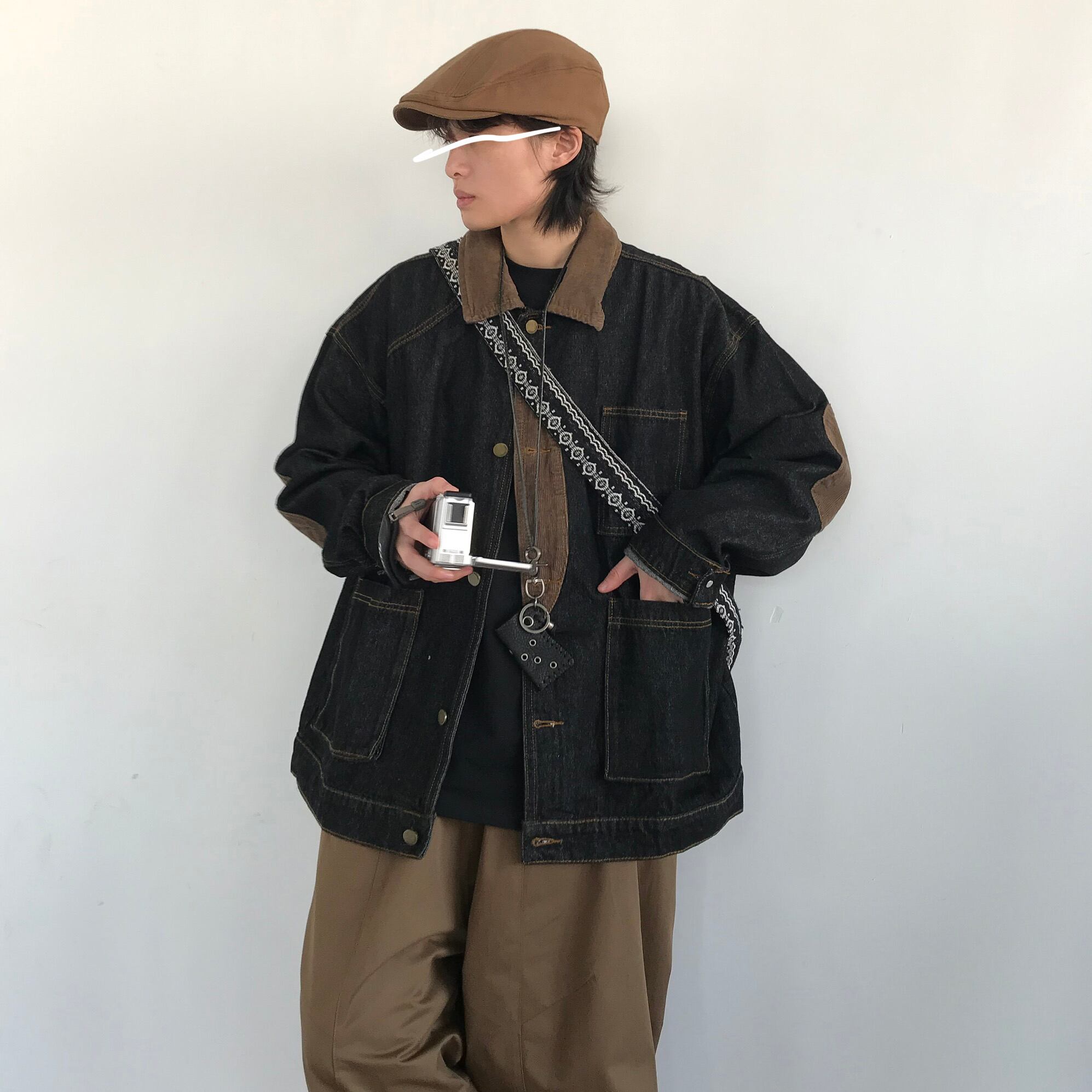 コーデュロイ切り替えデニムジャケット