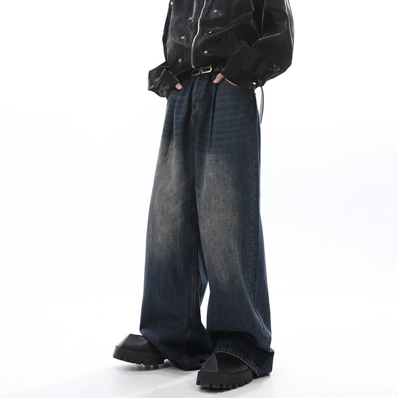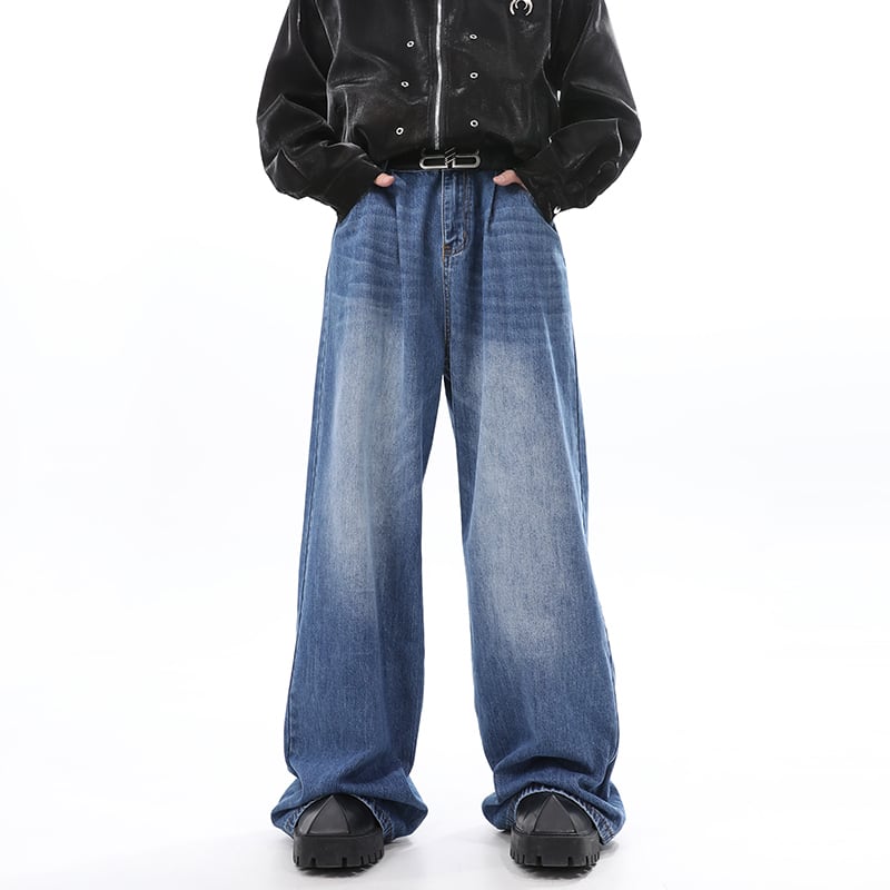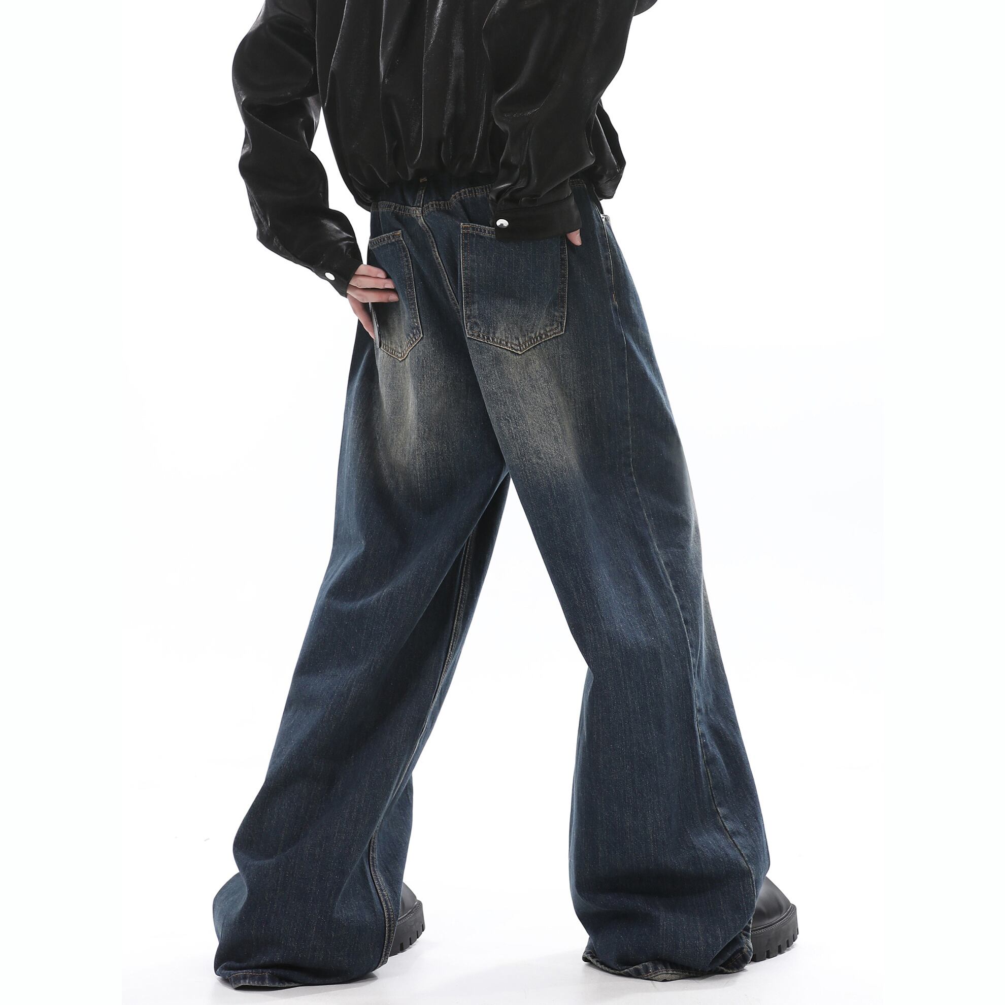 FAIRE ECHO濃藍色ワイドストレートデニムパンツ