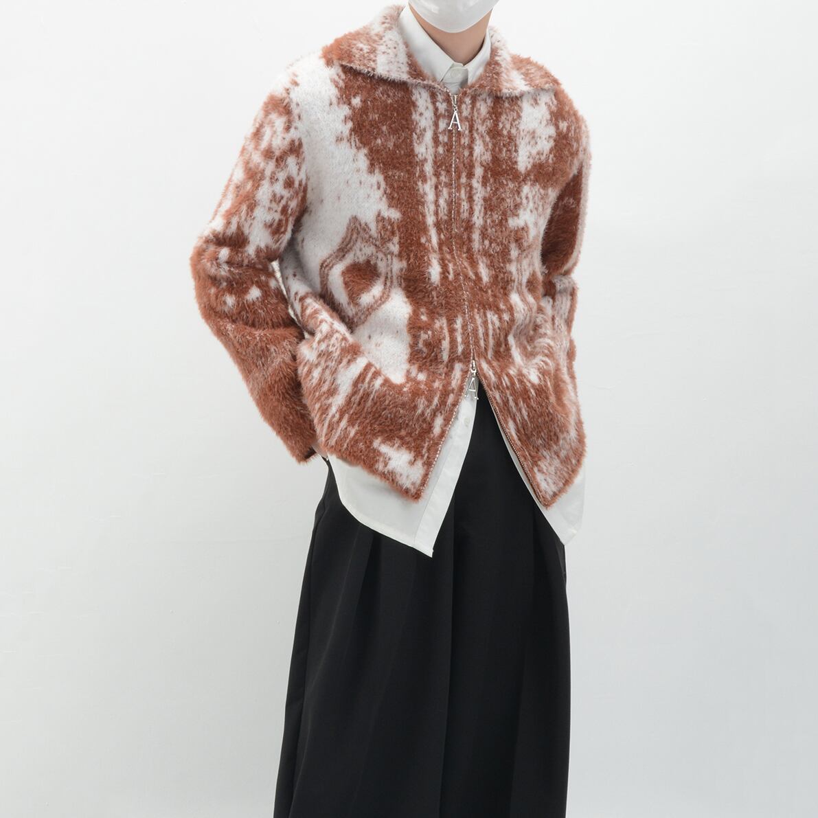 LUCE GARMENTフェイクファーダブルジップカーディガン