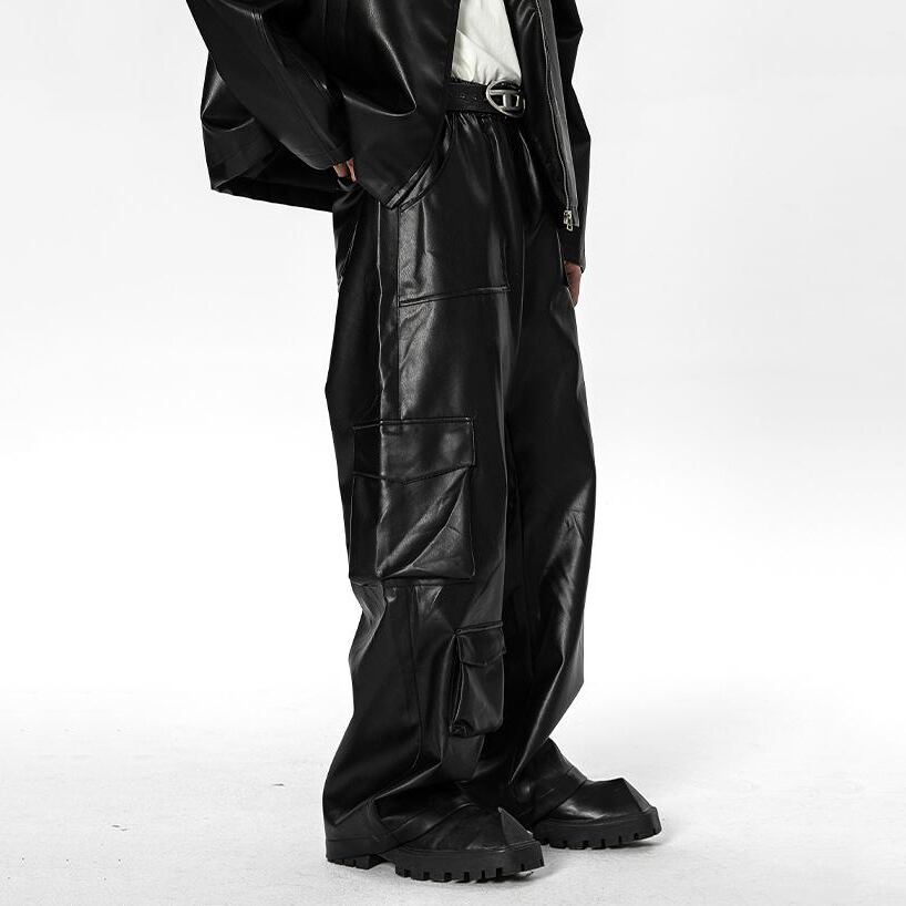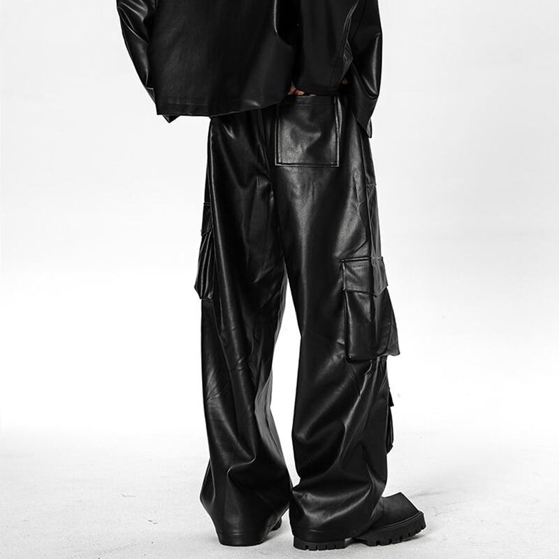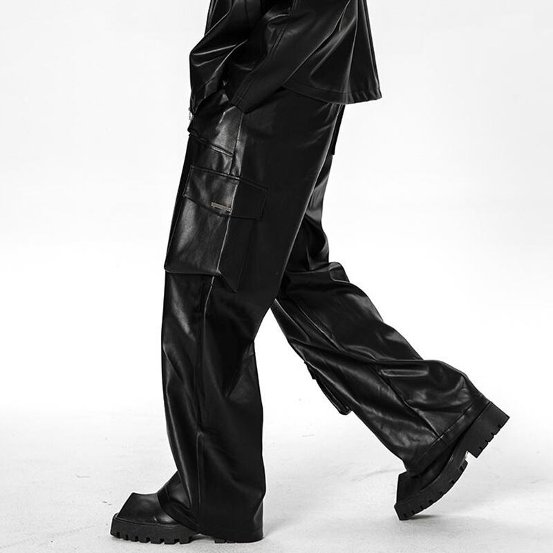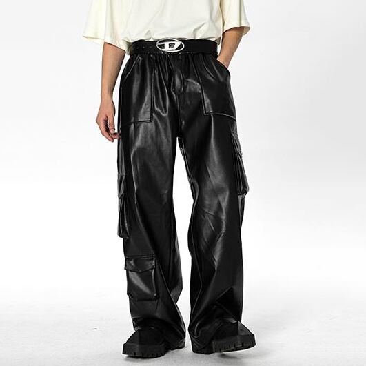 ヒップホップフェイクレザーカーゴパンツ