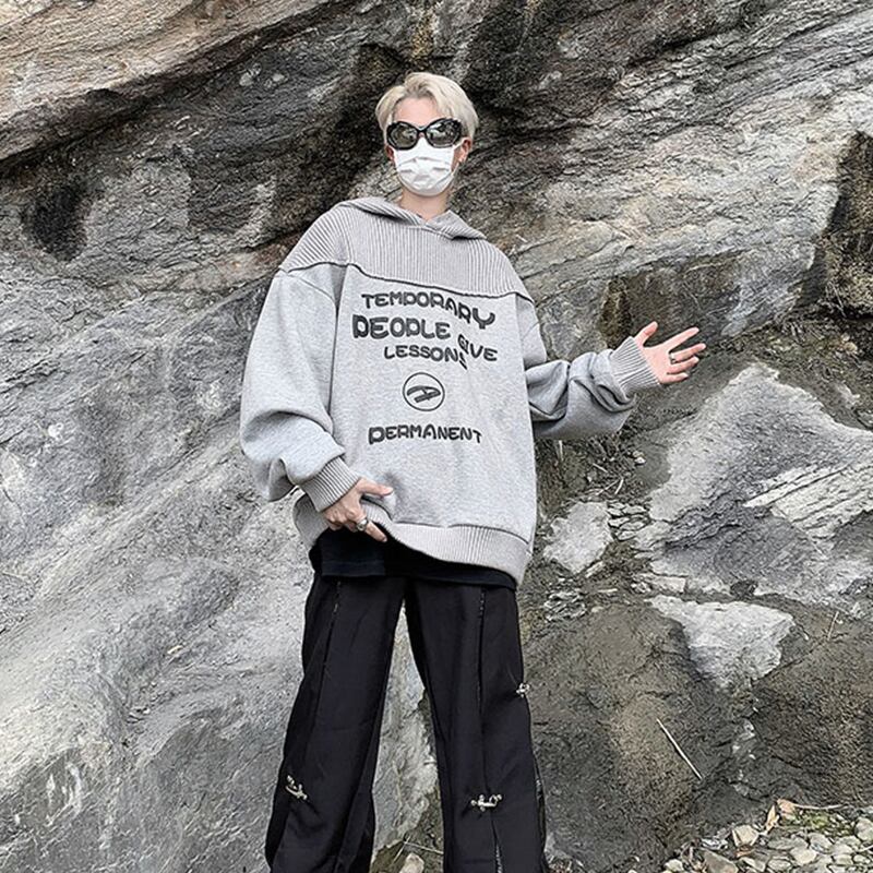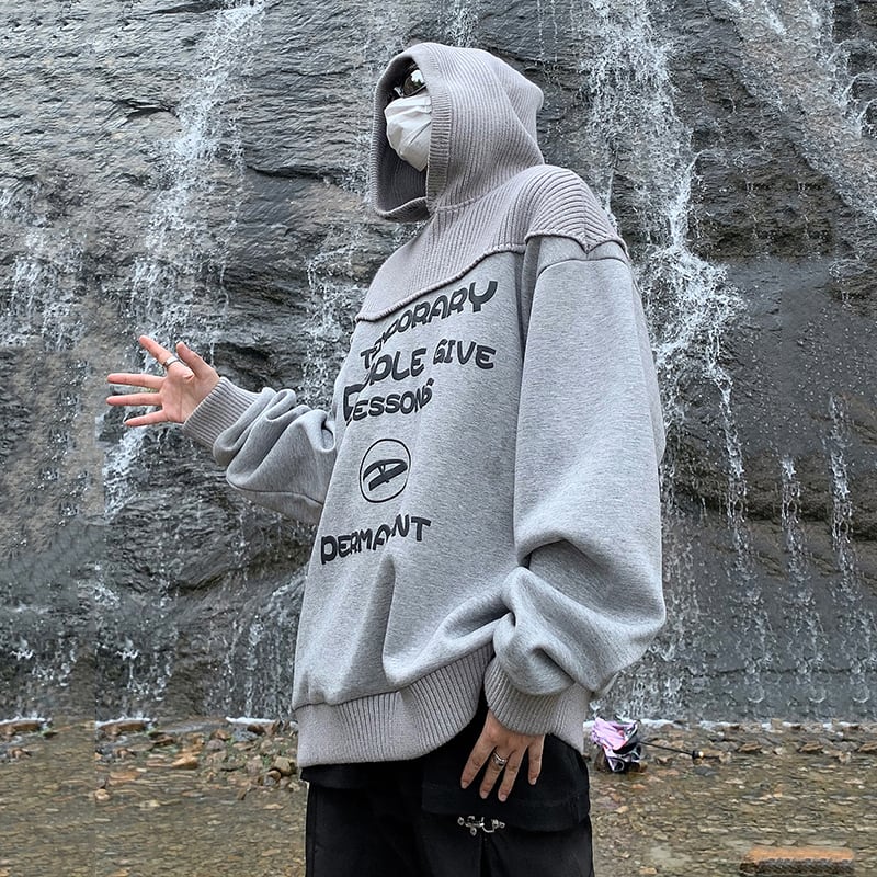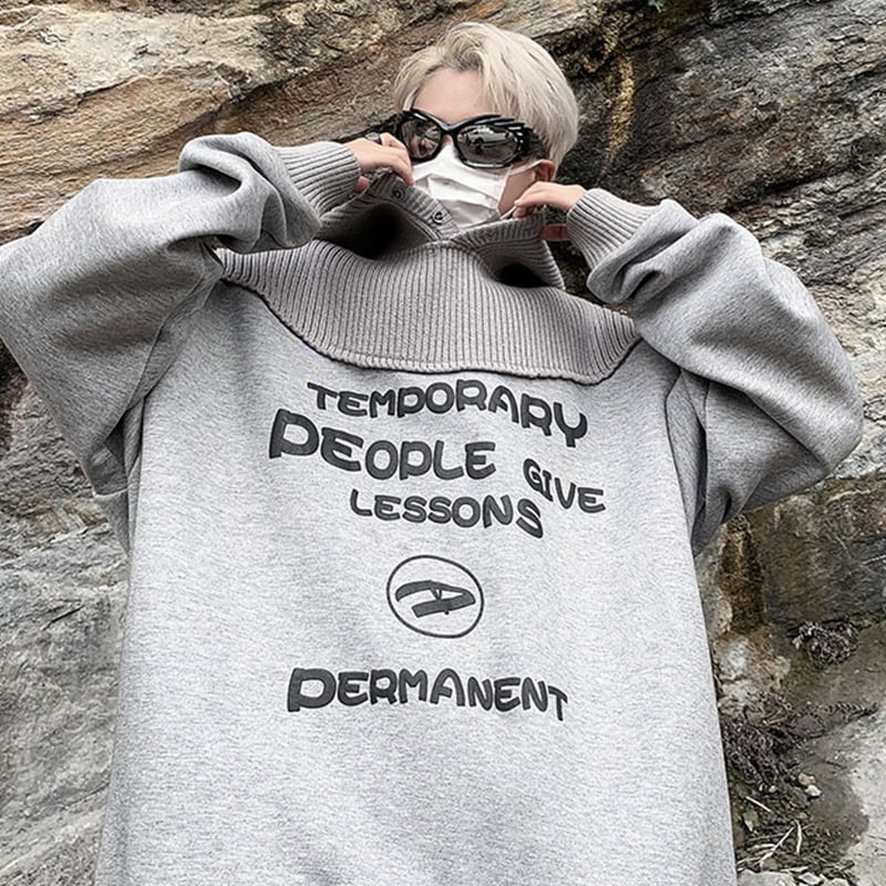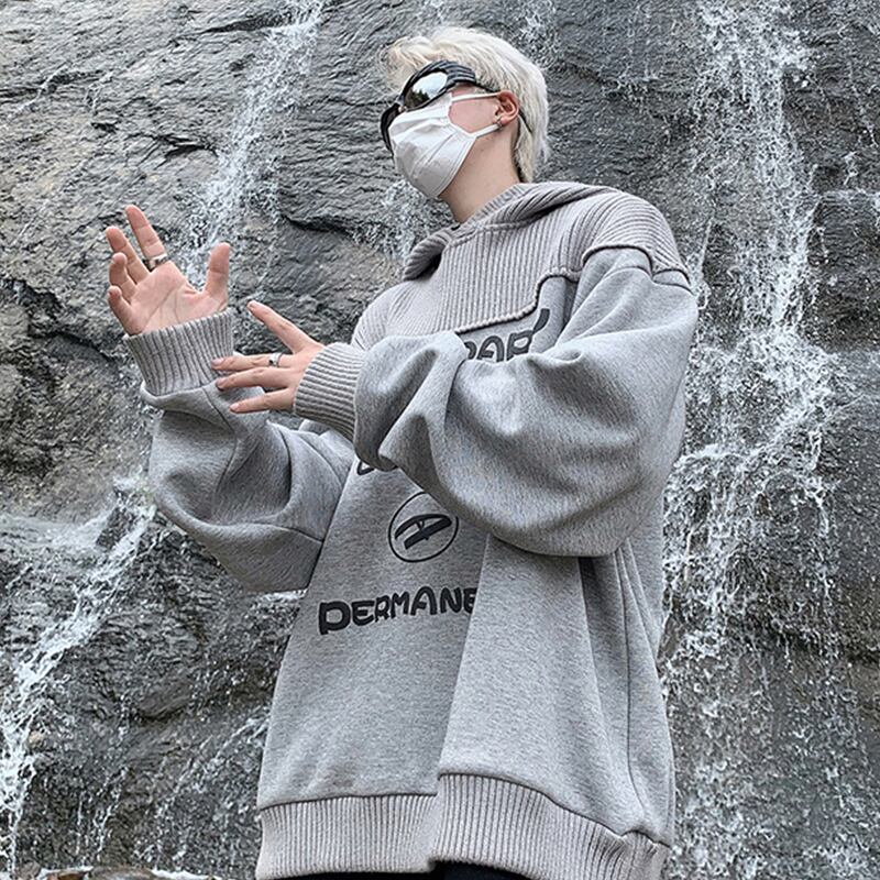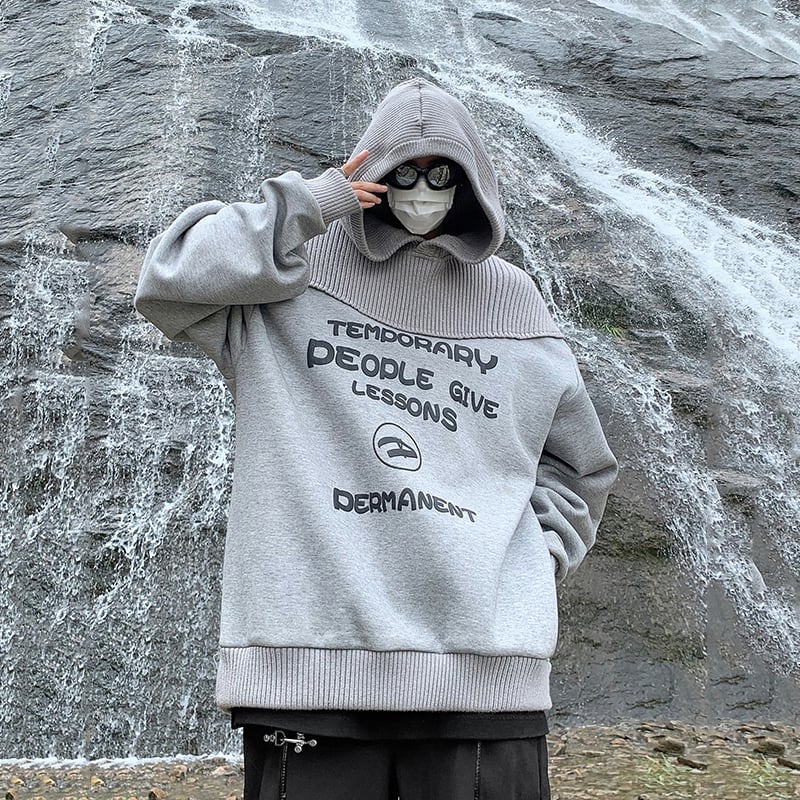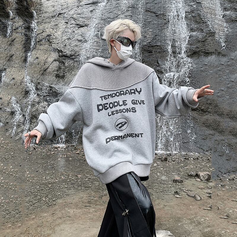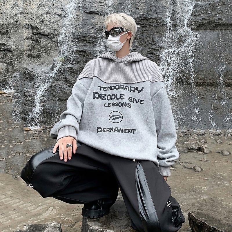 灰色のニット切り替えパーカー