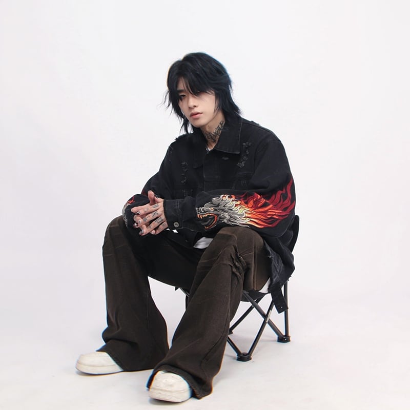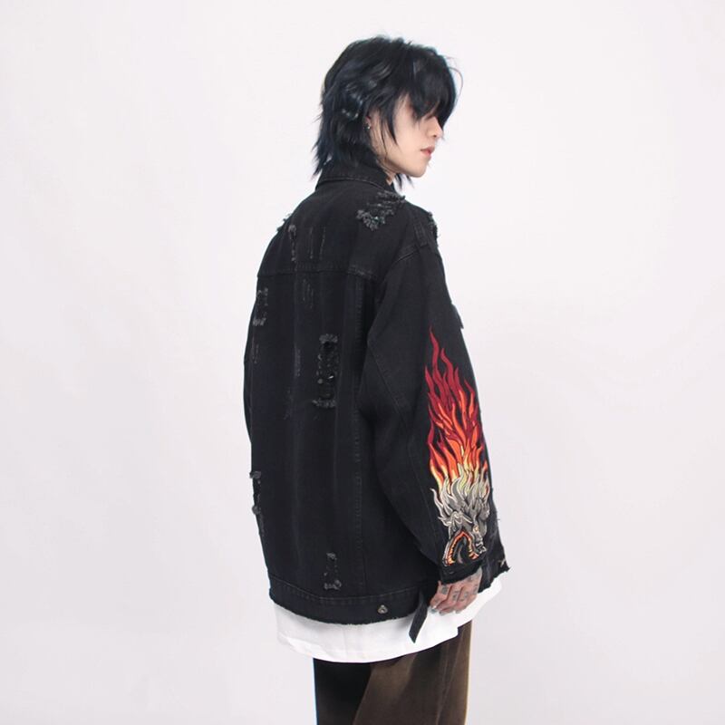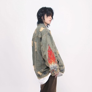 MZ STUDIO刺しゅう入りダメージデニムジャケット