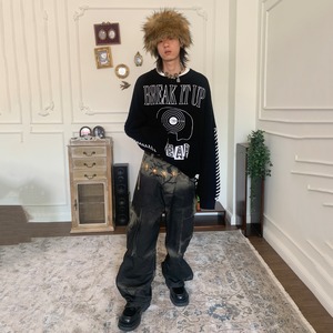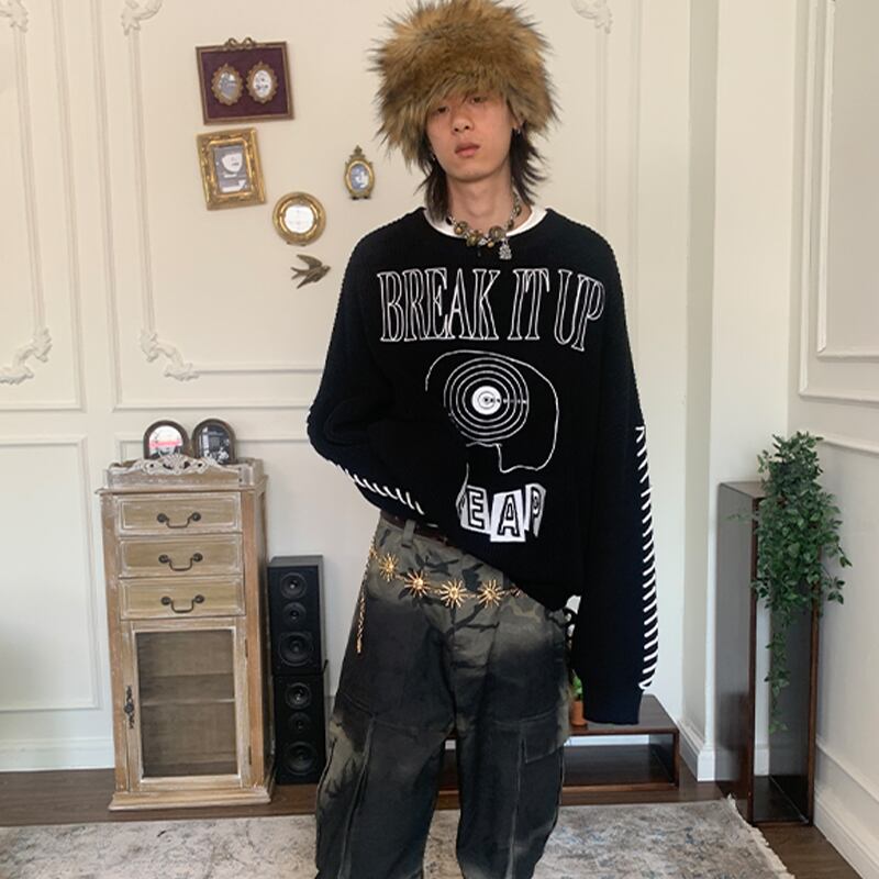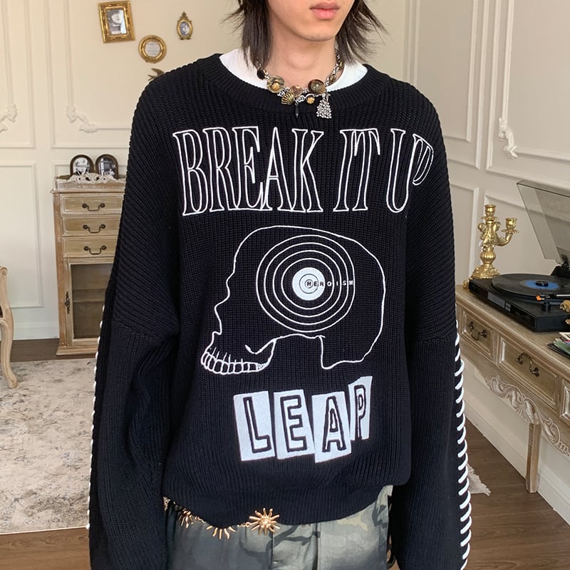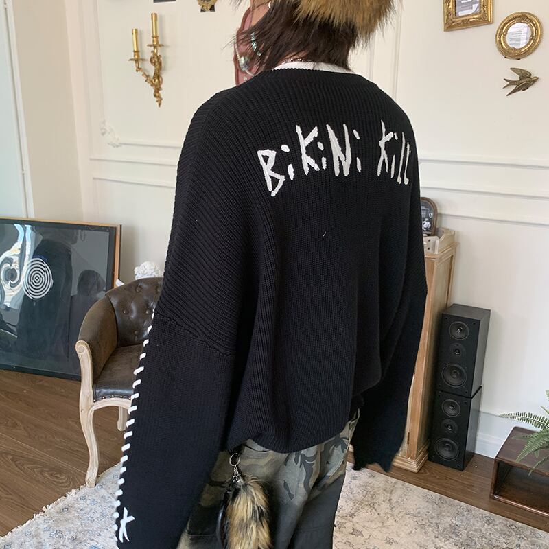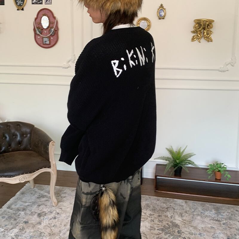 POH刺しゅう入りブラックニットセーター