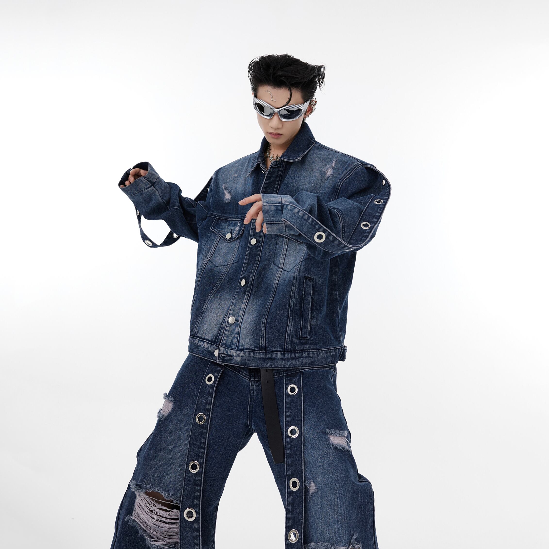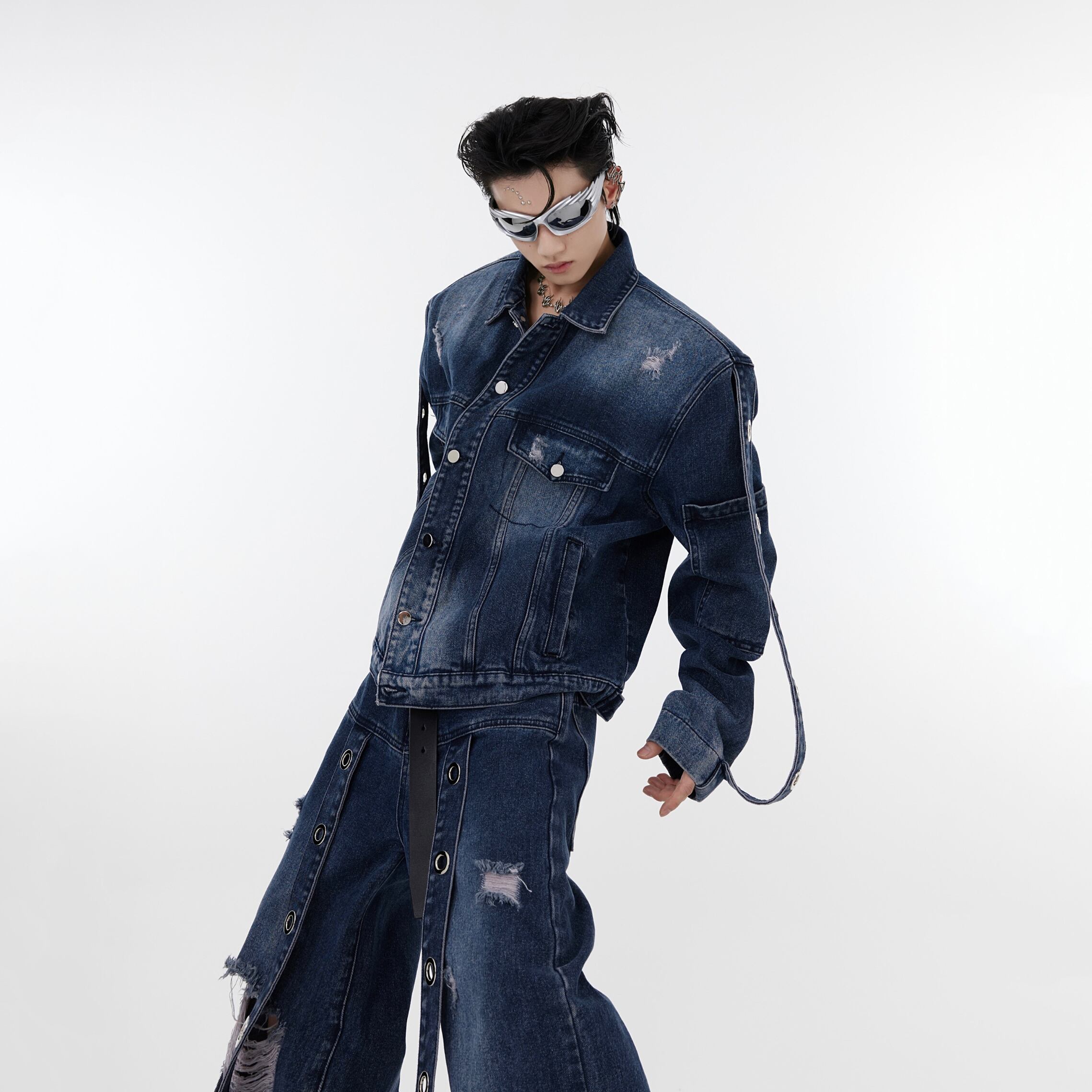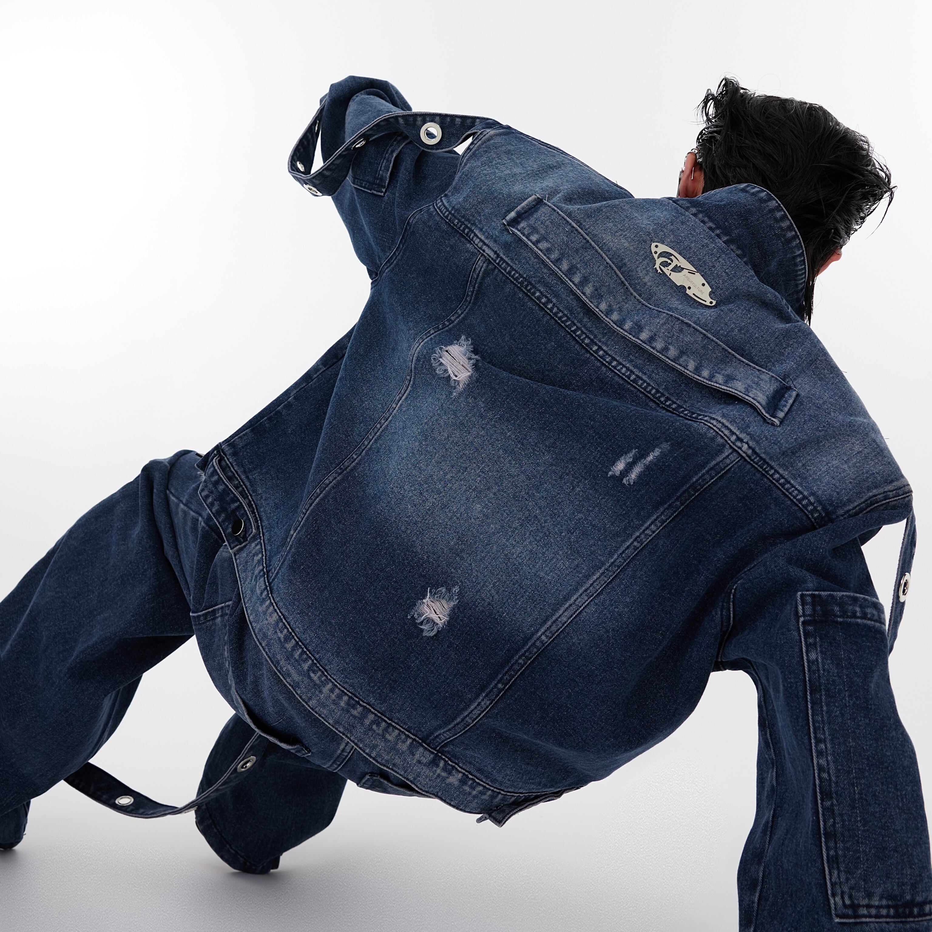 CulturE肩パッド内蔵ダメージデニムジャケット
