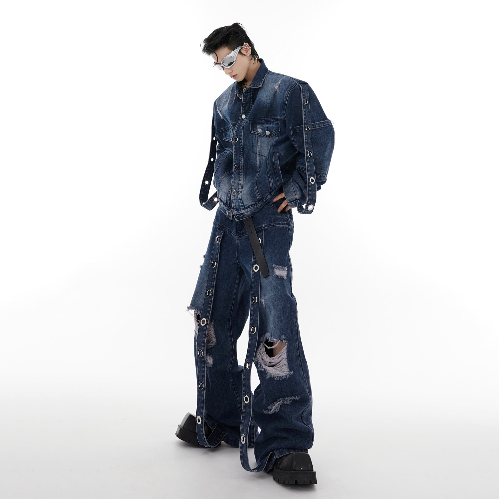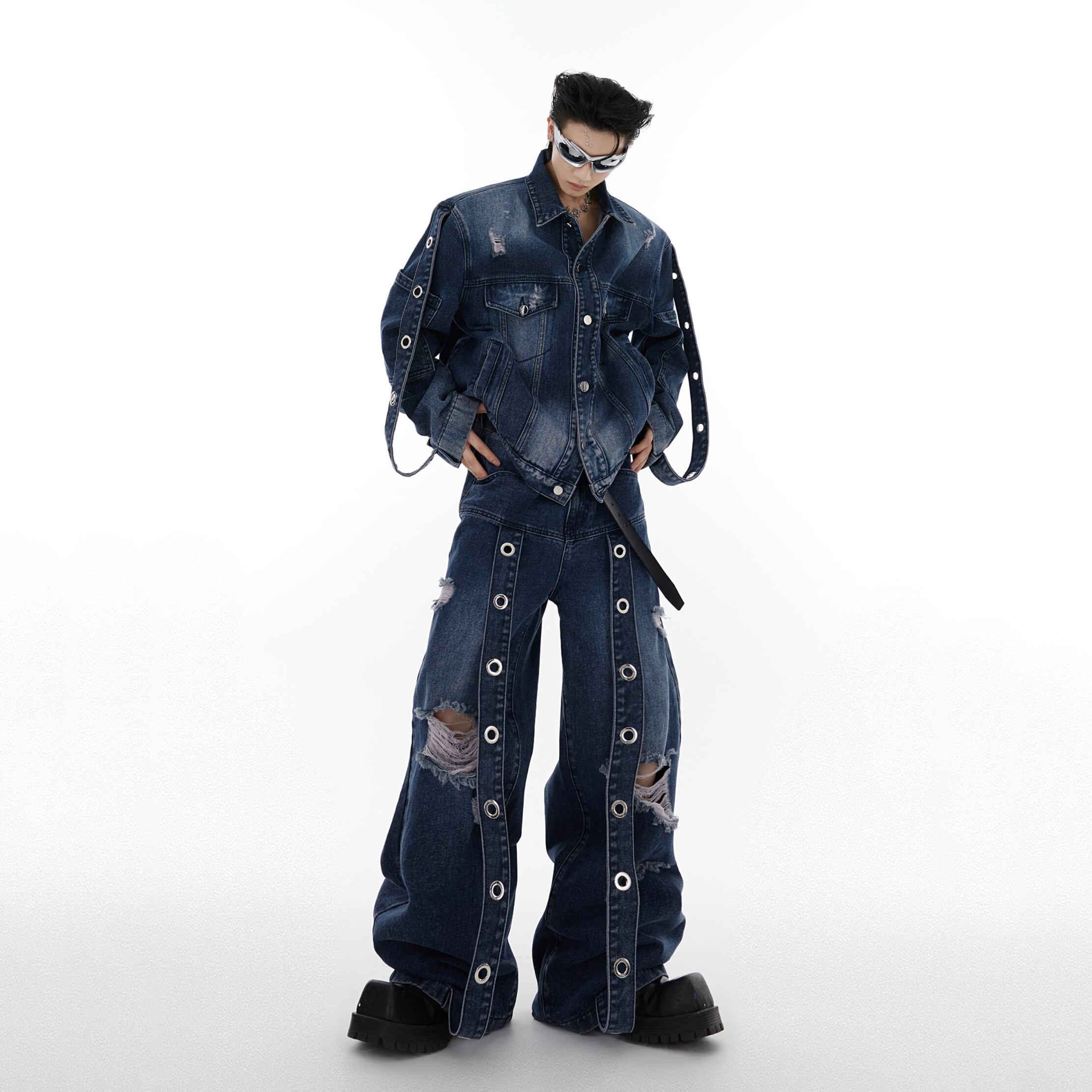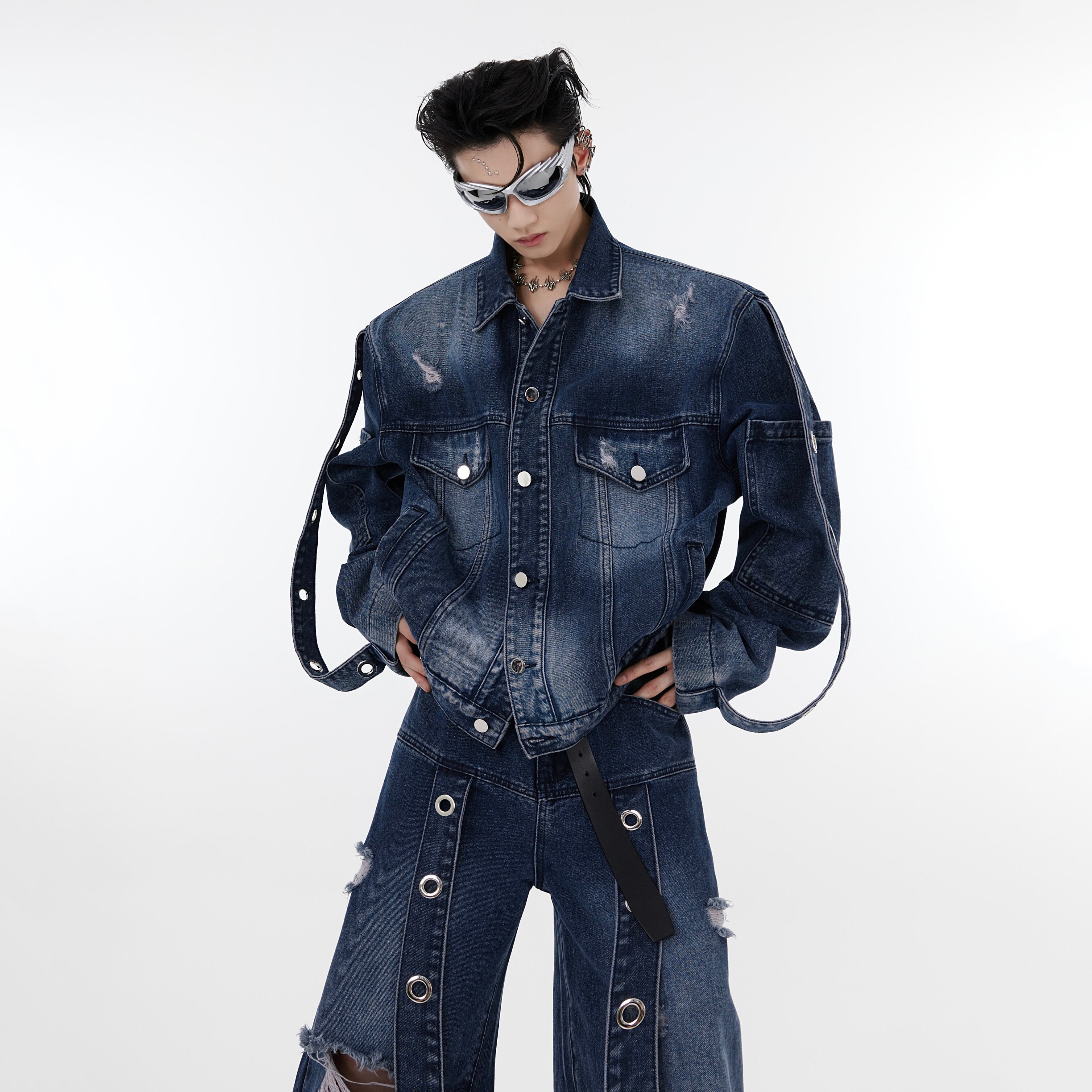 CulturE肩パッド内蔵ダメージデニムジャケット