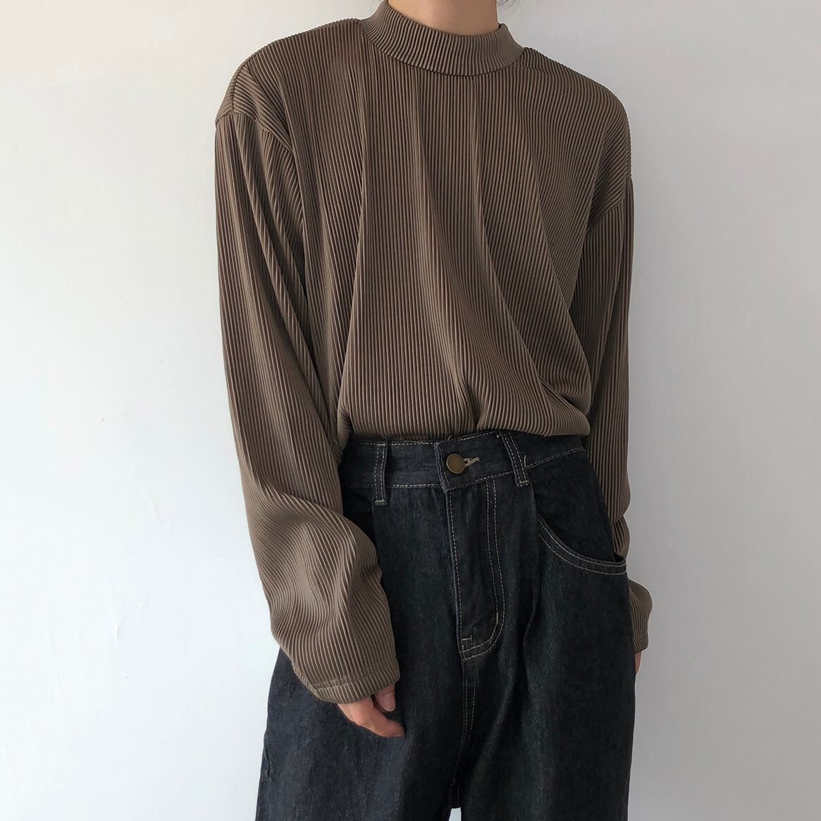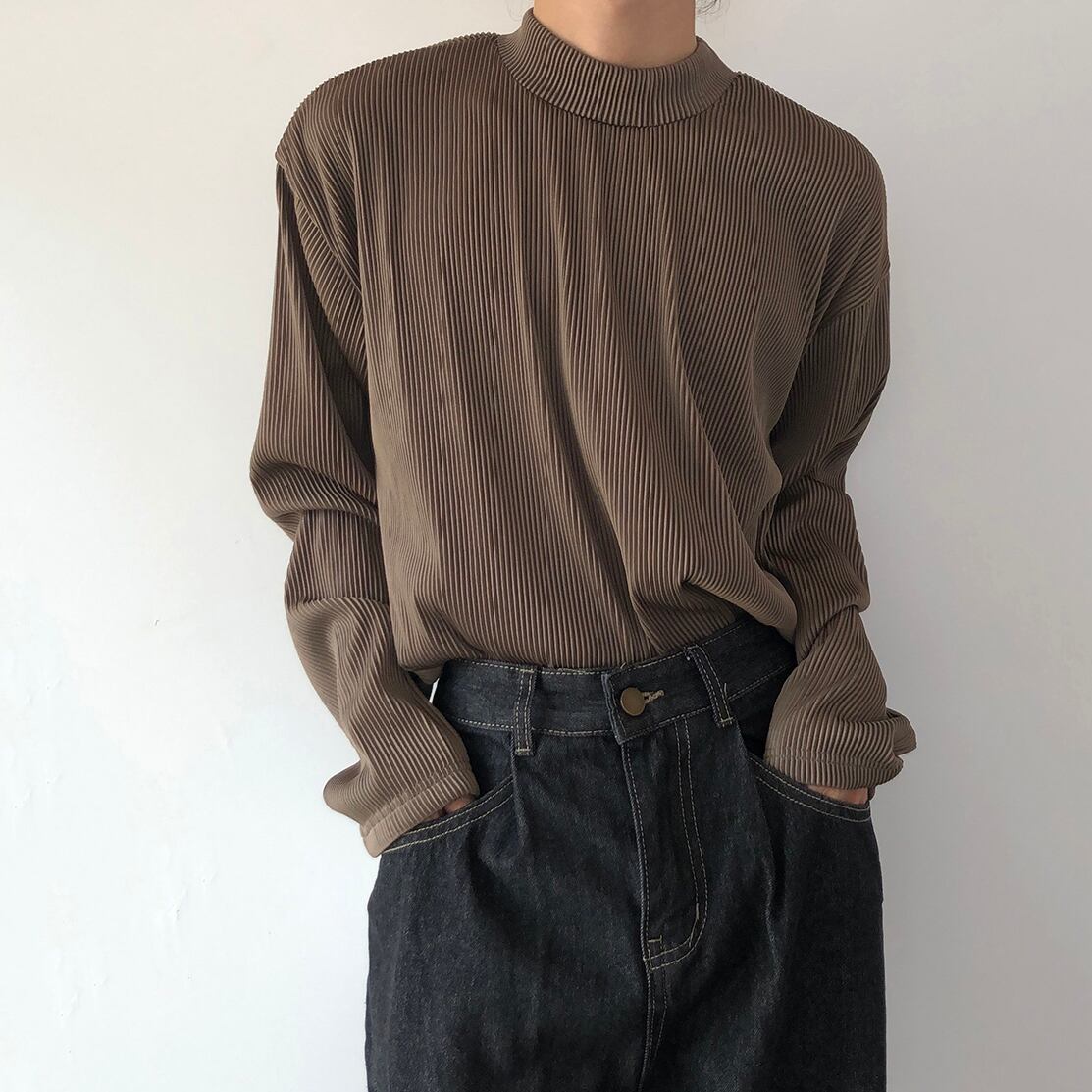 14GSL質感のあるハーフネックインナーTシャツ