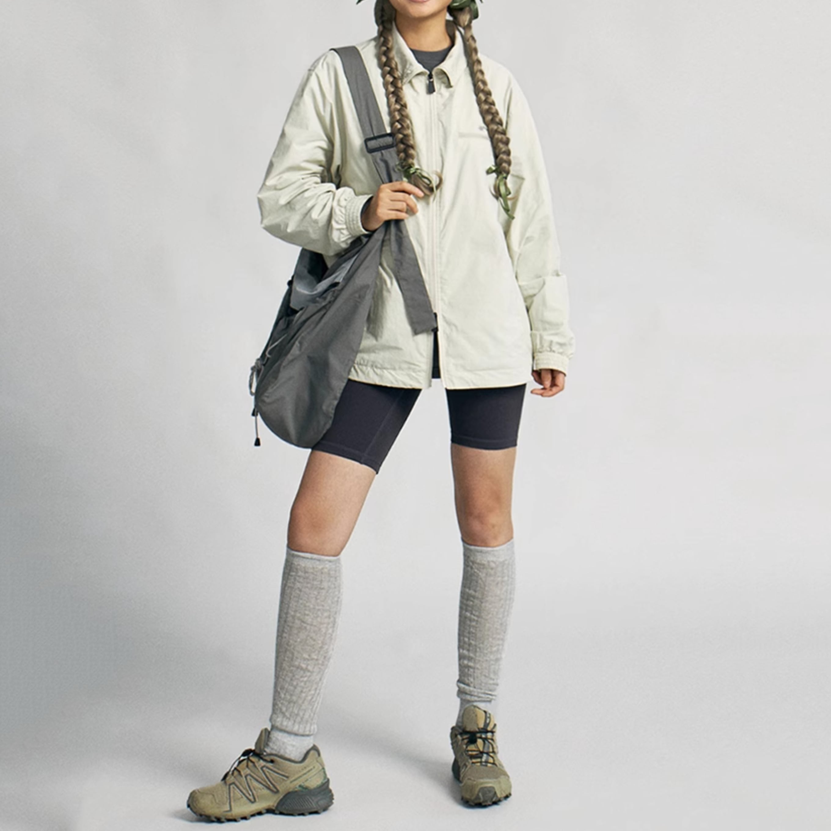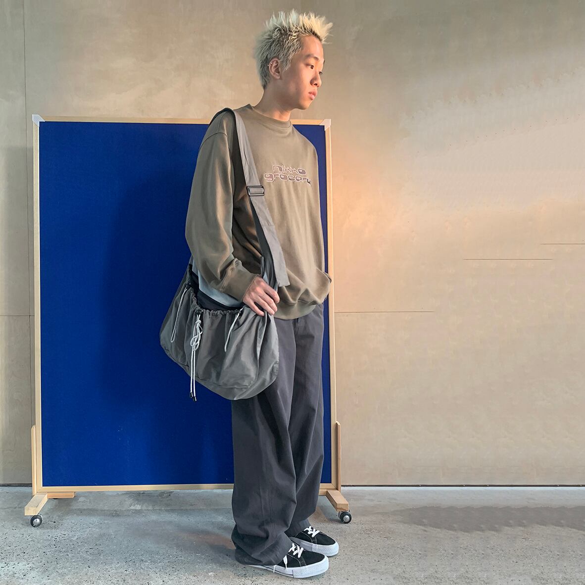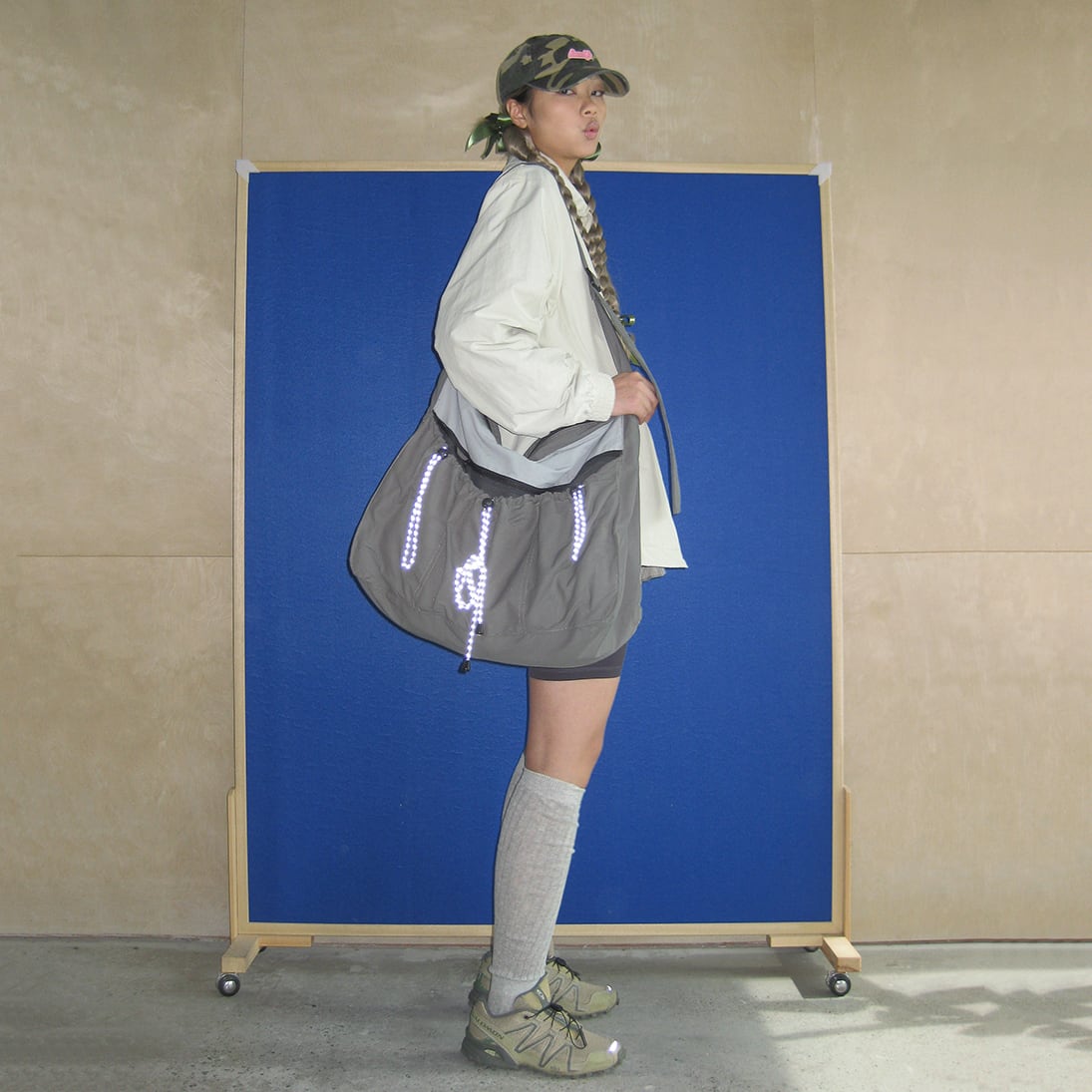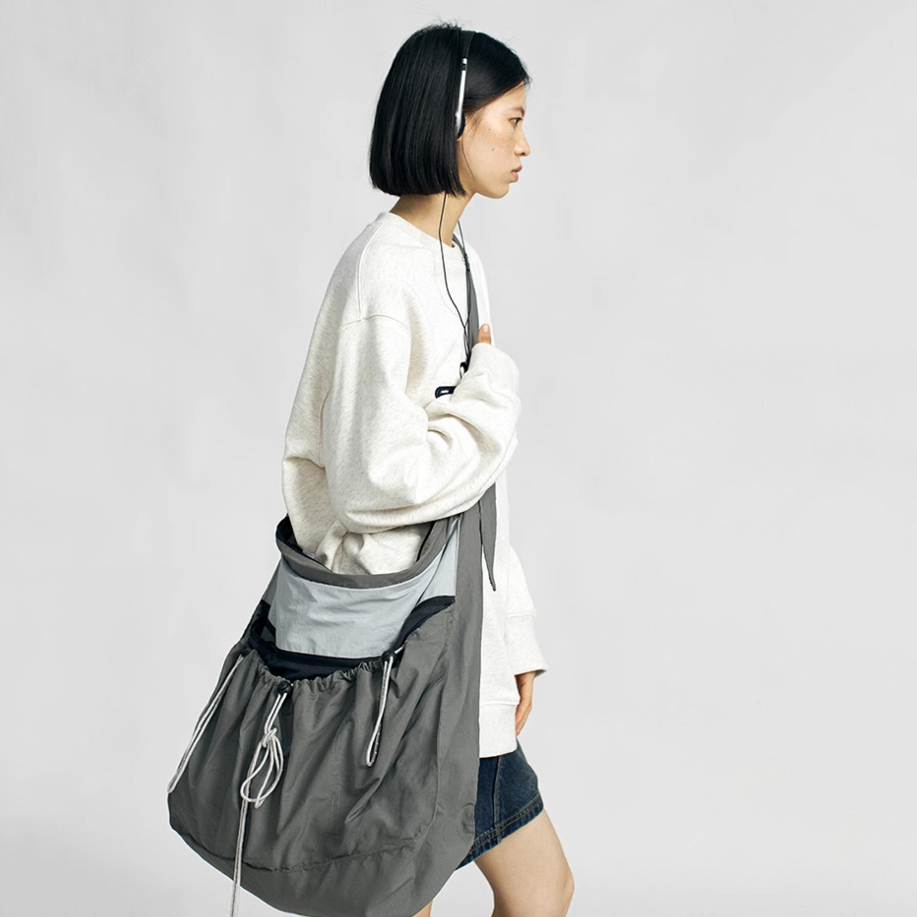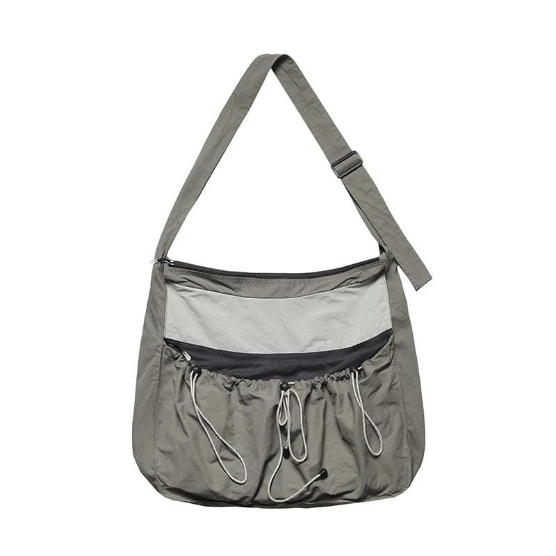灰色の巾着型ビッグショルダーバッグ