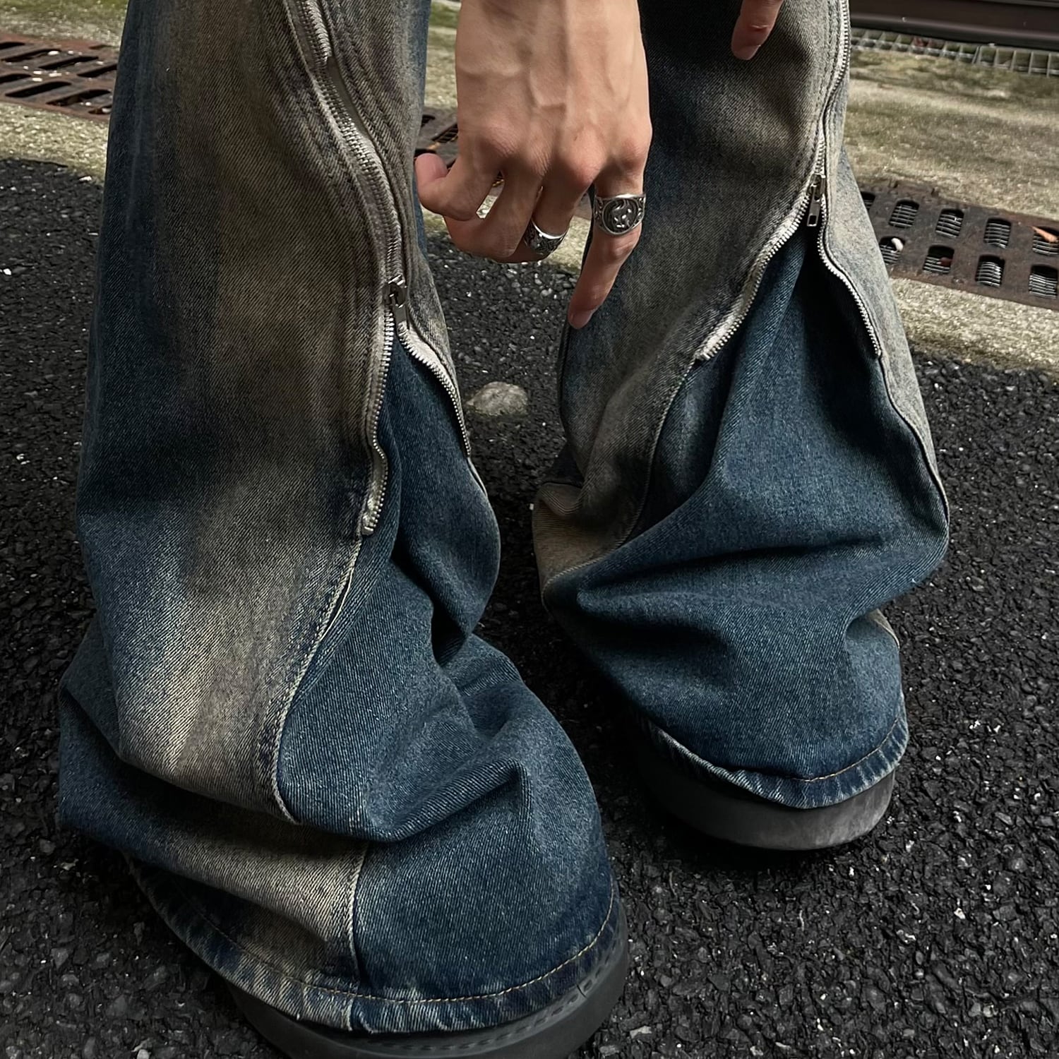 MaxDstrジップデザインフレアデニムパンツ