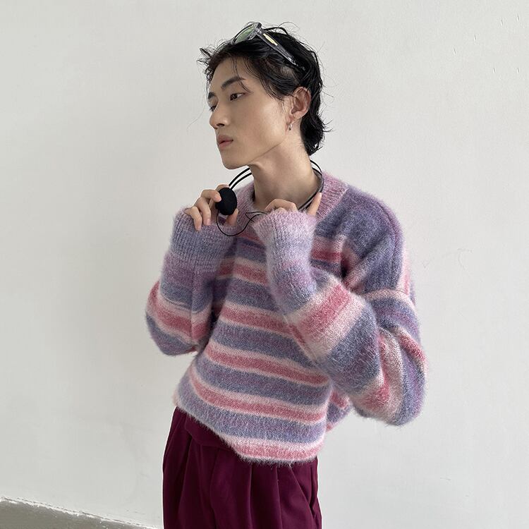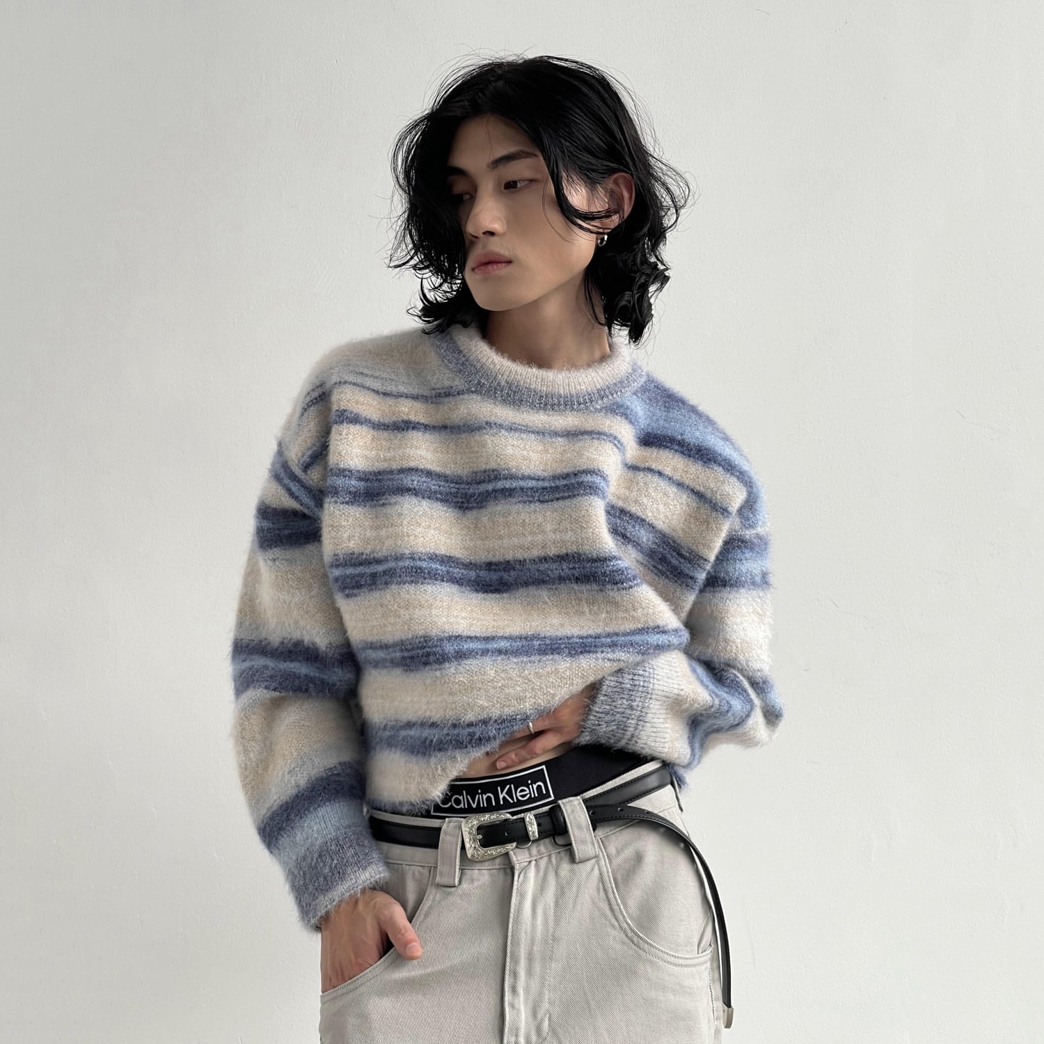 GENESISBOYふわふわマルチボーダー柄ニットセーター