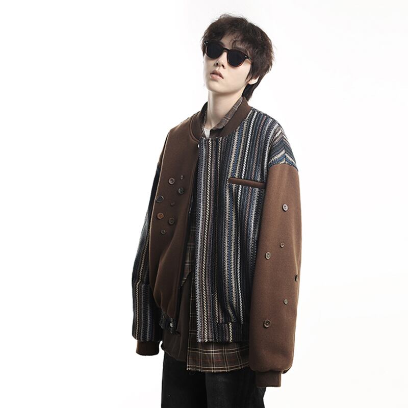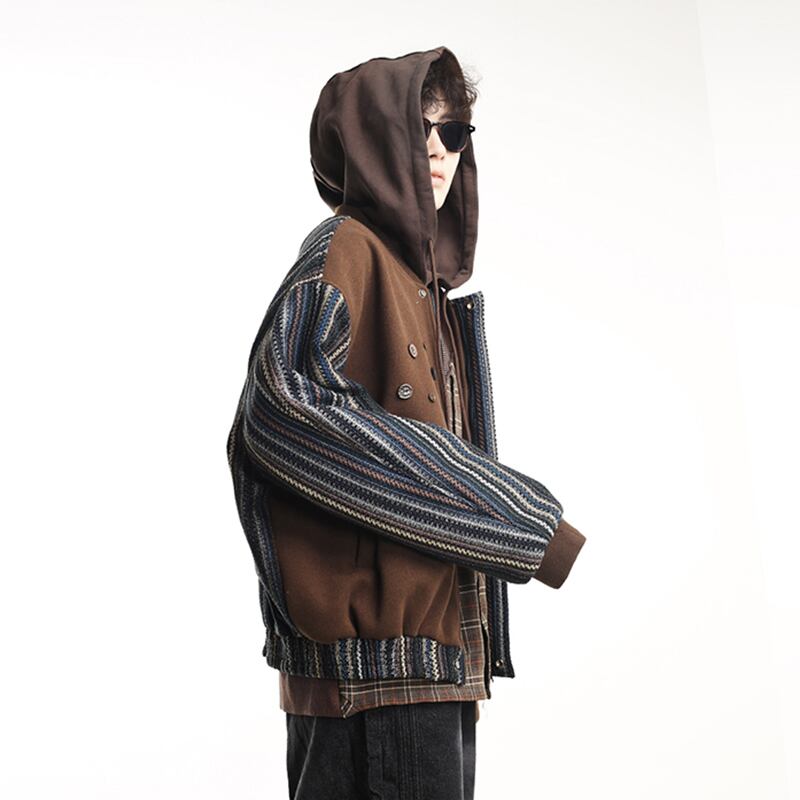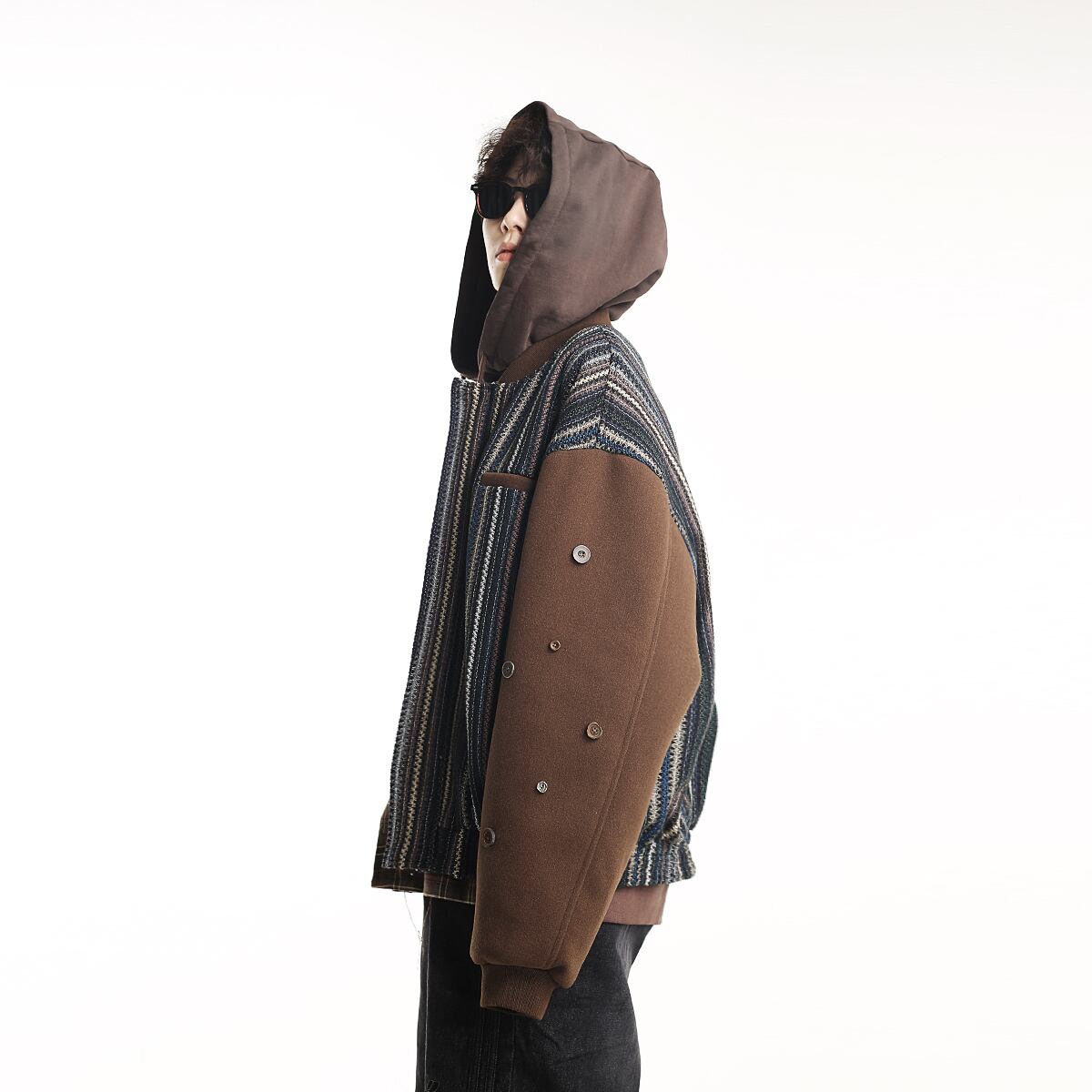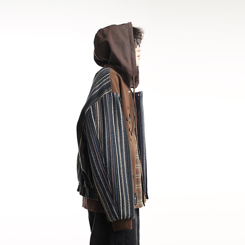 SIN87ストライプ柄切り替え裏キルトジャケット
