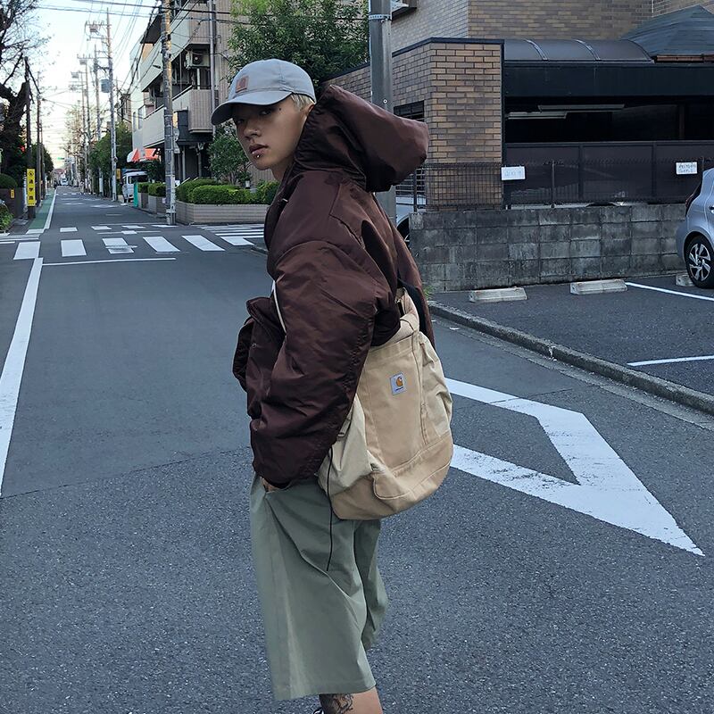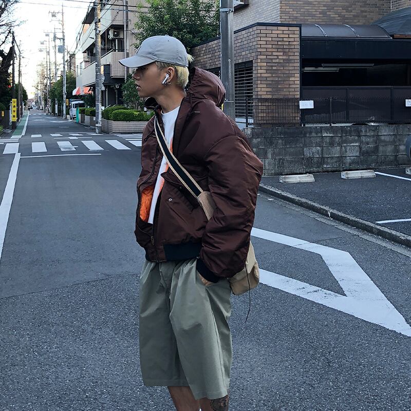 ショート丈フード付きジップ中綿ジャケット