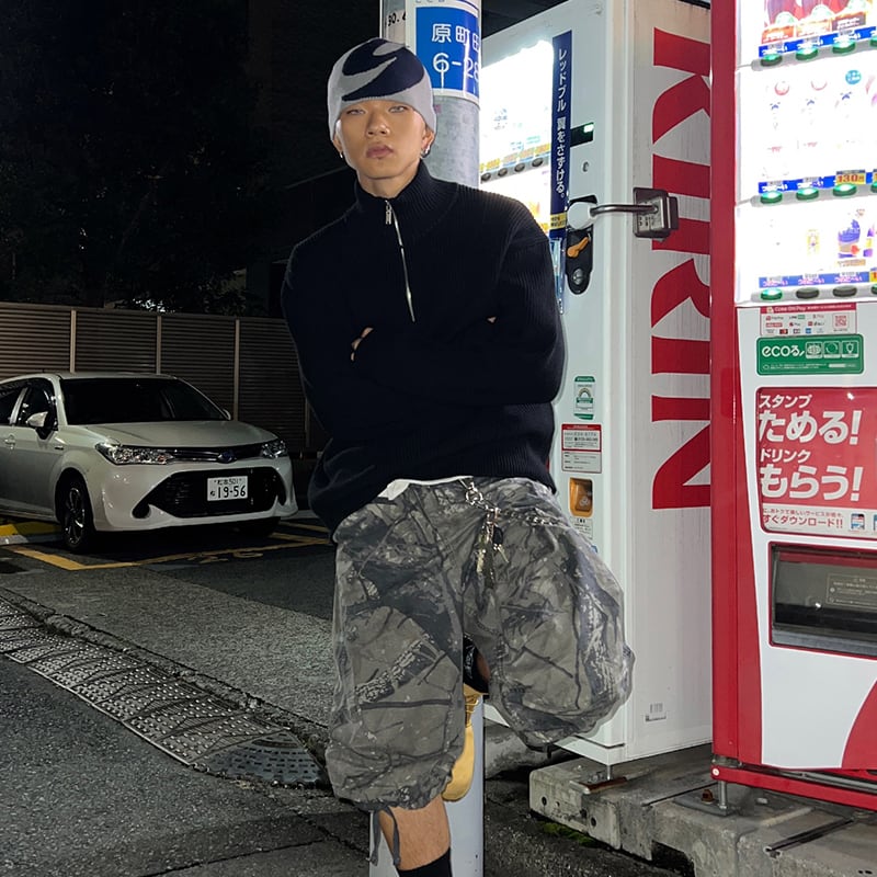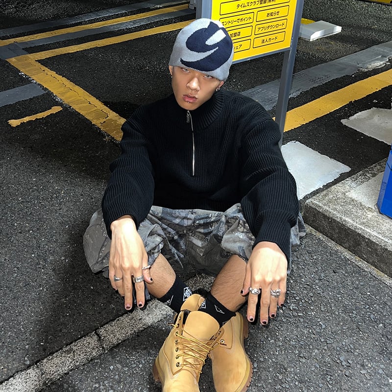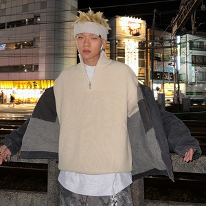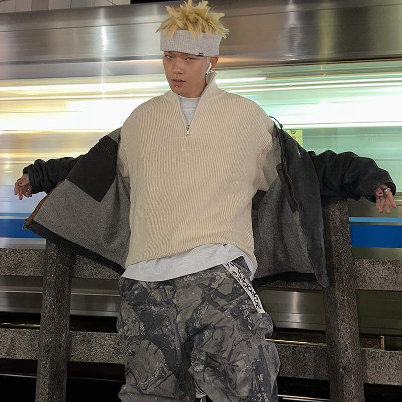 立襟ハーフジップニットセーター