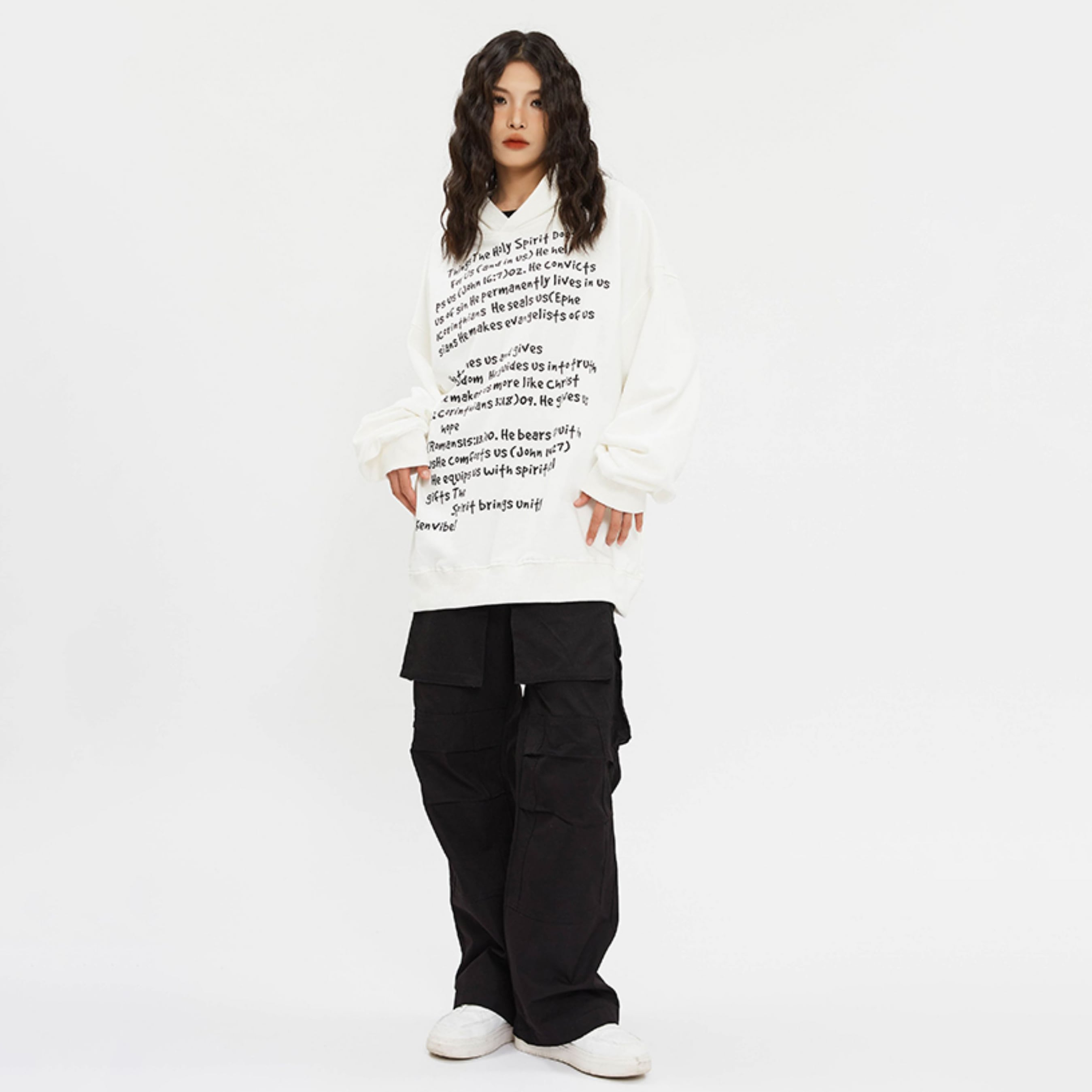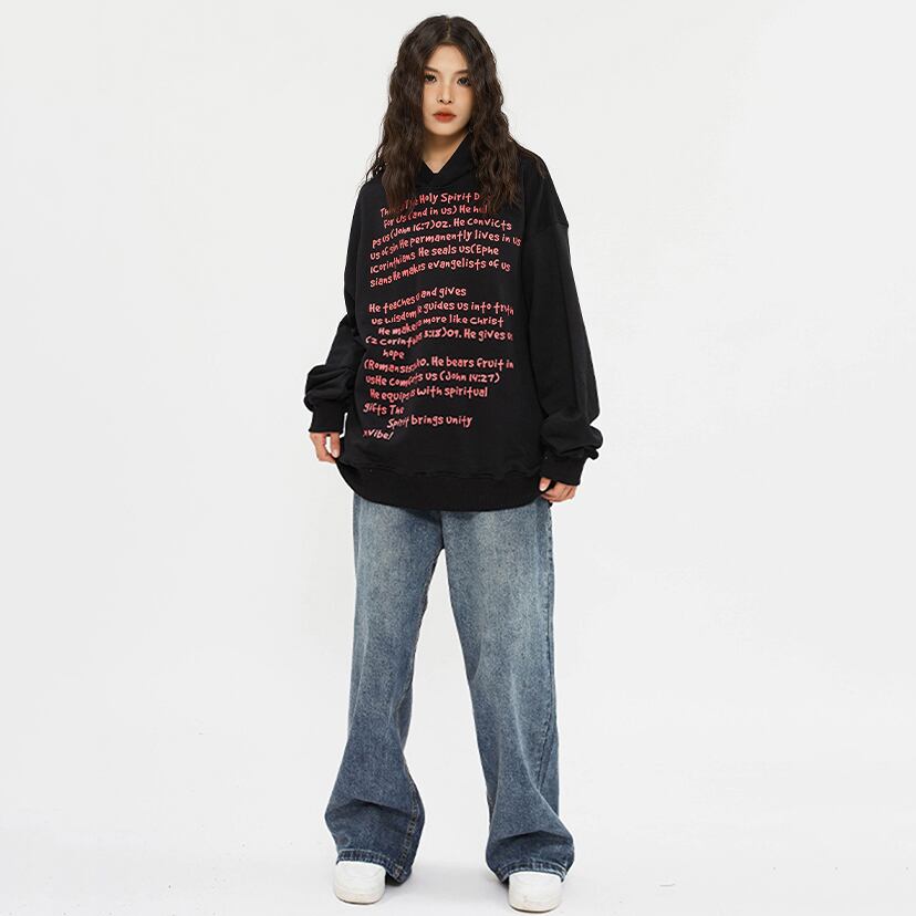 OPUP全4色男女兼用裏ボア英字プリントパーカー