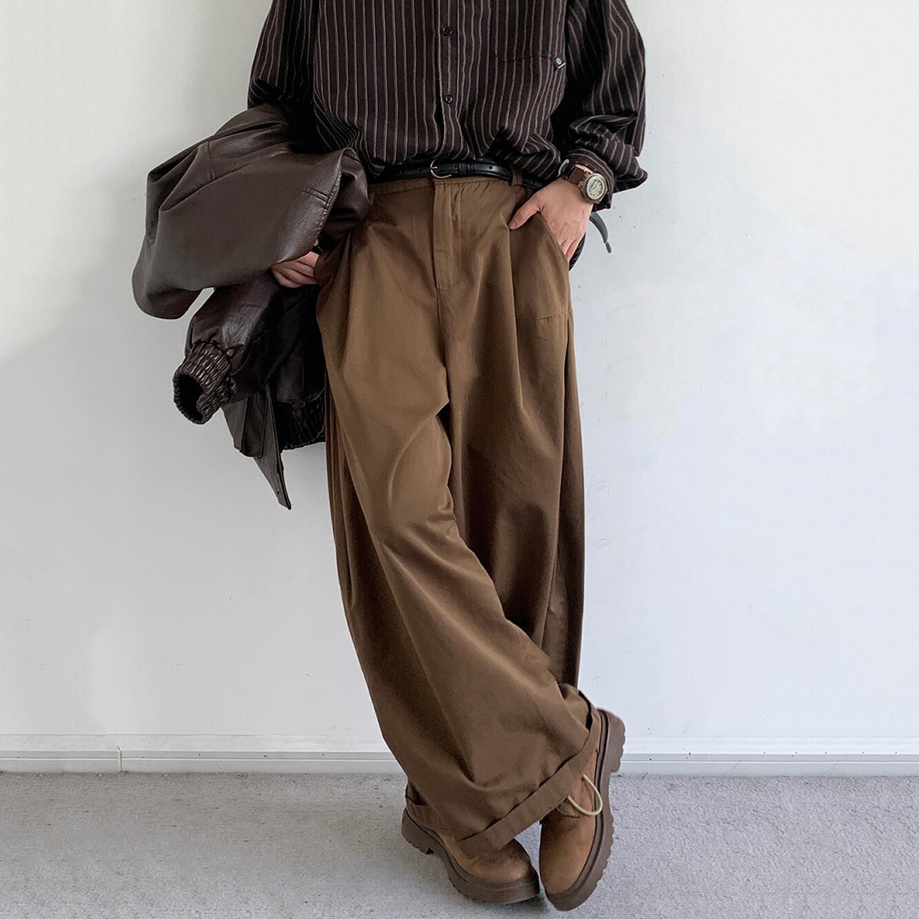jiwuus丁子茶色ベーシックカーゴパンツ